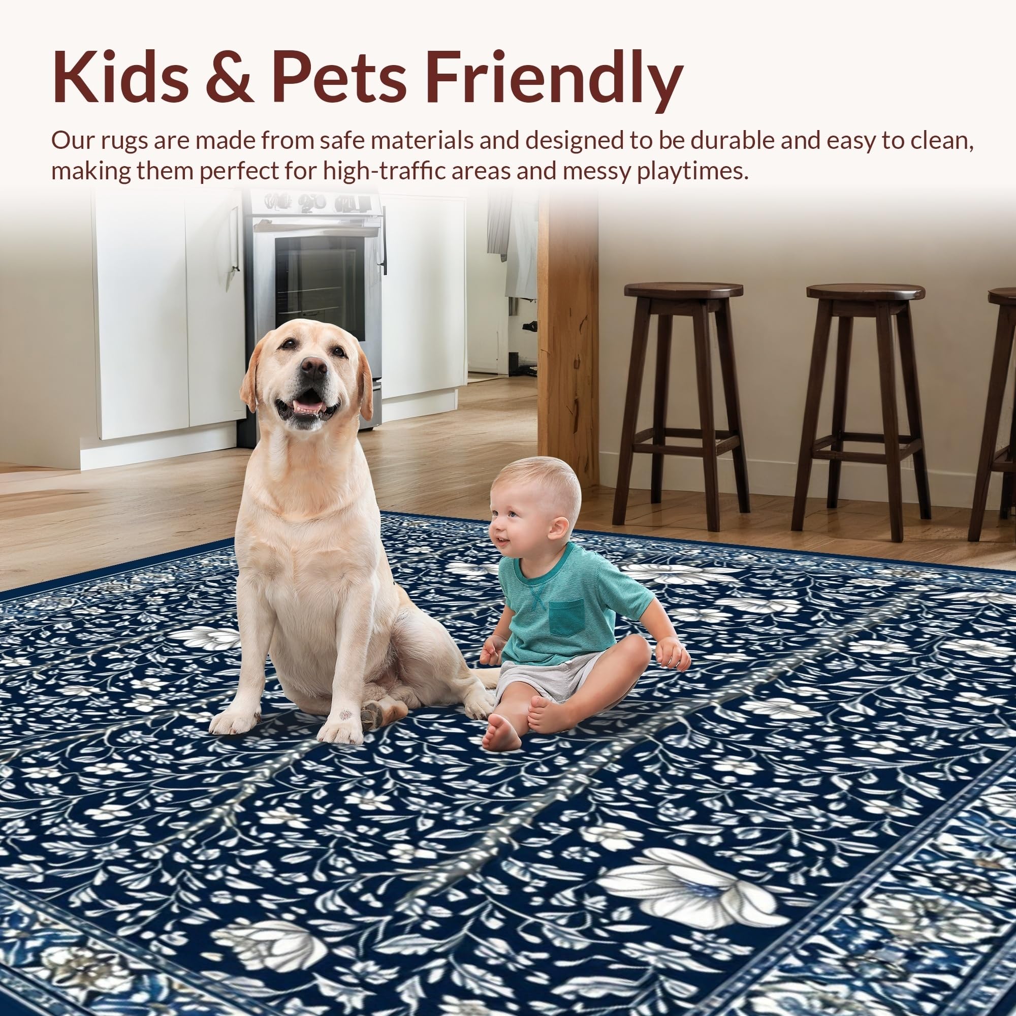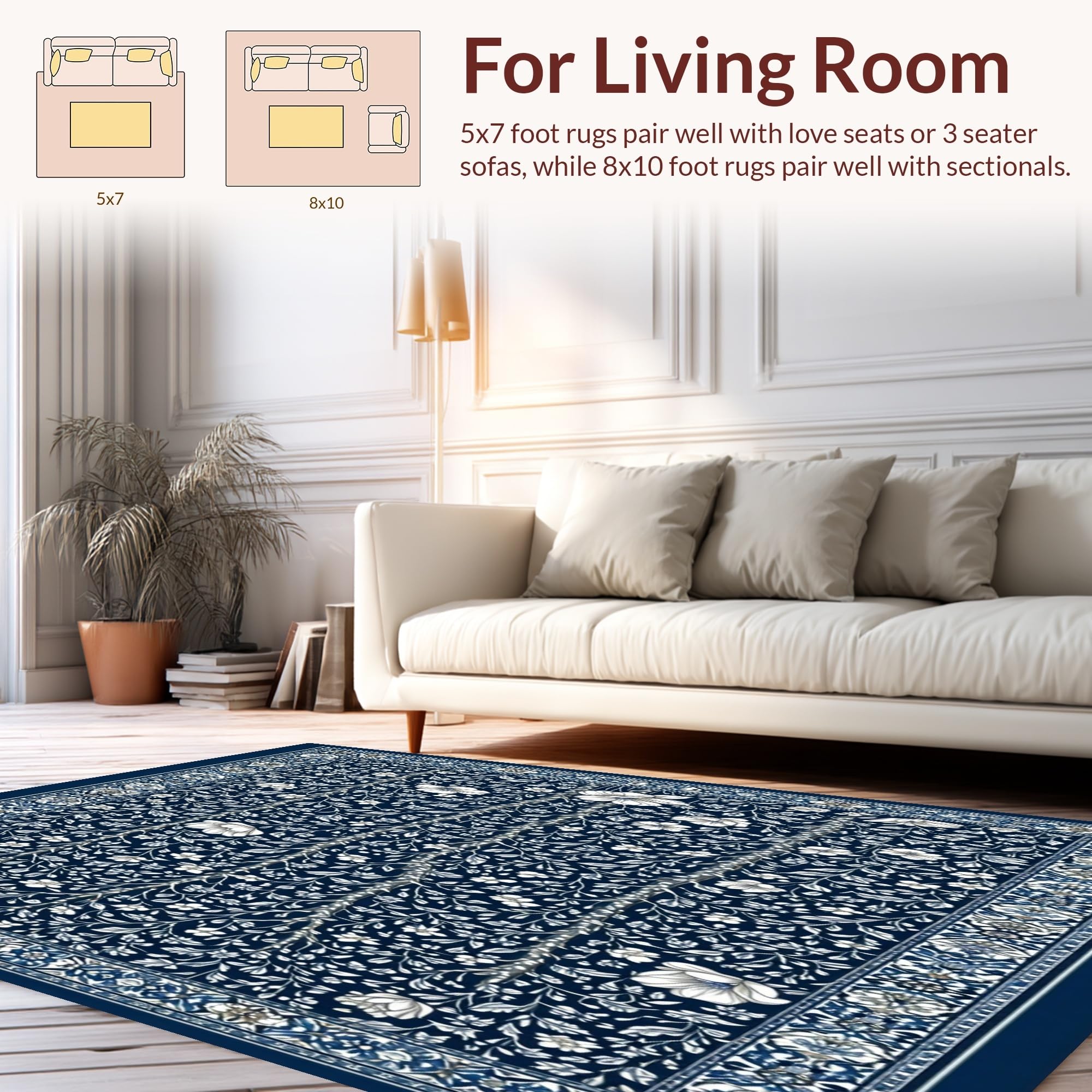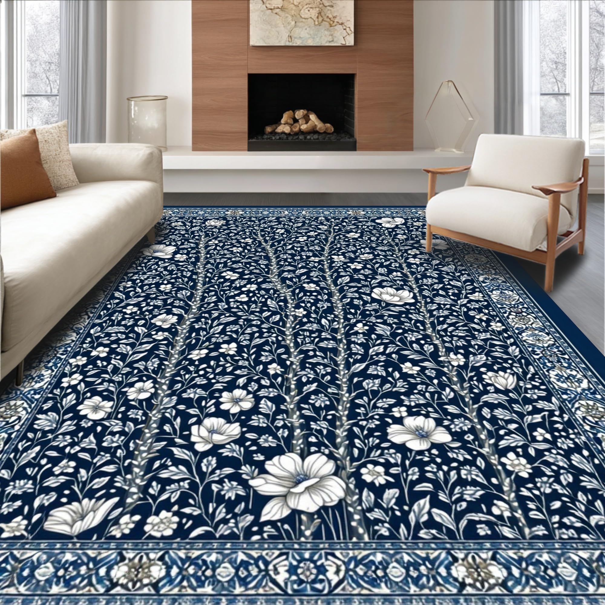 Ultra Soft Area Rug, Non Slip, Stain Resistant, Washable Area Rugs for Living Room, Bedroom, Geometric Botanical Boho for(Blue) Overview: