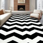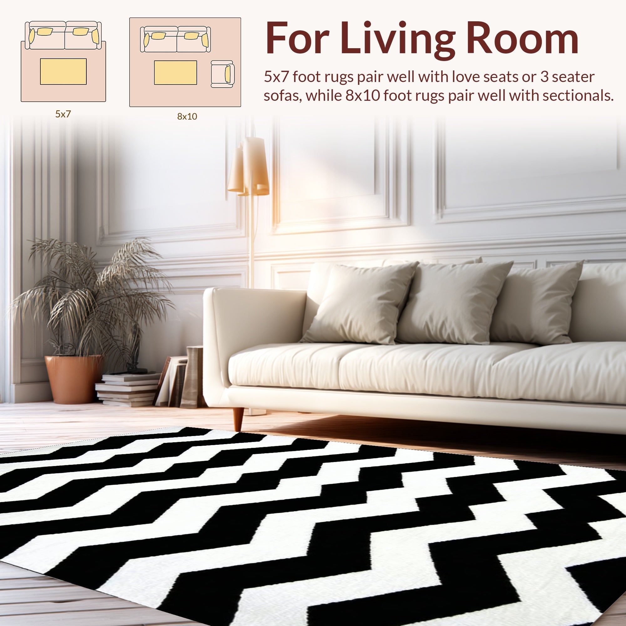 Flatwoven High Traffic Area Rug, Geometric Entryway Chevron with Bold Lines, Non Slip, Stain Resistant, Washable Area Rugs for Living Room, Bedroom (Black) Overview: