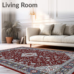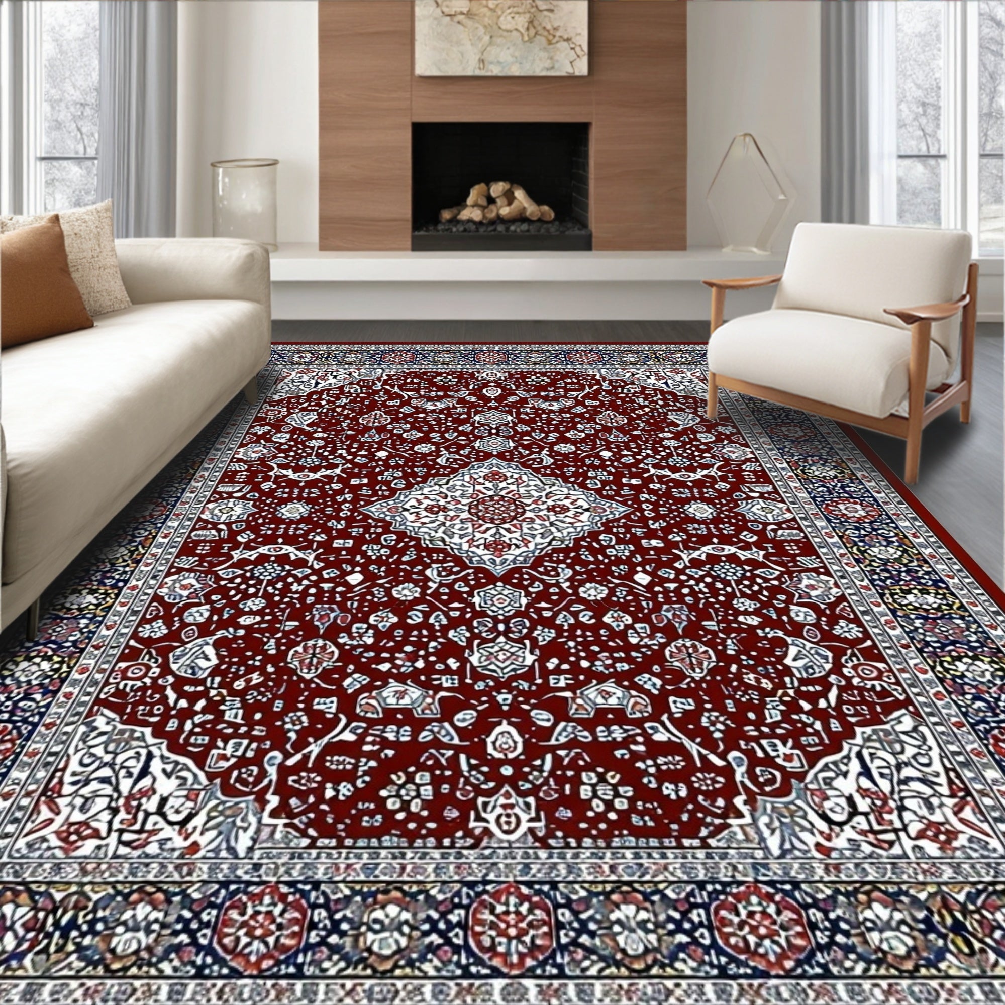 Flatwoven High Traffic Area Rug, Geometric Medallion Decorative, Non Slip, Stain Resistant, Washable Area Rugs for Living Room, Bedroom (Red) Overview: