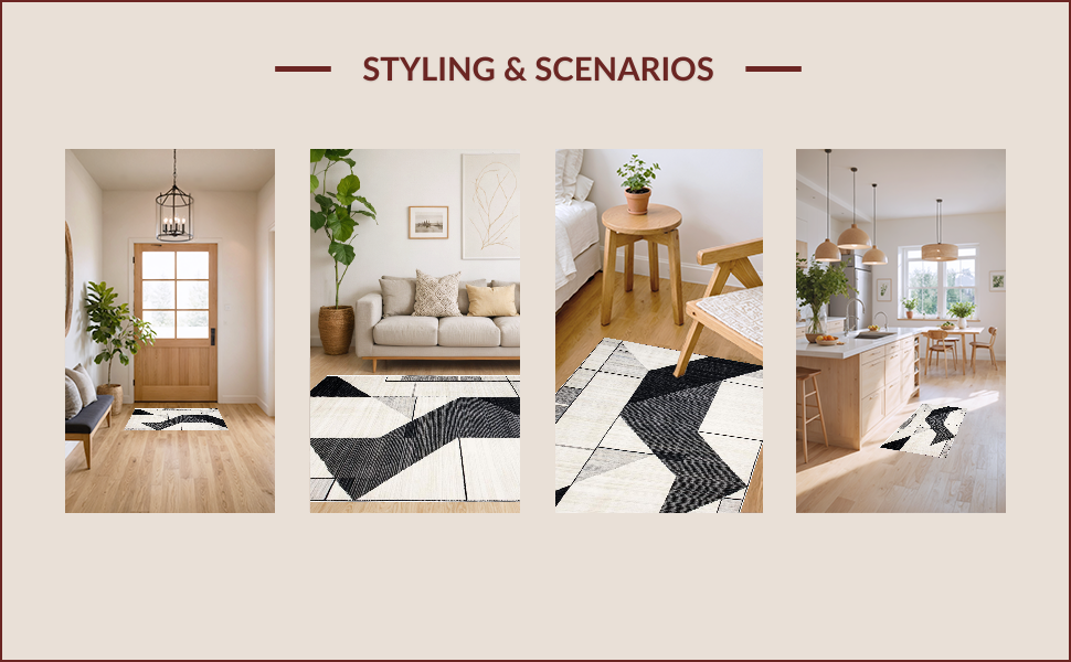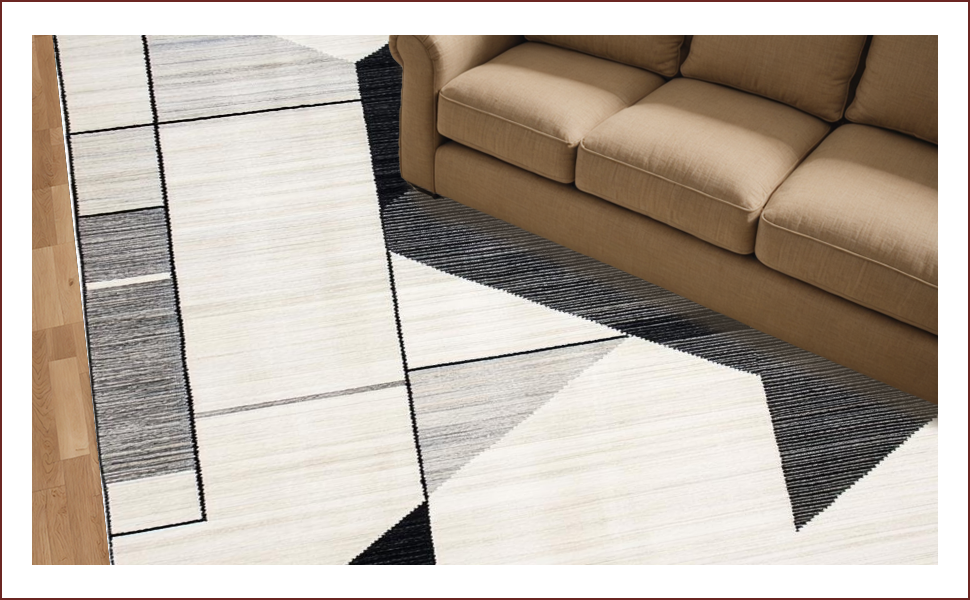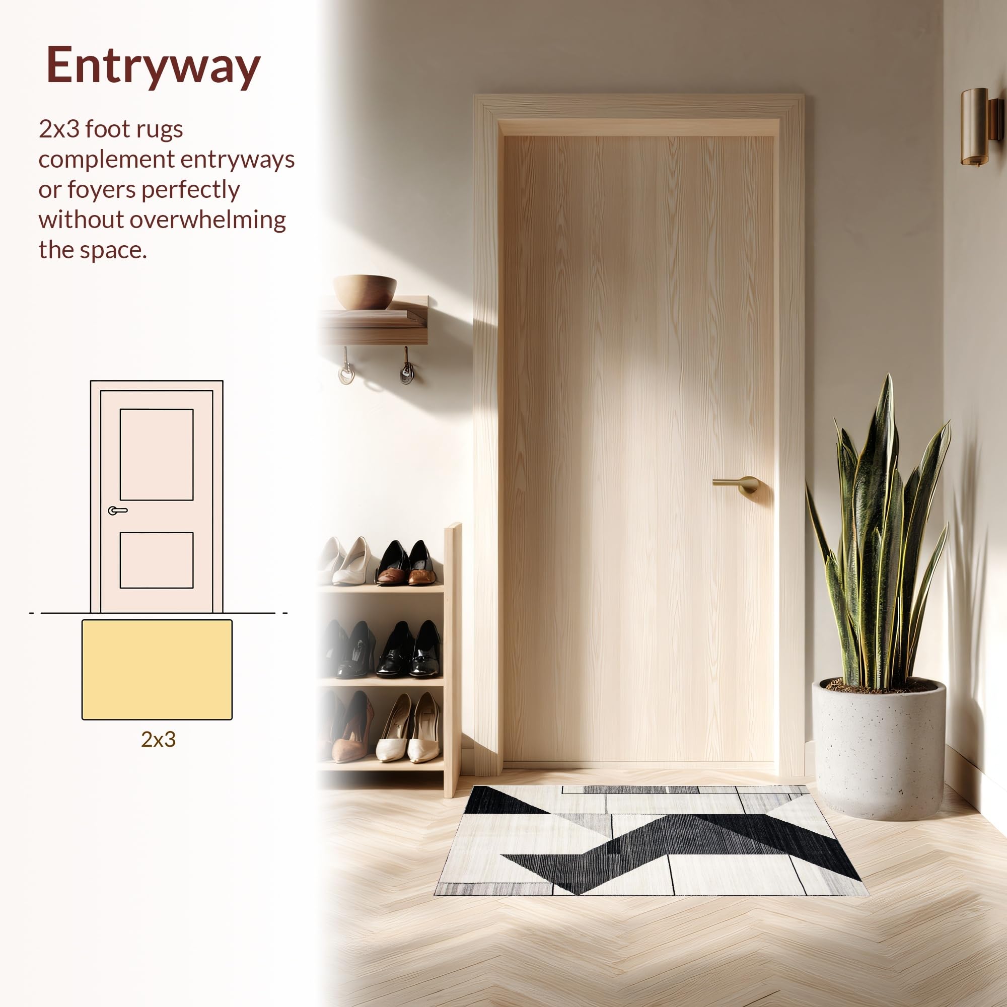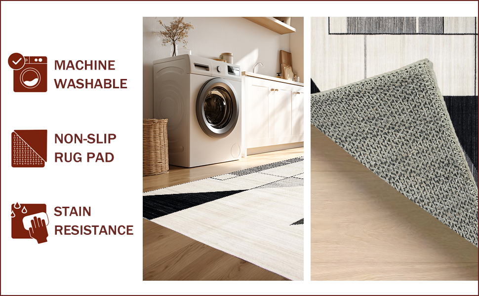 Ultra Soft Area Rug, Non Slip, Stain Resistant, Washable Area Rugs for Living Room, Bedroom, Geometric Monochrome Artistry(Black) Overview: