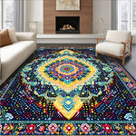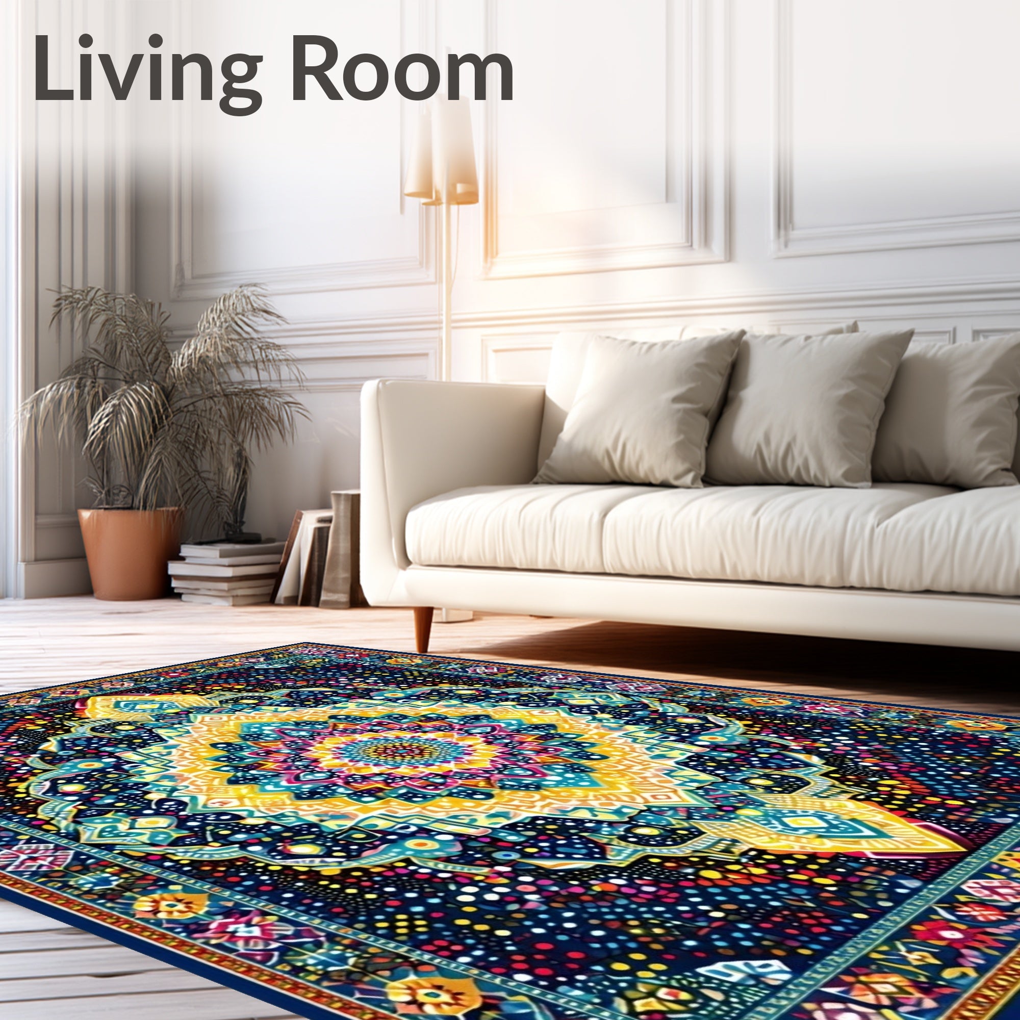 Flatwoven High Traffic Area Rug, Geometric Multicolour Large Floor Art, Non Slip, Stain Resistant, Washable Area Rugs for Living Room, Bedroom (Blue) Overview:
