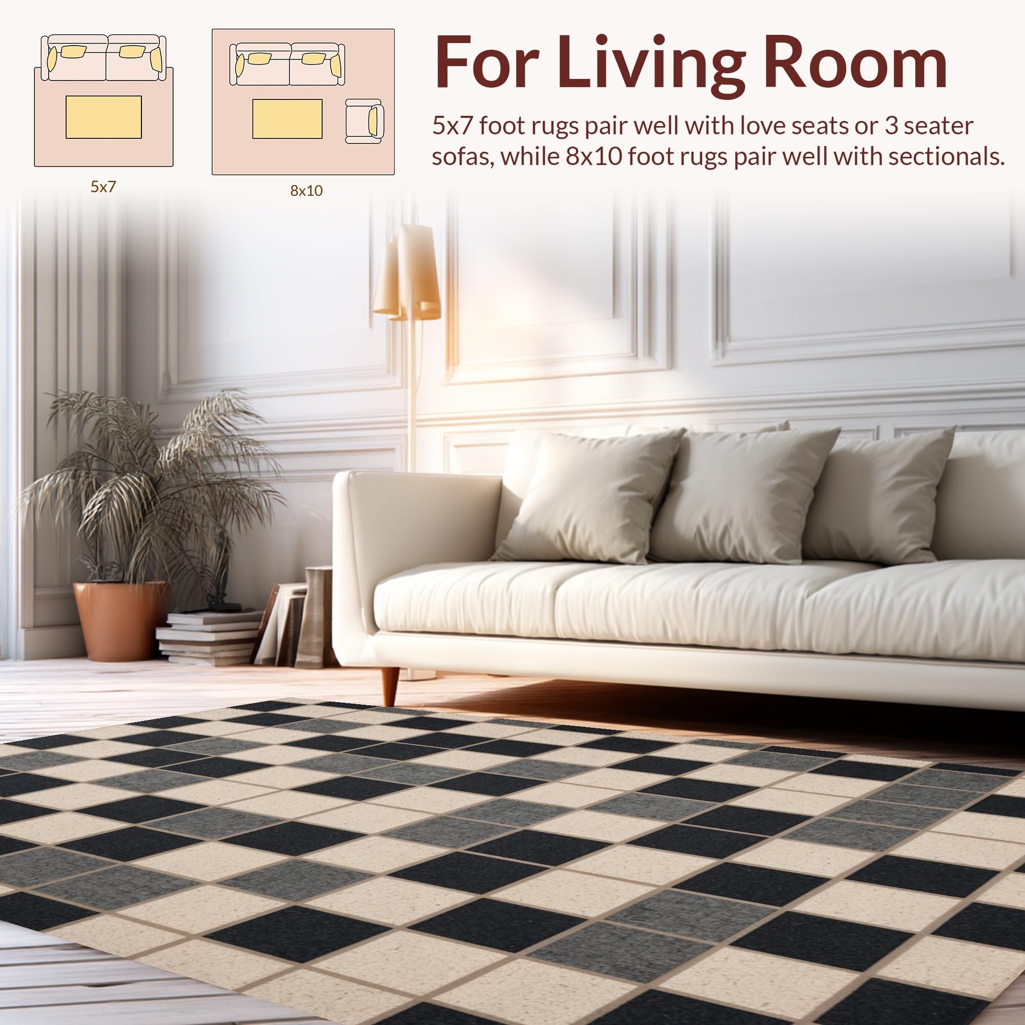 Ultra Soft Area Rug, Non Slip, Stain Resistant, Washable Area Rugs for Living Room, Bedroom, Geometric Washable Patio Rug for Modern Backyards(Beige) Overview: