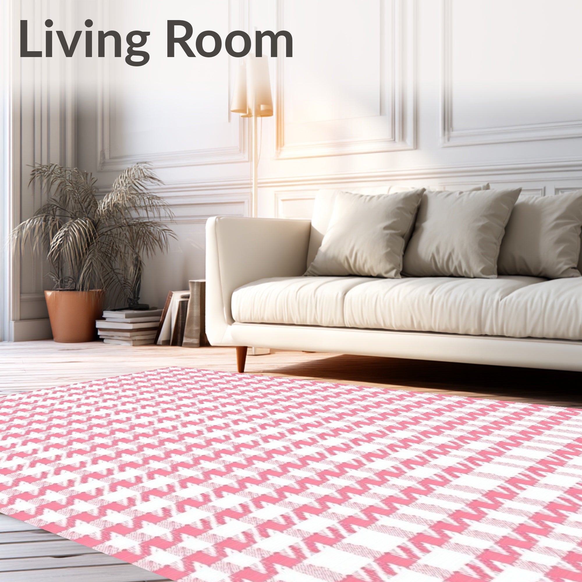 Ultra Soft Area Rug, Non Slip, Stain Resistant, Washable Area Rugs for Living Room, Bedroom, Gingham Check Front Porch Seasonal Thanksgiving Entrance(Pink) Overview: