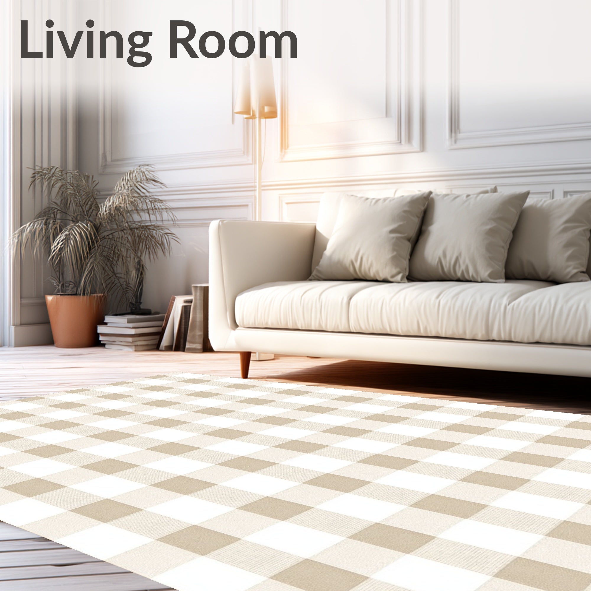 Ultra Soft Area Rug, Non Slip, Stain Resistant, Washable Area Rugs for Living Room, Bedroom, Gingham Check Vintage Welcome Rustic Charm(Beige) Overview:
