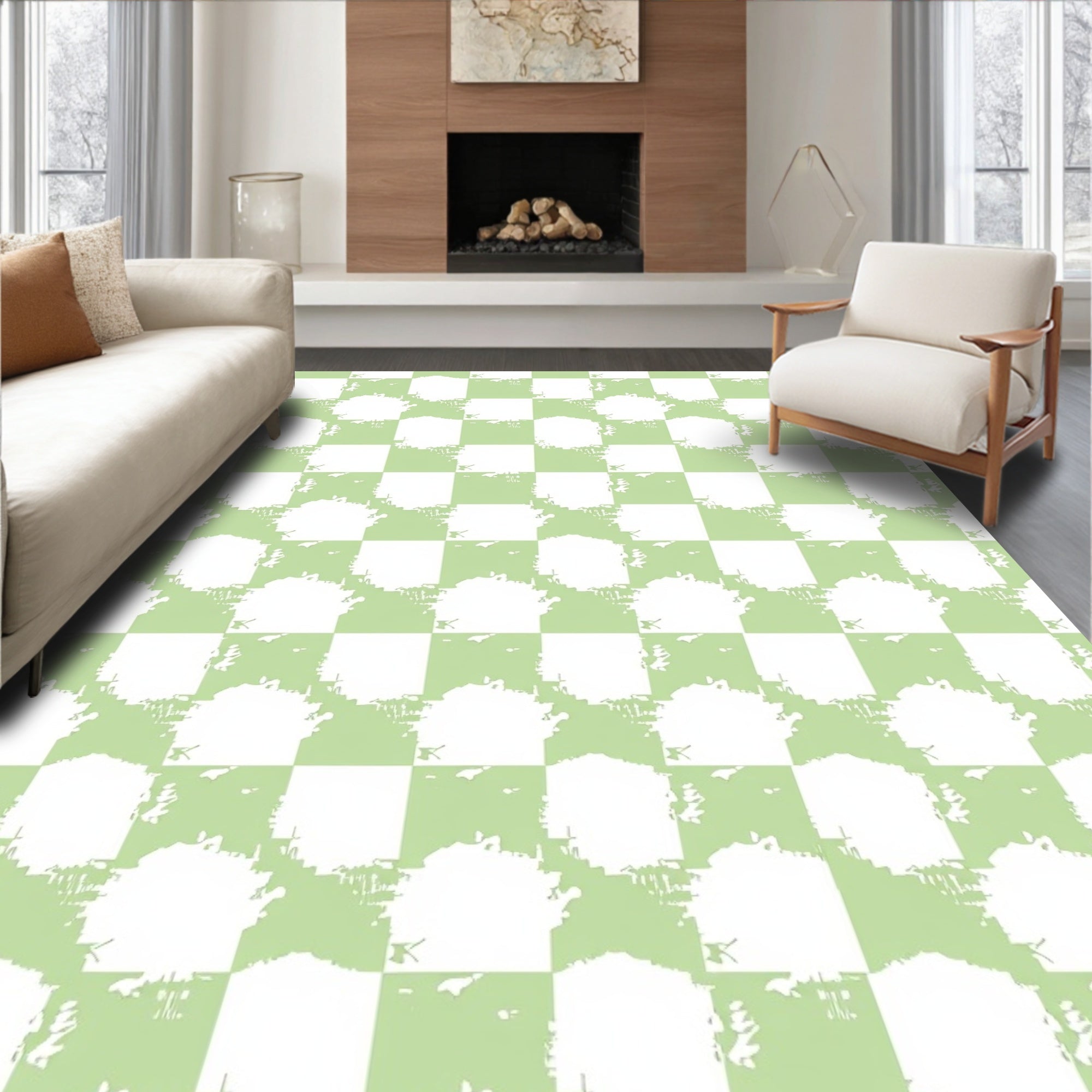 Ultra Soft Area Rug, Non Slip, Stain Resistant, Washable Area Rugs for Living Room, Bedroom, Gingham Grid Farmhouse Crosshatch Design(Green) Overview: