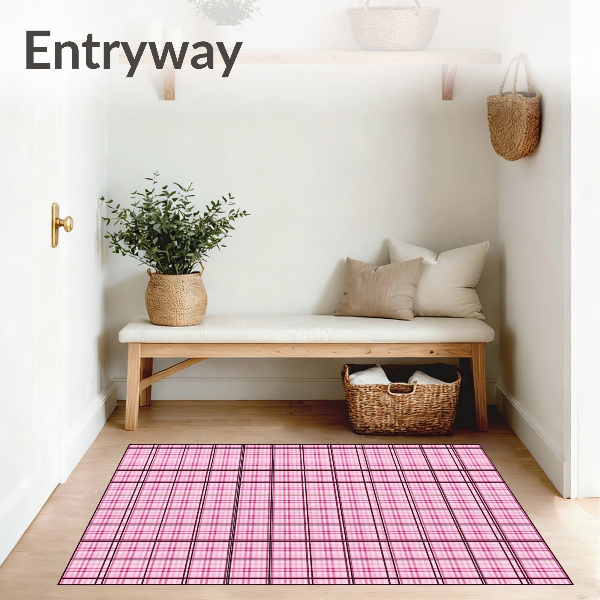 Gingham Grid Welcome featuring Crosshatch Design(Pink)