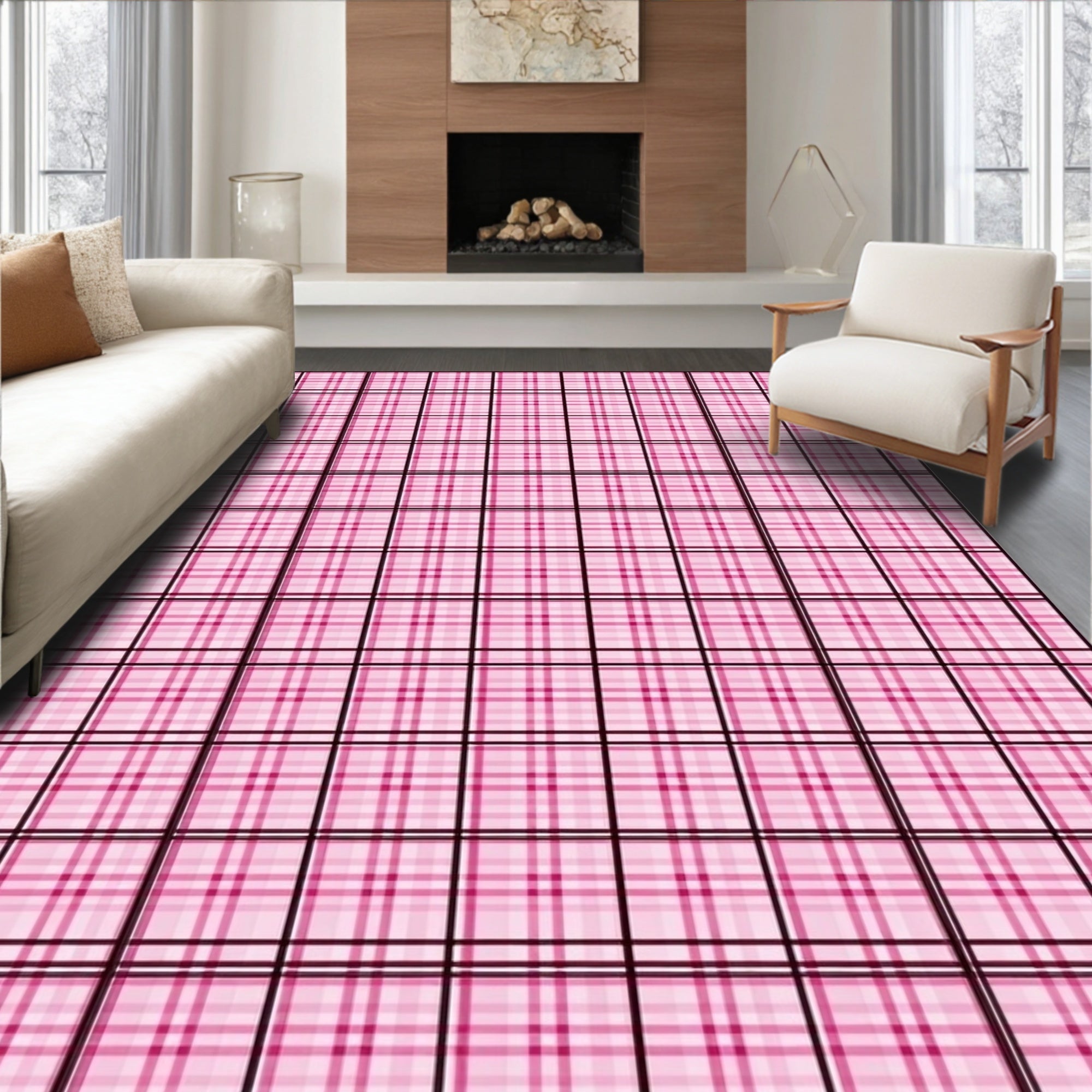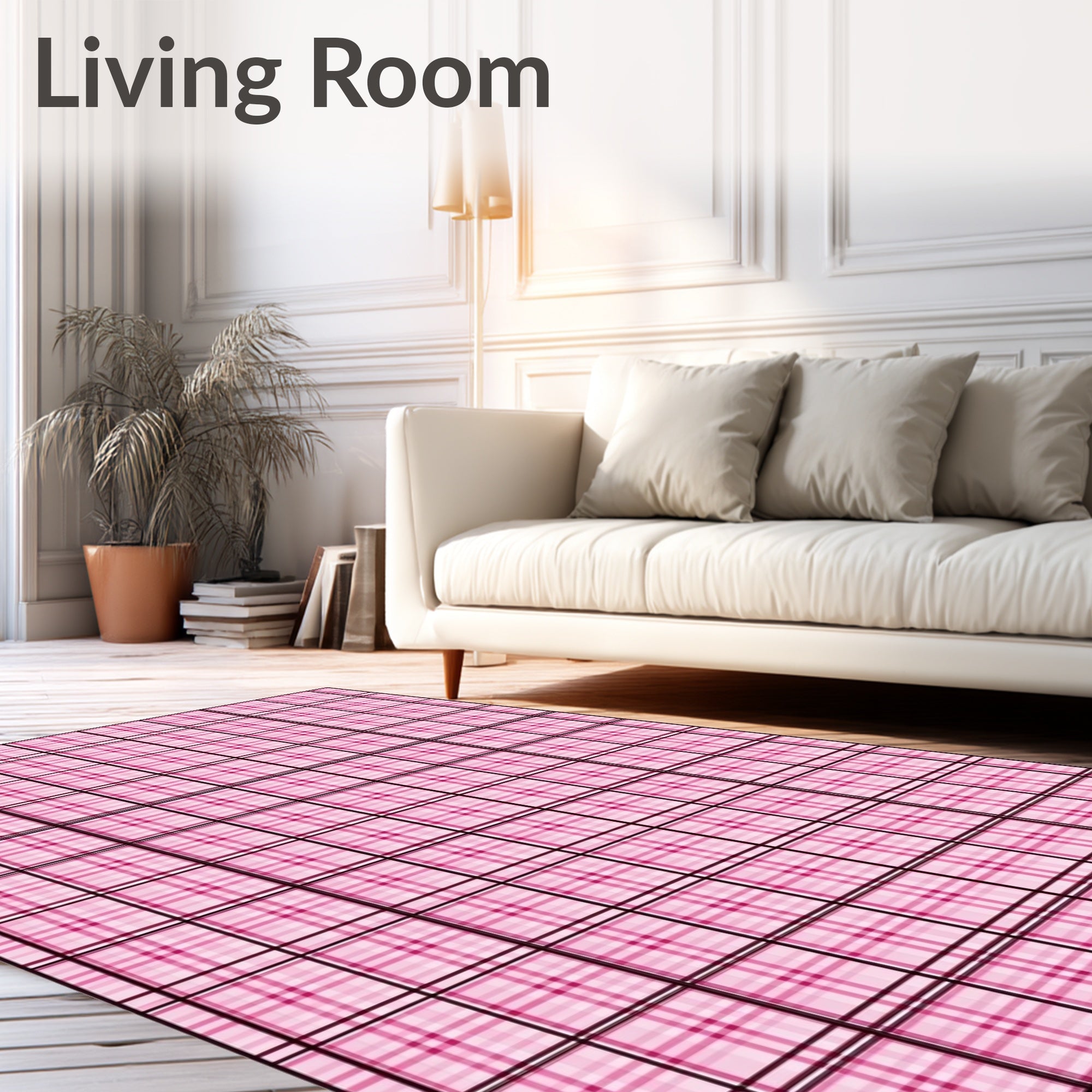Flatwoven High Traffic Area Rug, Gingham Grid Welcome featuring Crosshatch Design, Non Slip, Stain Resistant, Washable Area Rugs for Living Room, Bedroom (Pink) Overview: