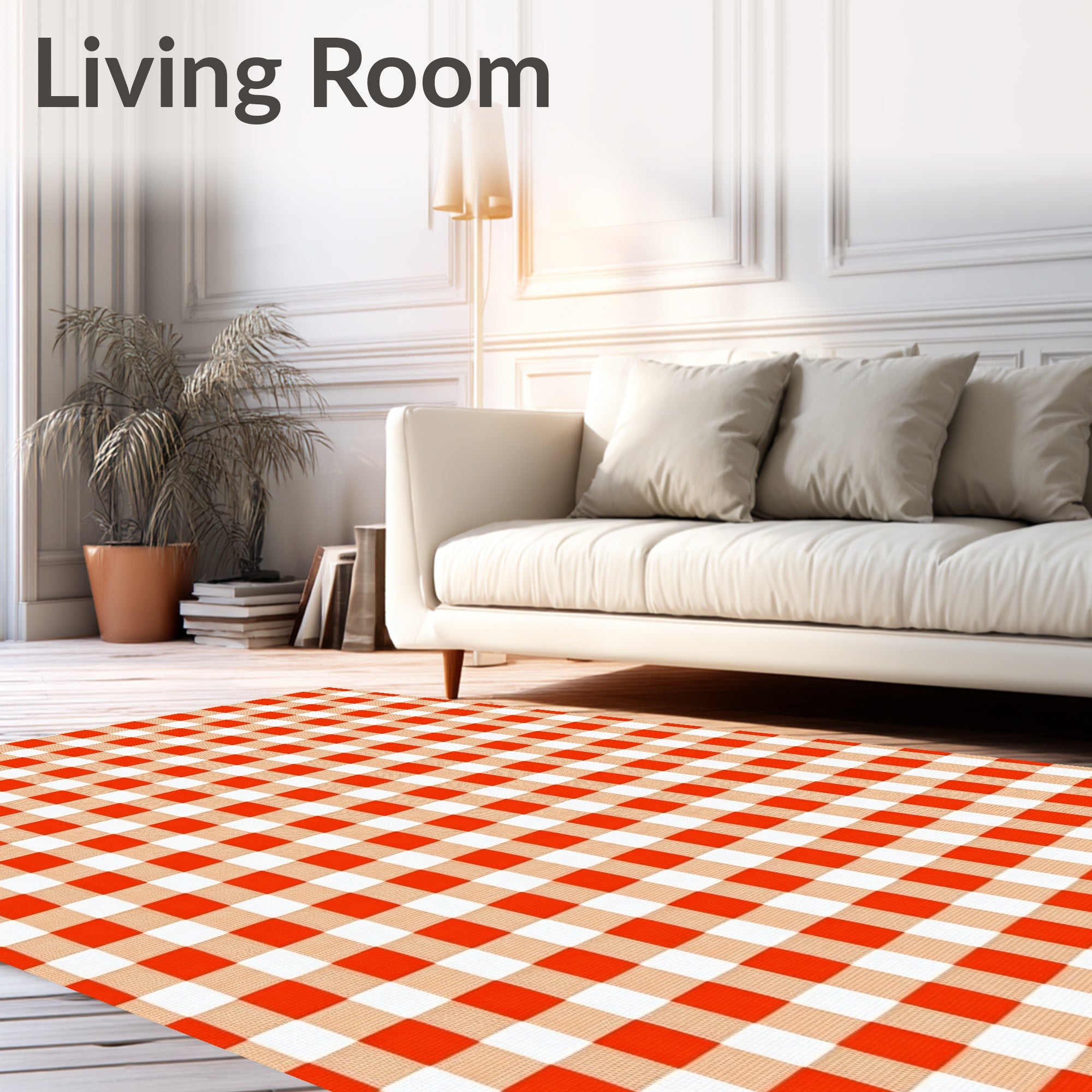 Ultra Soft Area Rug, Non Slip, Stain Resistant, Washable Area Rugs for Living Room, Bedroom, Gingham Patchwork Countryside Decoration(Red) Overview: