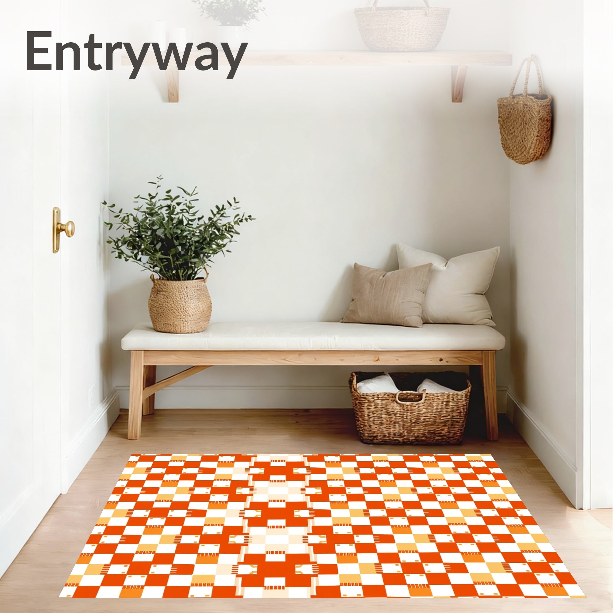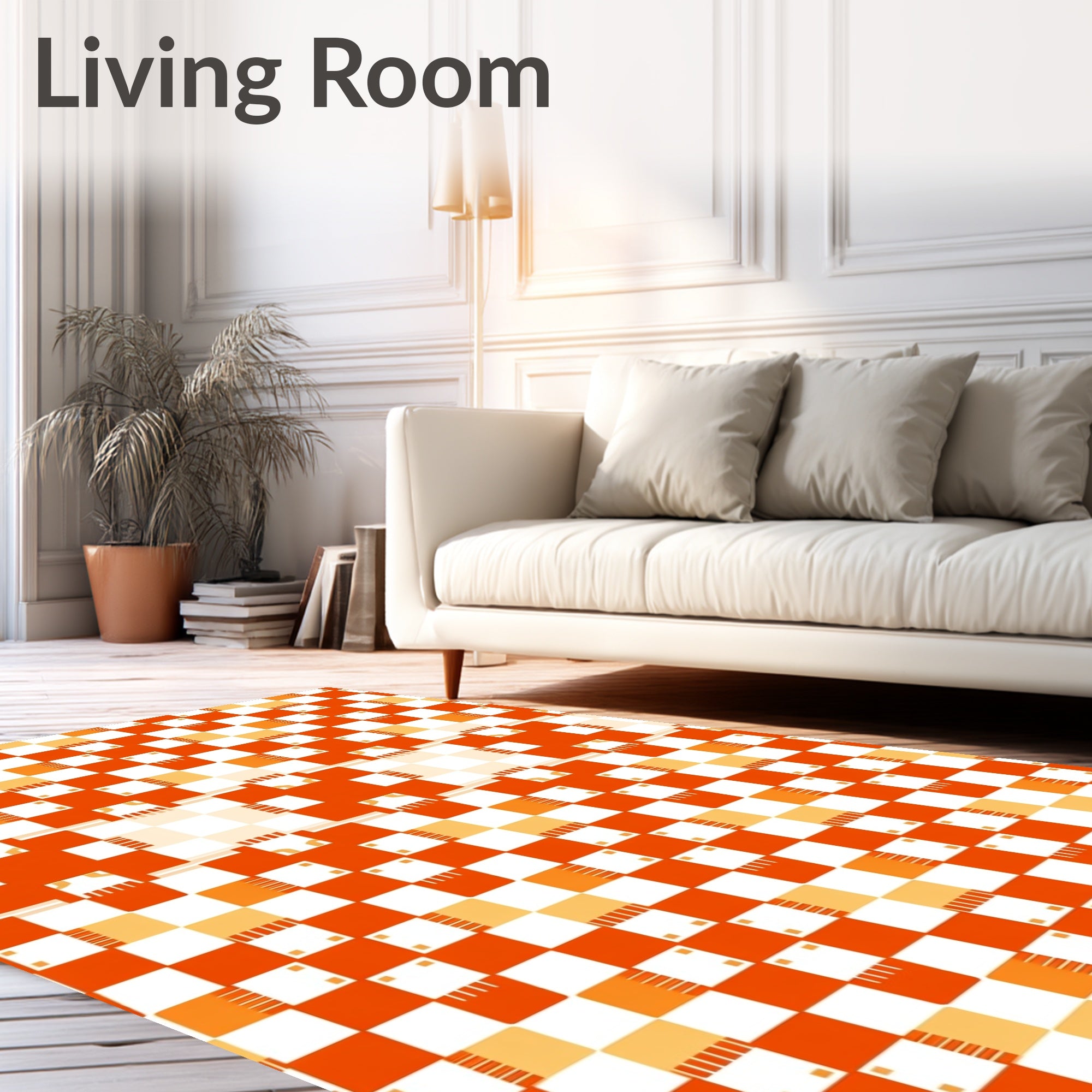 Ultra Soft Area Rug, Non Slip, Stain Resistant, Washable Area Rugs for Living Room, Bedroom, Gingham Patterned Accent with Seasonal Fall Appeal(Orange) Overview: