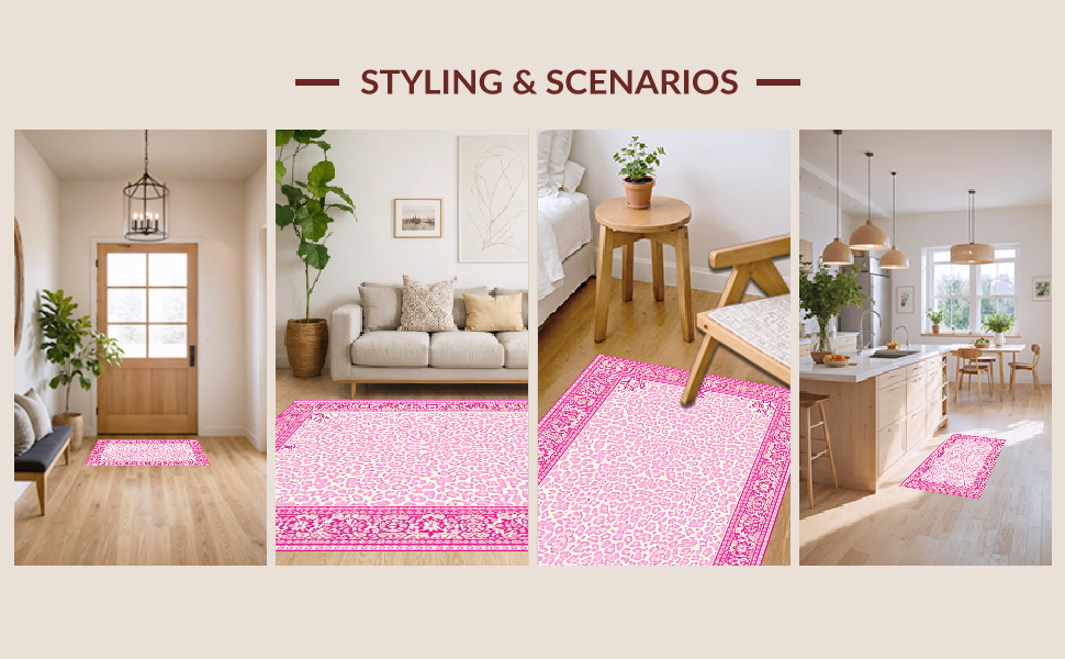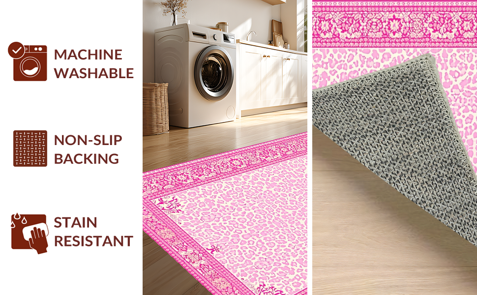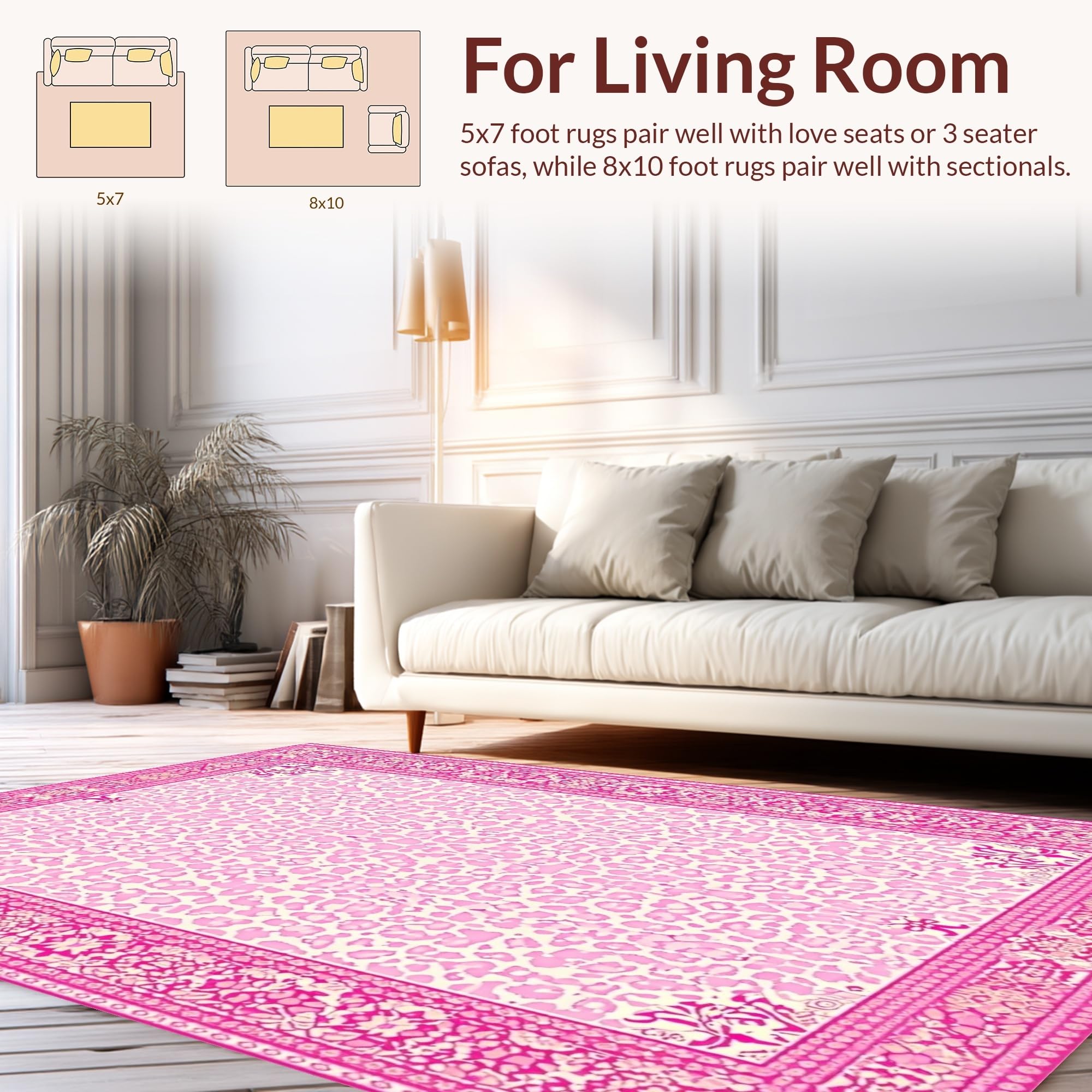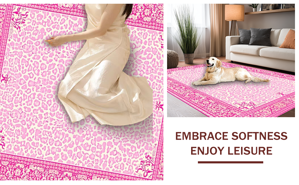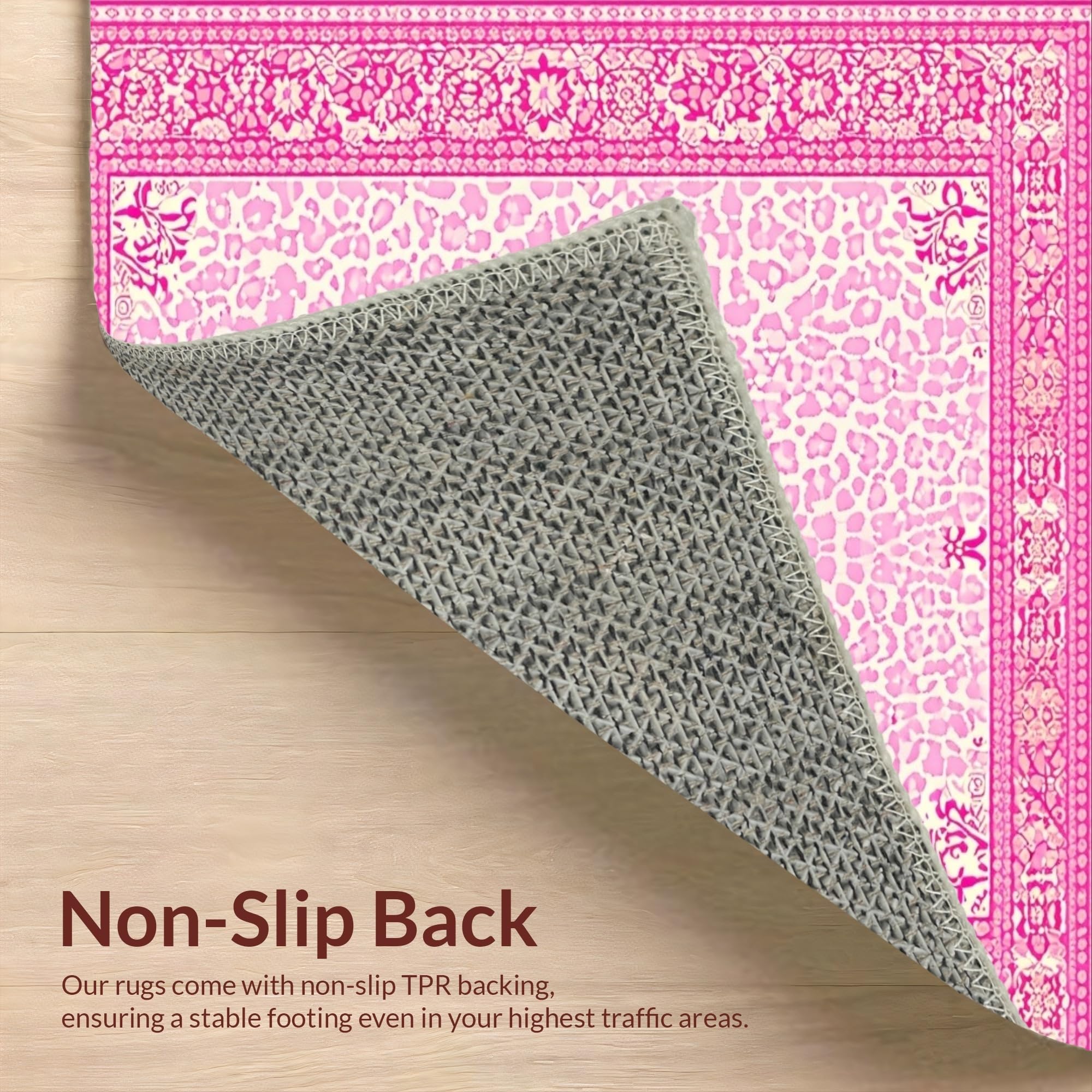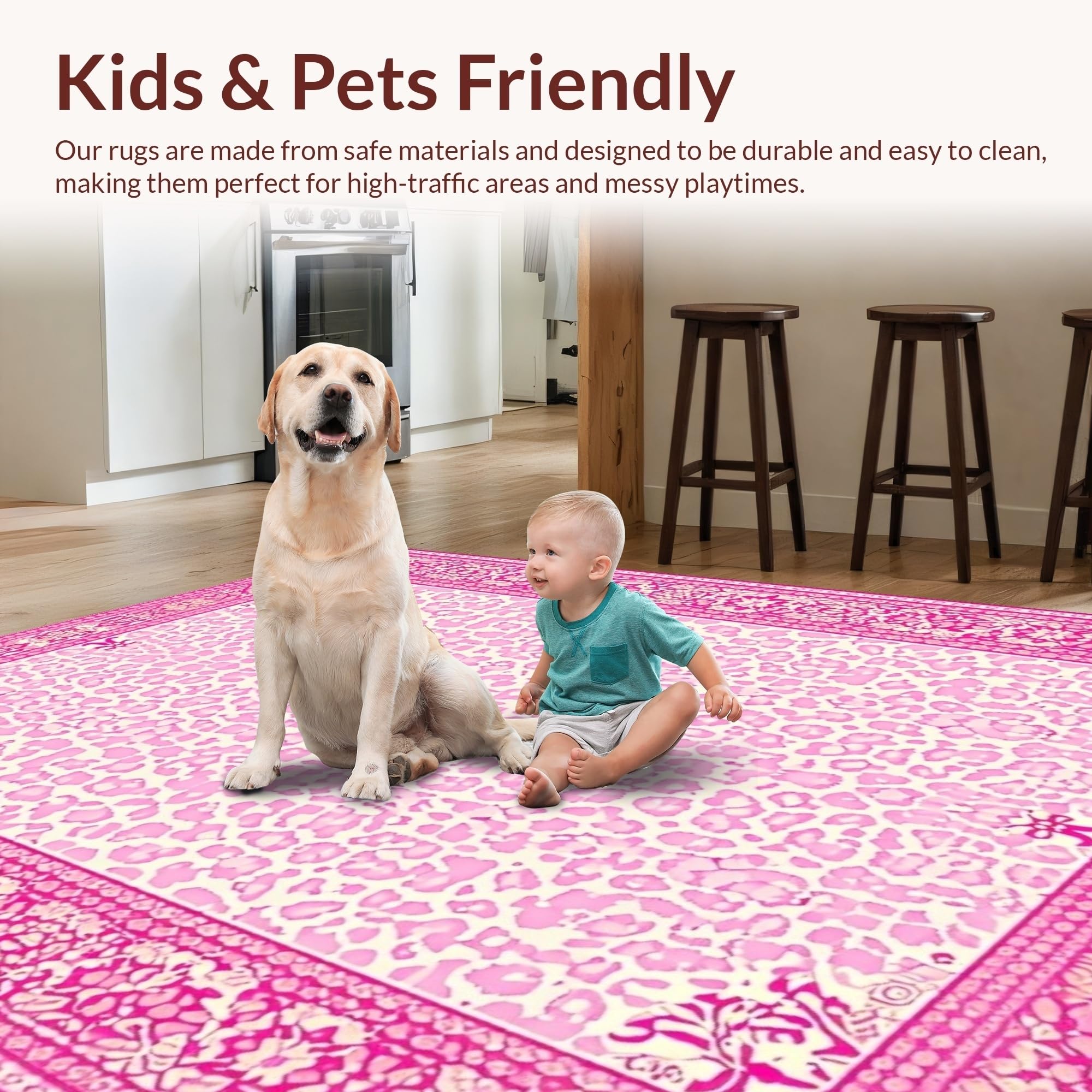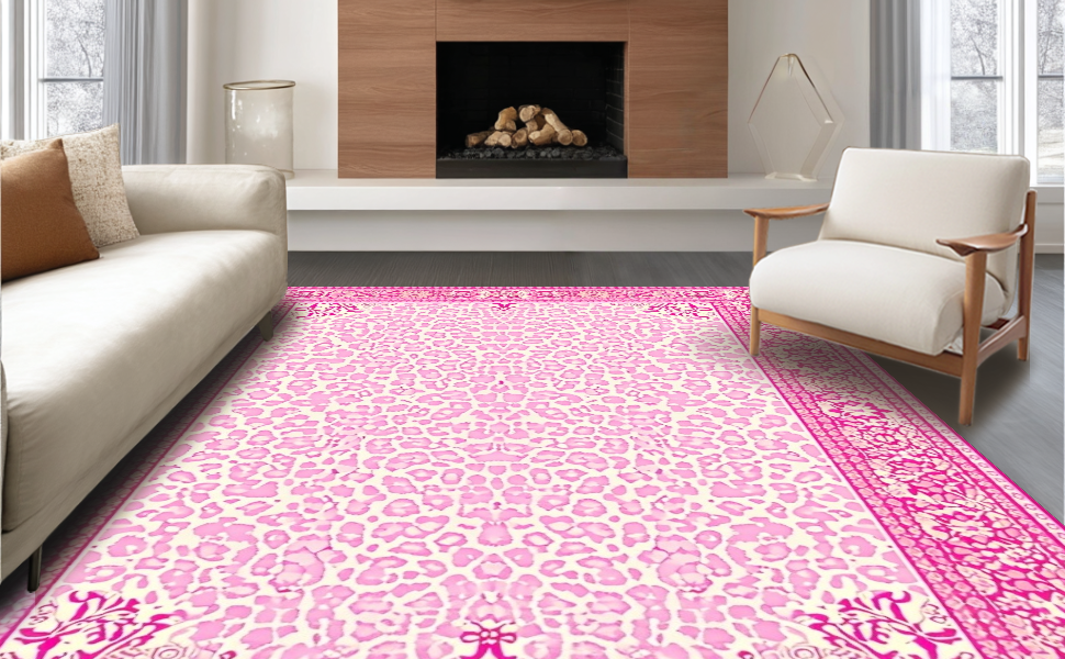 Ultra Soft Area Rug, Non Slip, Stain Resistant, Washable Area Rugs for Living Room, Bedroom, Girly Fun Leopard Print Inspiration(Pink) Overview: