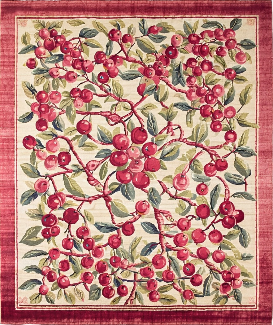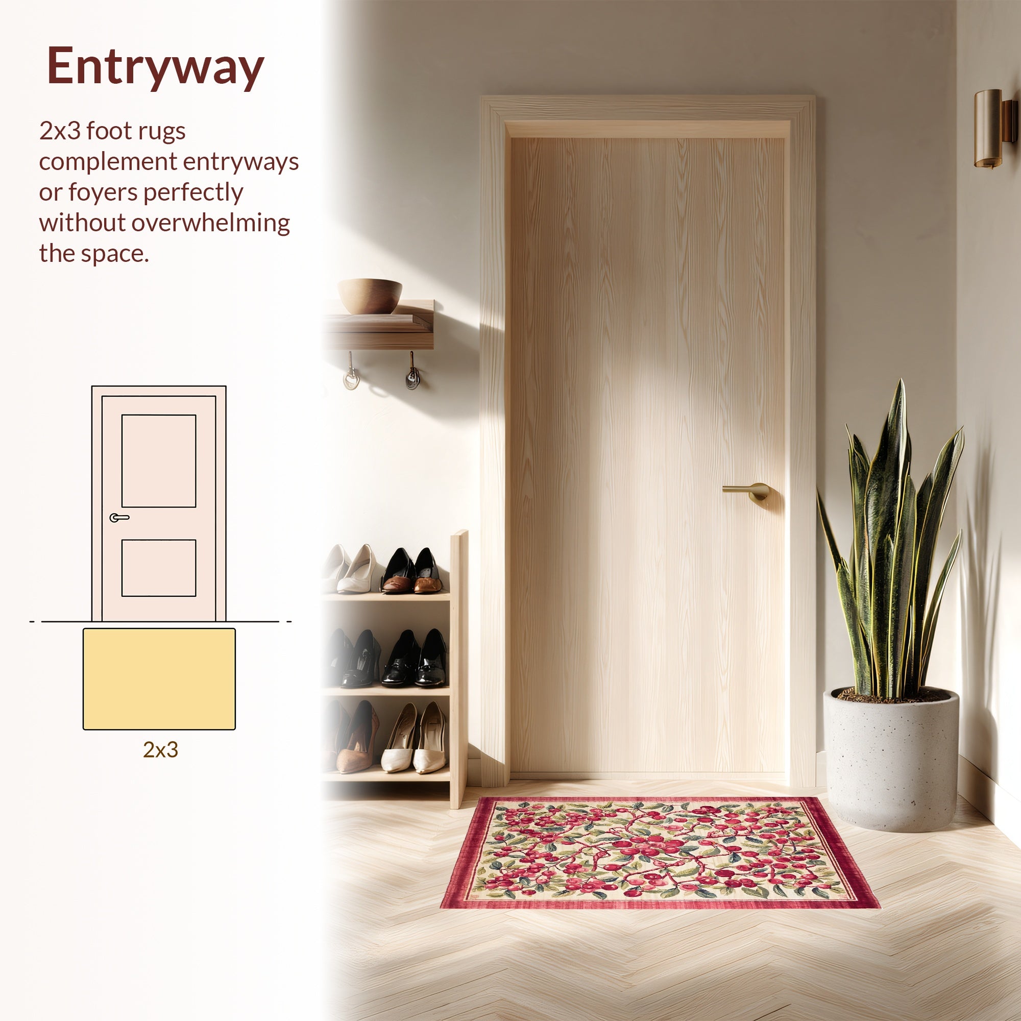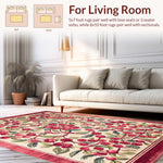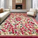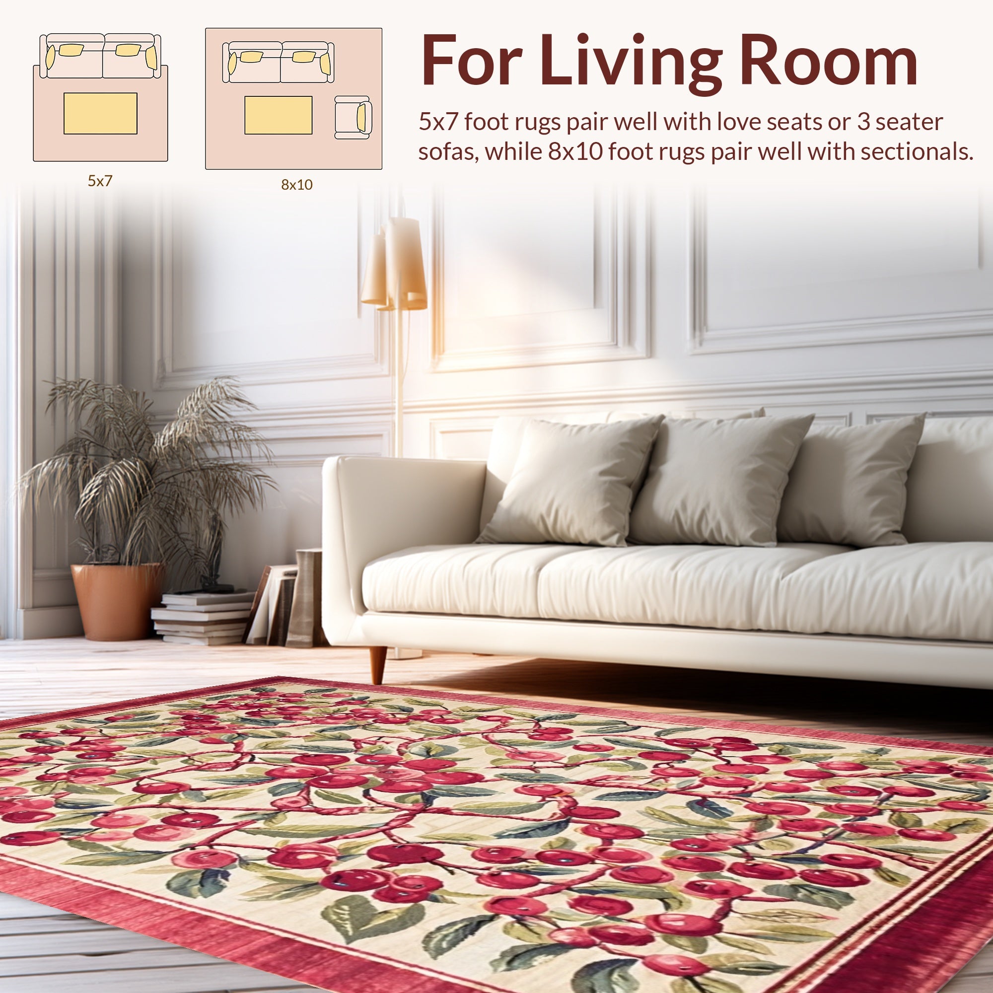 Ultra Soft Area Rug, Non Slip, Stain Resistant, Washable Area Rugs for Living Room, Bedroom, Girly Ribbon and Red Fruit Motif Round Accent Carpet(Red) Overview: