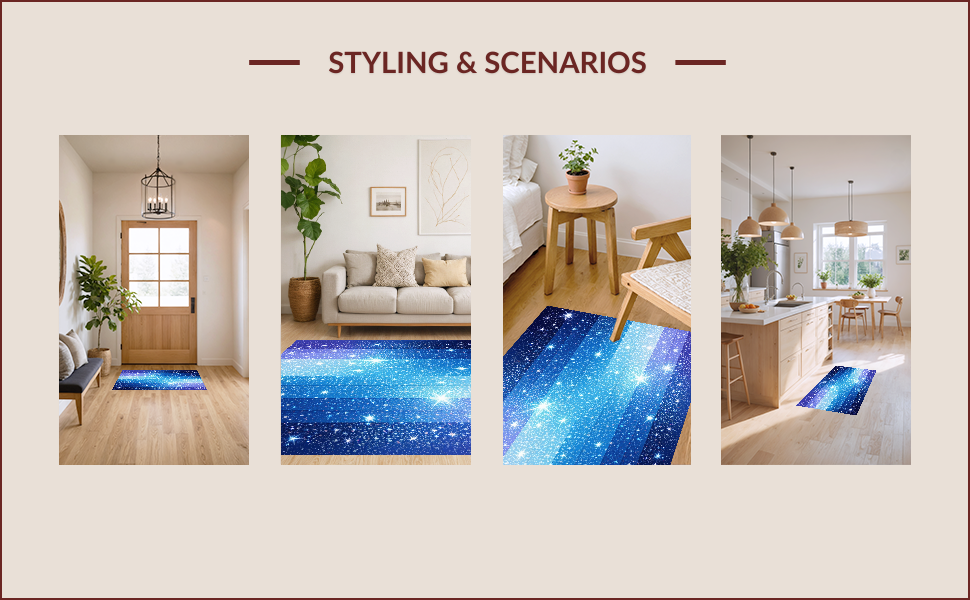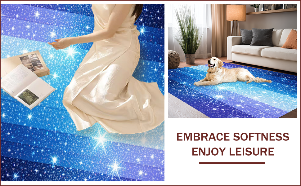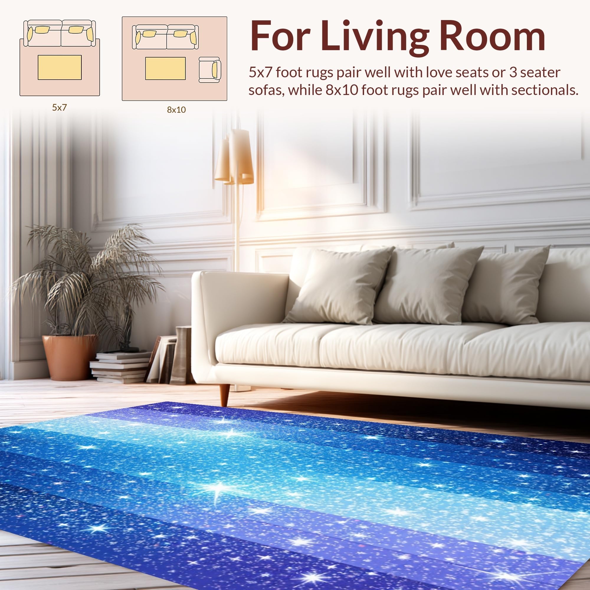 Ultra Soft Area Rug, Non Slip, Stain Resistant, Washable Area Rugs for Living Room, Bedroom, Glittering Tie Dye Dreamscape(Blue) Overview: