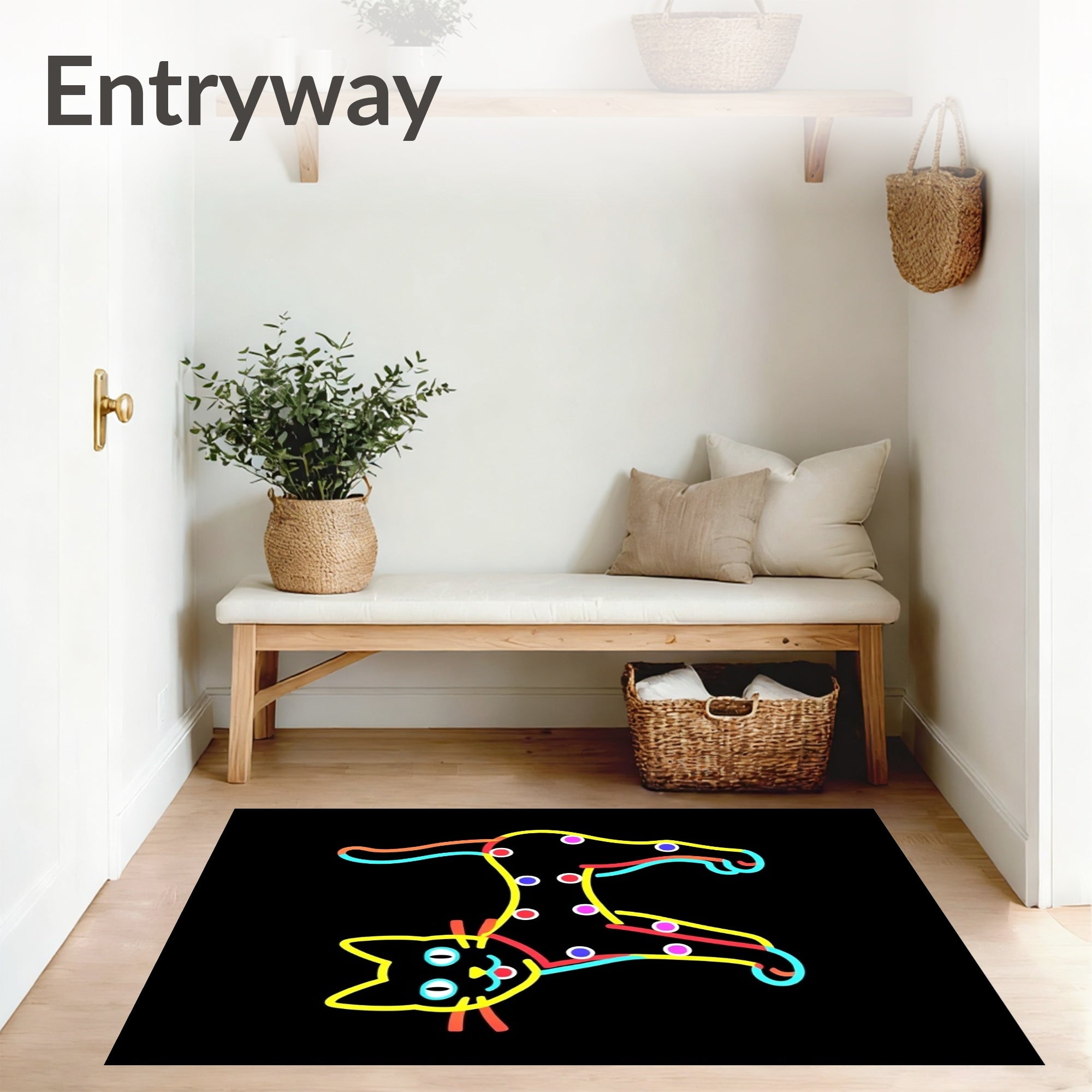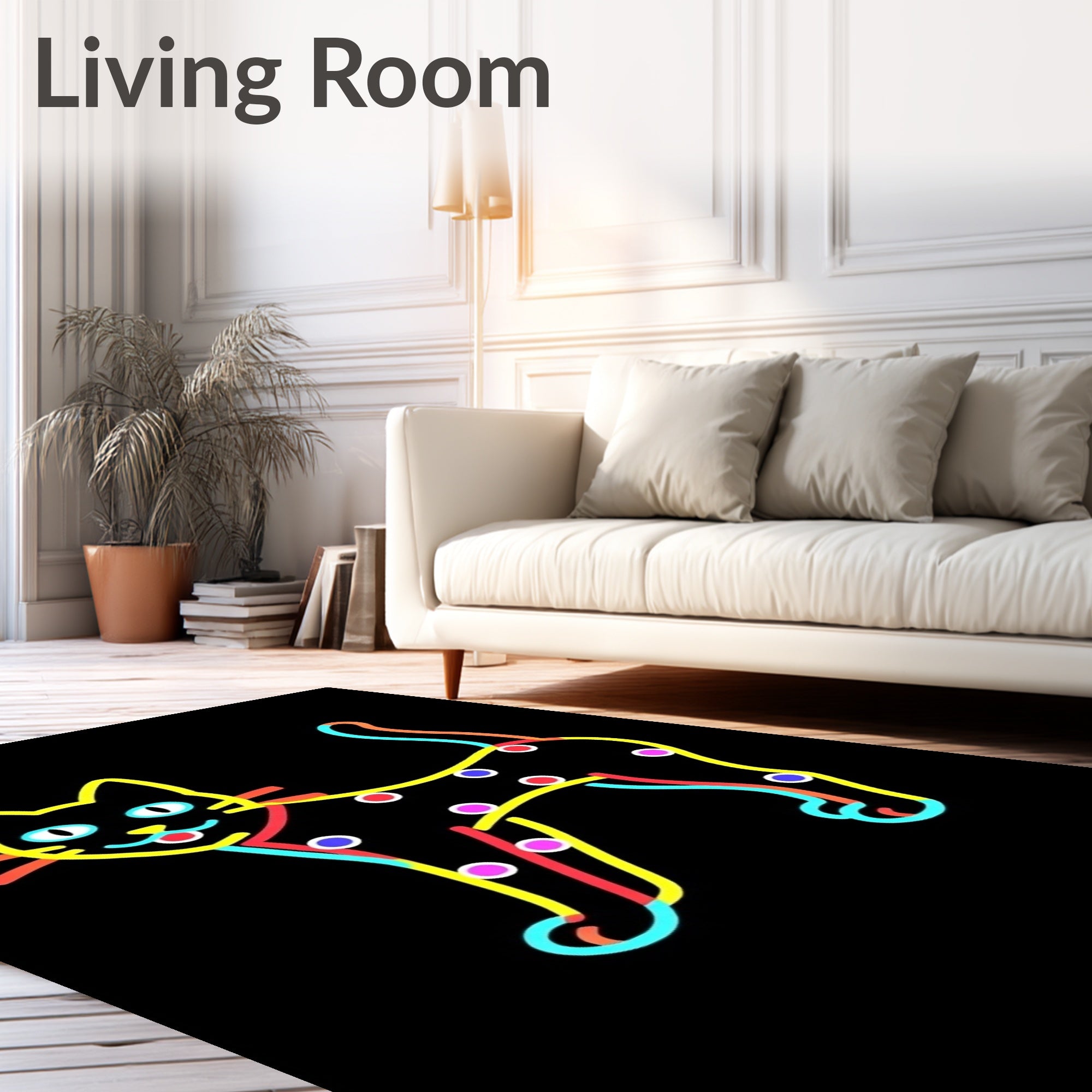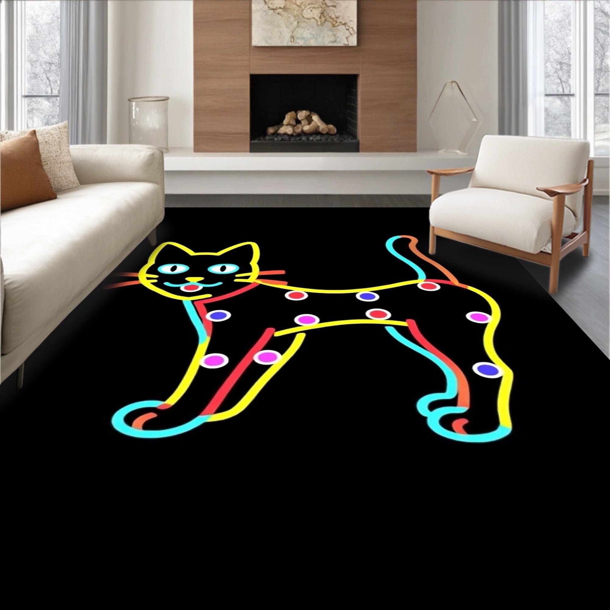 Ultra Soft Area Rug, Non Slip, Stain Resistant, Washable Area Rugs for Living Room, Bedroom, Glowing Kitty Celebration Amusing Party Decoration Joke Present(Black) Overview: