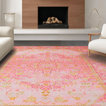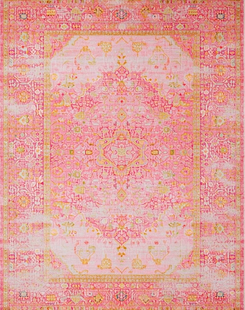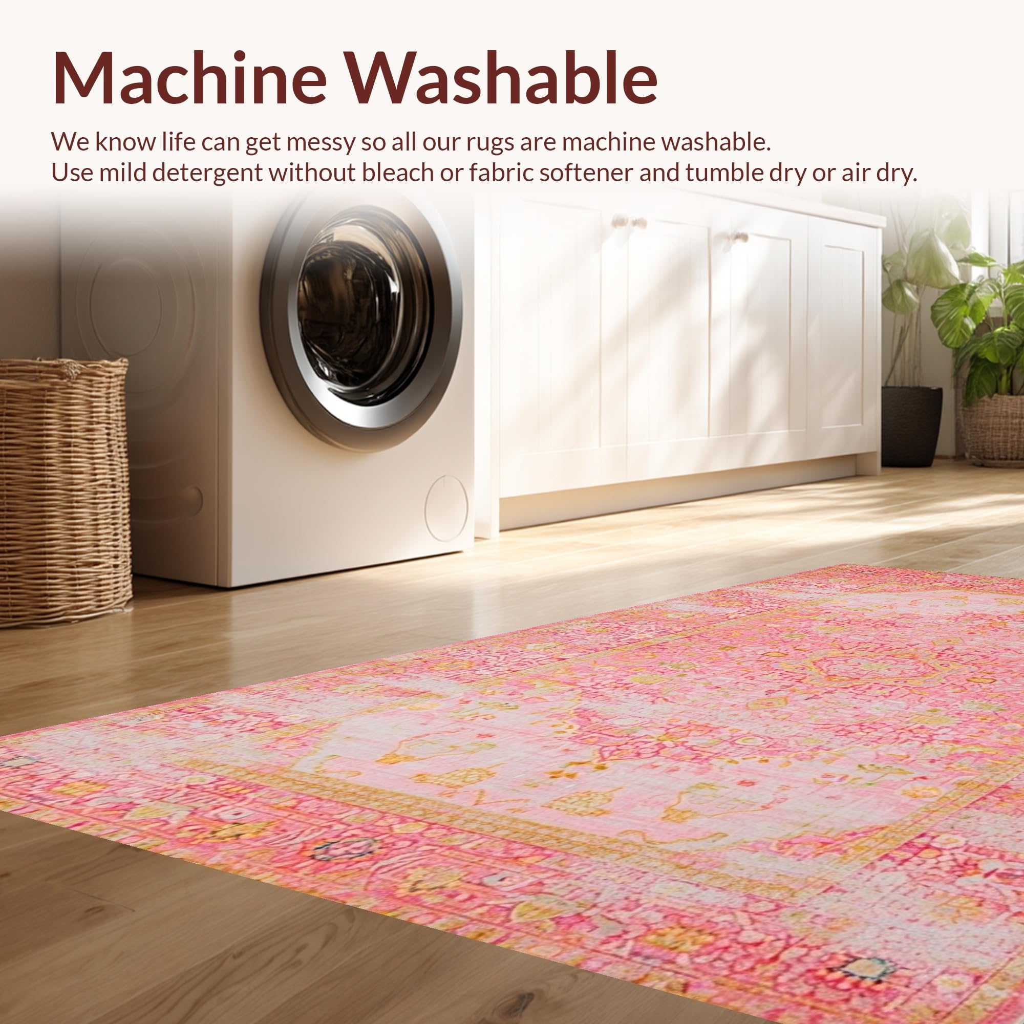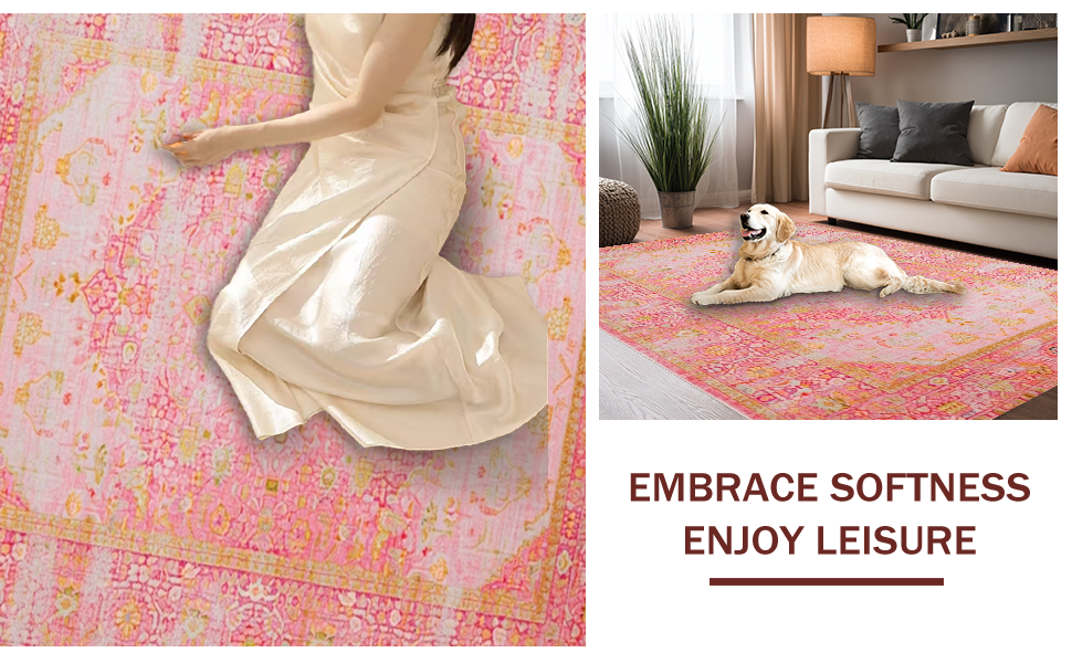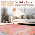 Ultra Soft Area Rug, Non Slip, Stain Resistant, Washable Area Rugs for Living Room, Bedroom, Gold Antique Modern Motif(Pink) Overview: