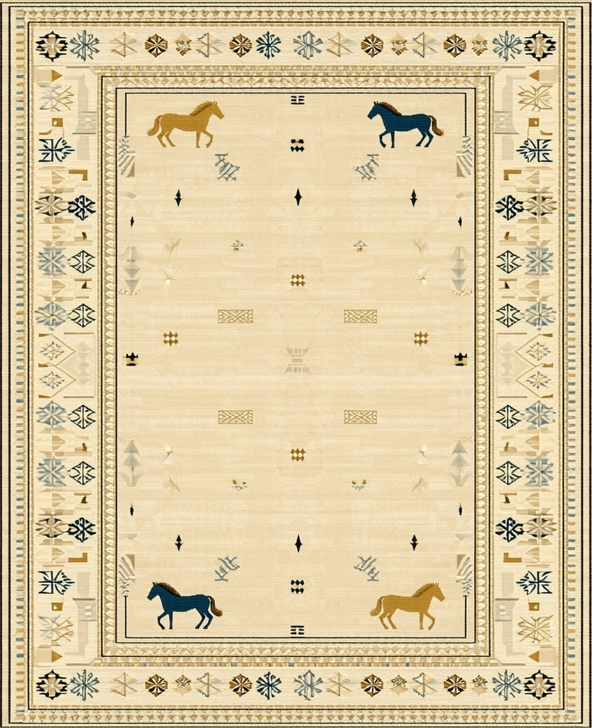 Golden Mane Beige with Stylized Horse Silhouettes(Beige)
