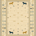 Flatwoven High Traffic Area Rug, Golden Mane Beige with Stylized Horse Silhouettes, Non Slip, Stain Resistant, Washable Area Rugs for Living Room, Bedroom (Beige) Overview: