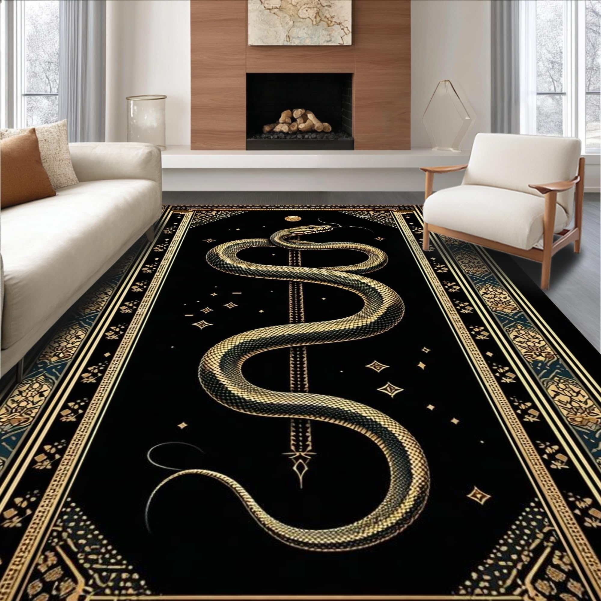 Ultra Soft Area Rug, Non Slip, Stain Resistant, Washable Area Rugs for Living Room, Bedroom, Gothic Celestial Snake Motif(Black) Overview: