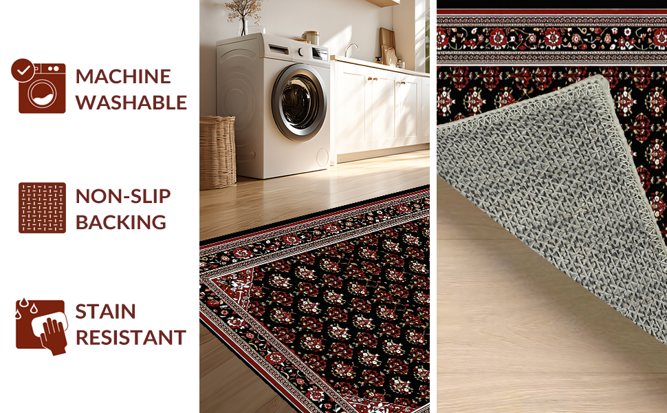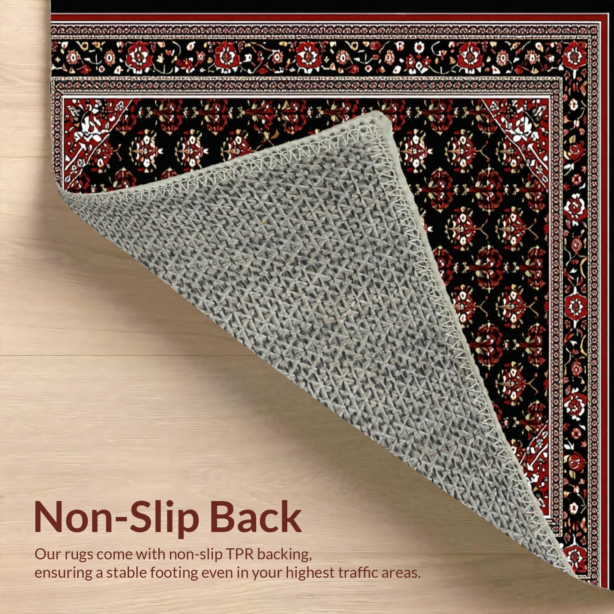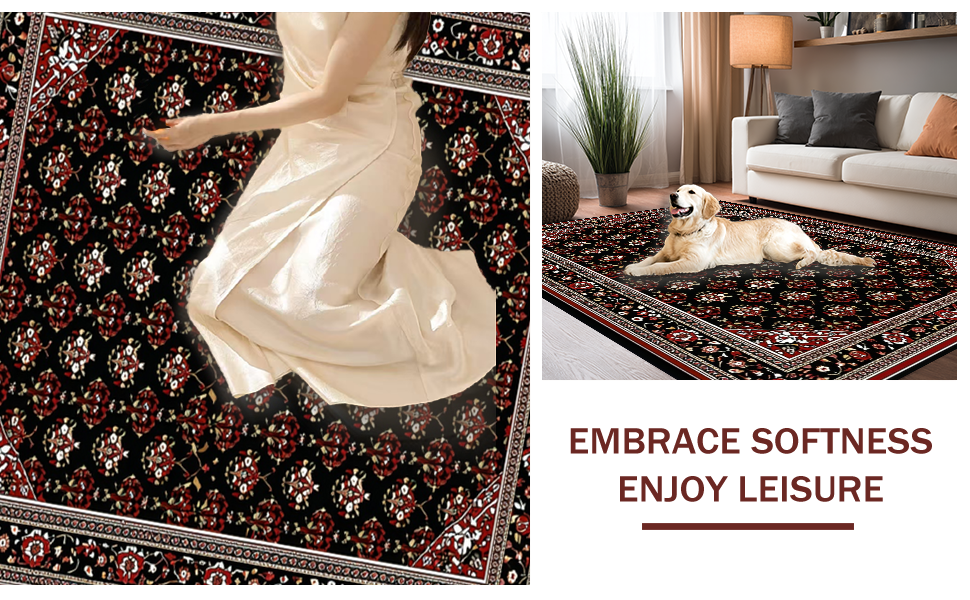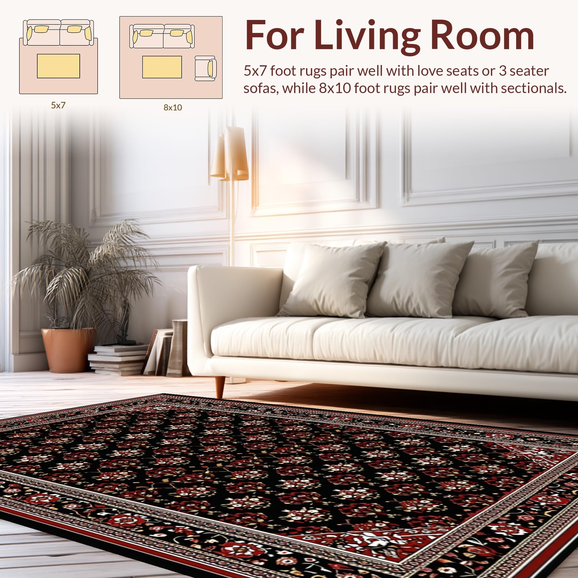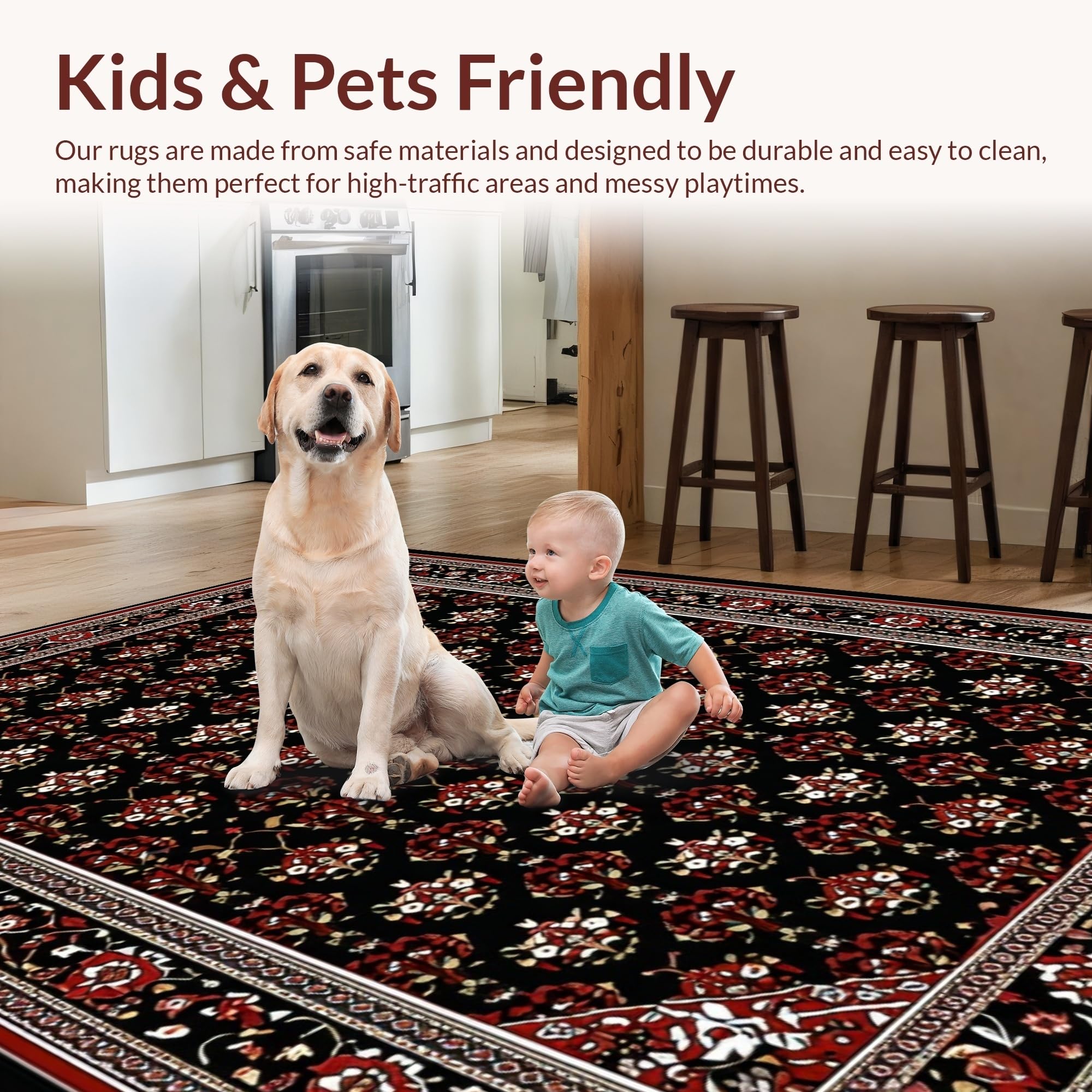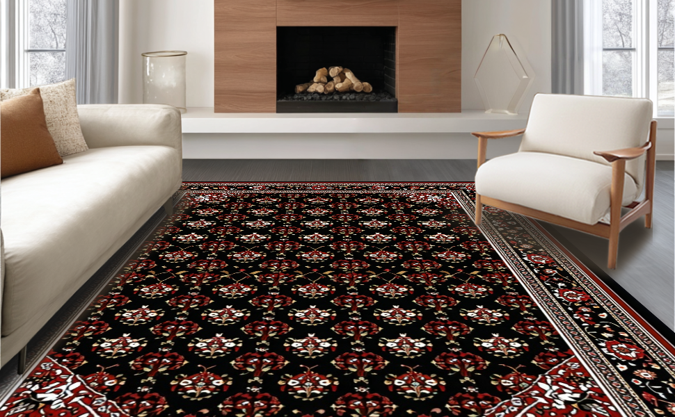 Ultra Soft Area Rug, Non Slip, Stain Resistant, Washable Area Rugs for Living Room, Bedroom, Gothic Elegance with Traditional Patterns(Black) Overview: