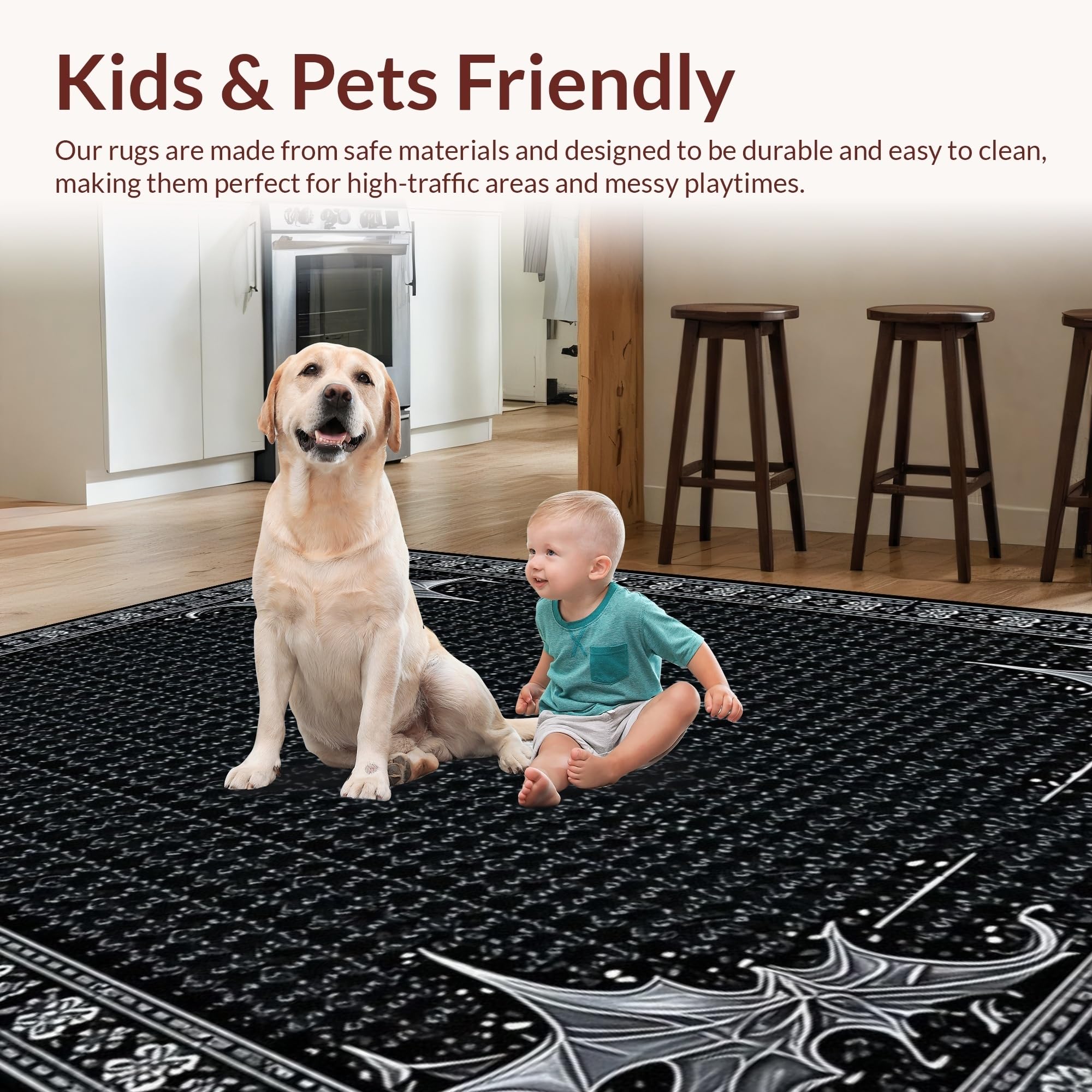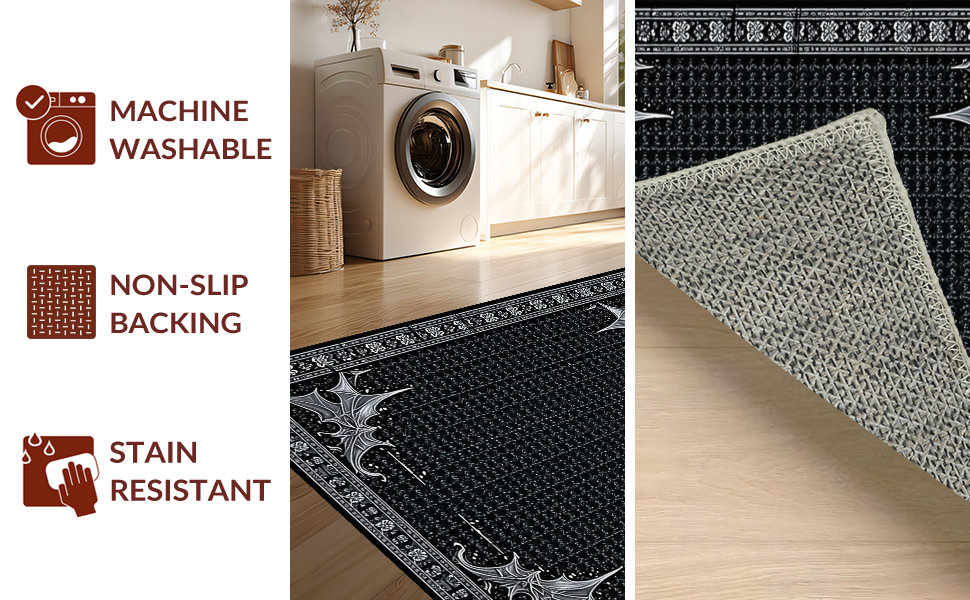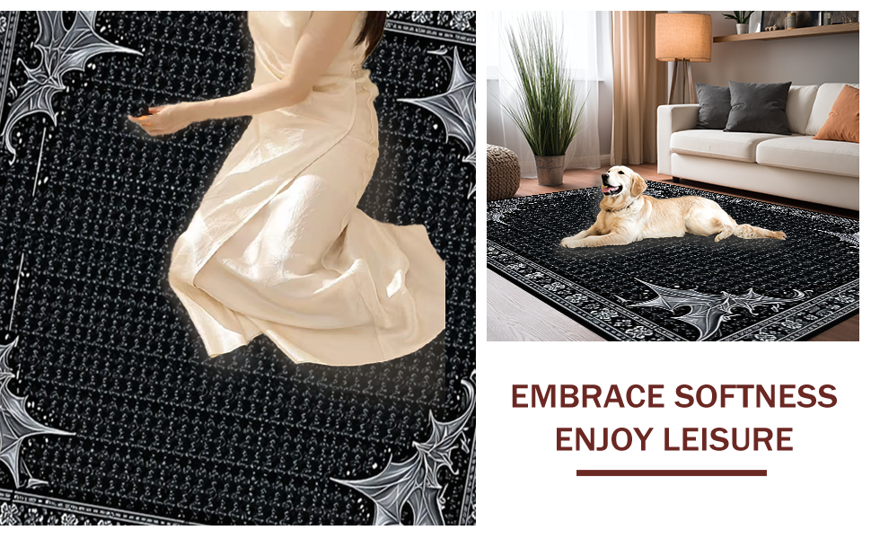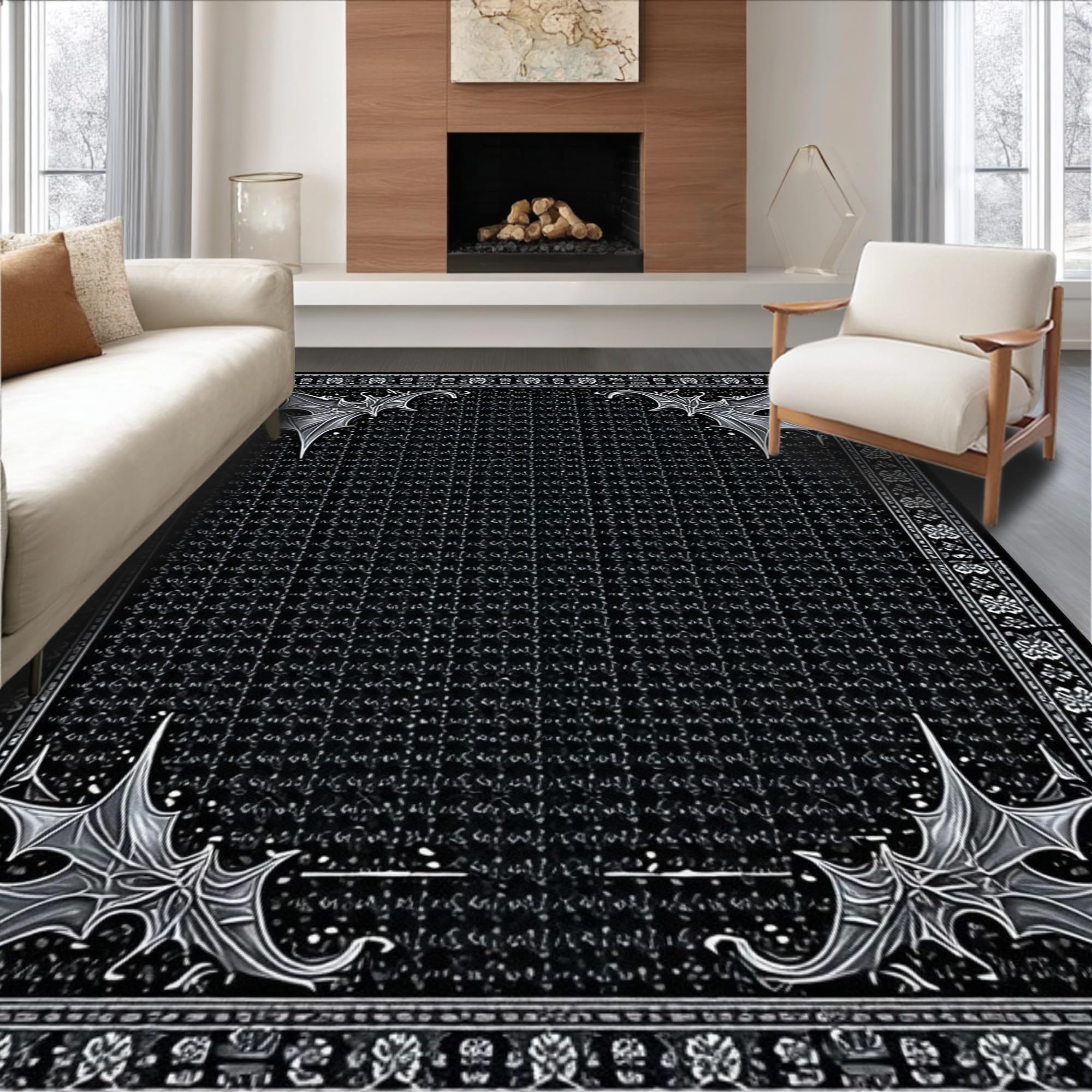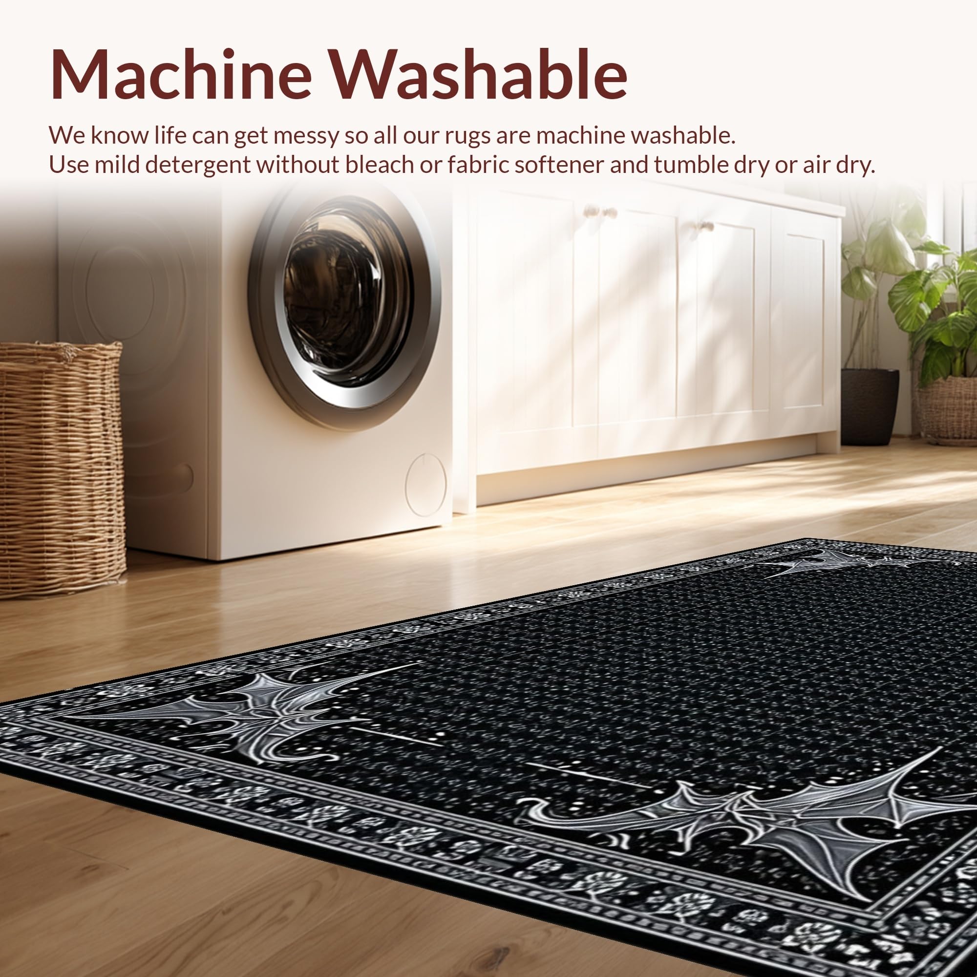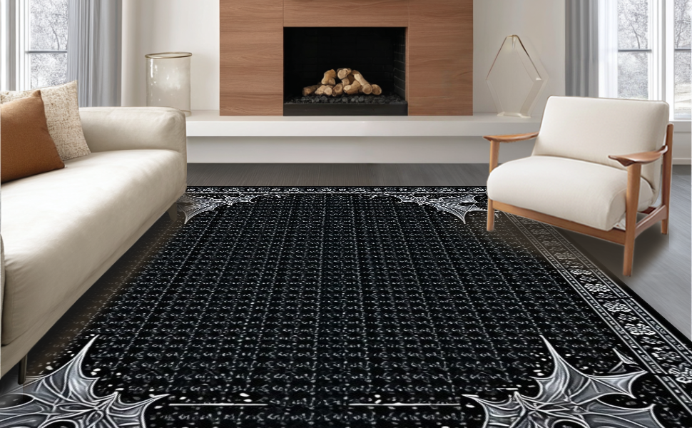 Ultra Soft Area Rug, Non Slip, Stain Resistant, Washable Area Rugs for Living Room, Bedroom, Gothic-Inspired Atmospheric Appeal(Black) Overview: