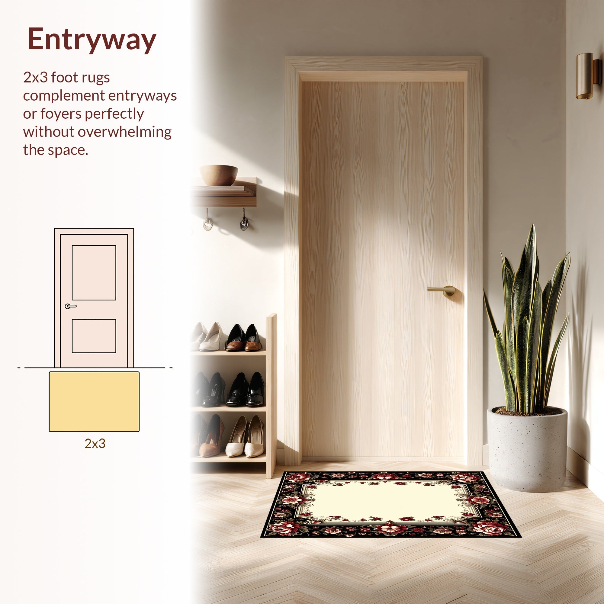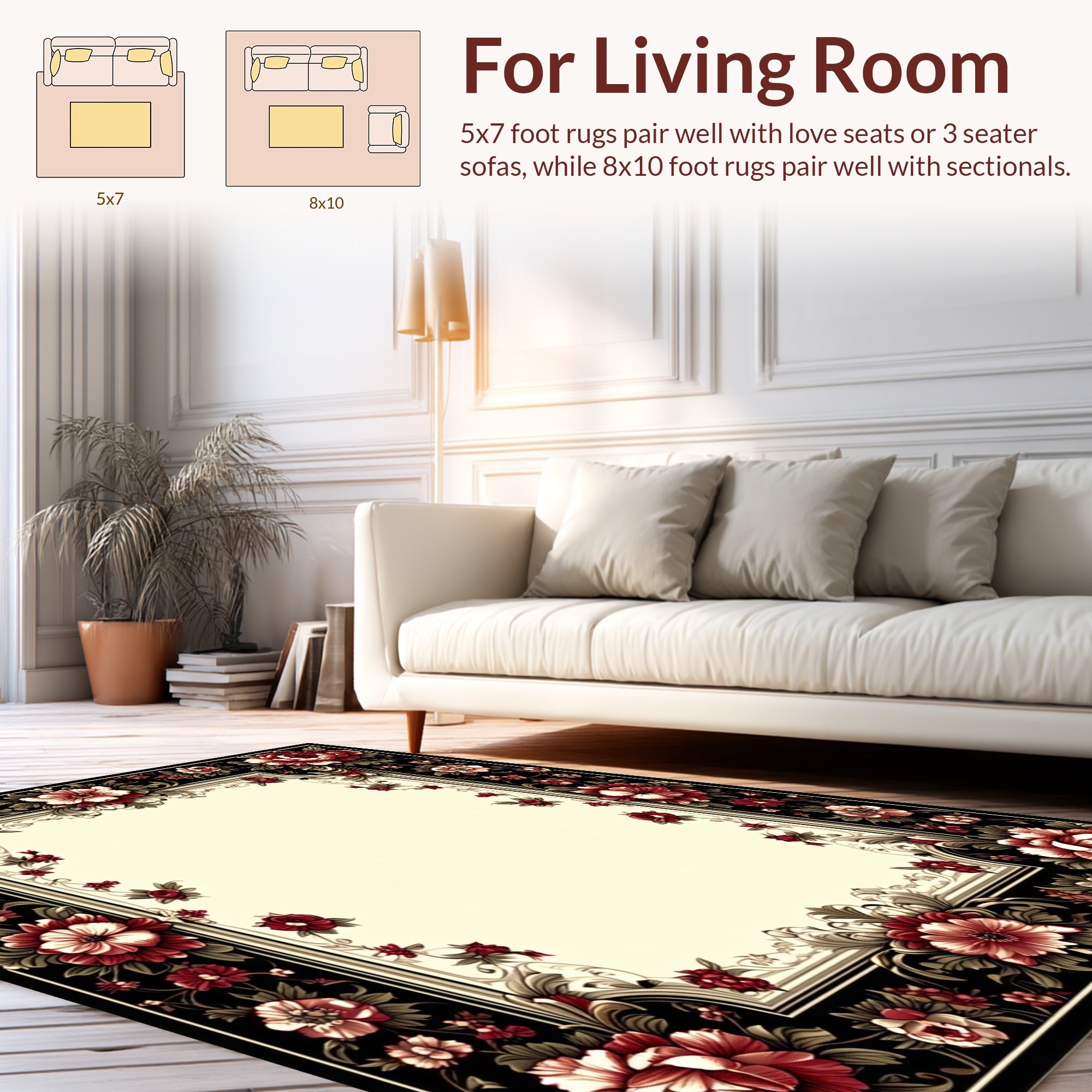 Flatwoven High Traffic Area Rug, Gothic Inspired Floral Elegance, Non Slip, Stain Resistant, Washable Area Rugs for Living Room, Bedroom (Beige) Overview: