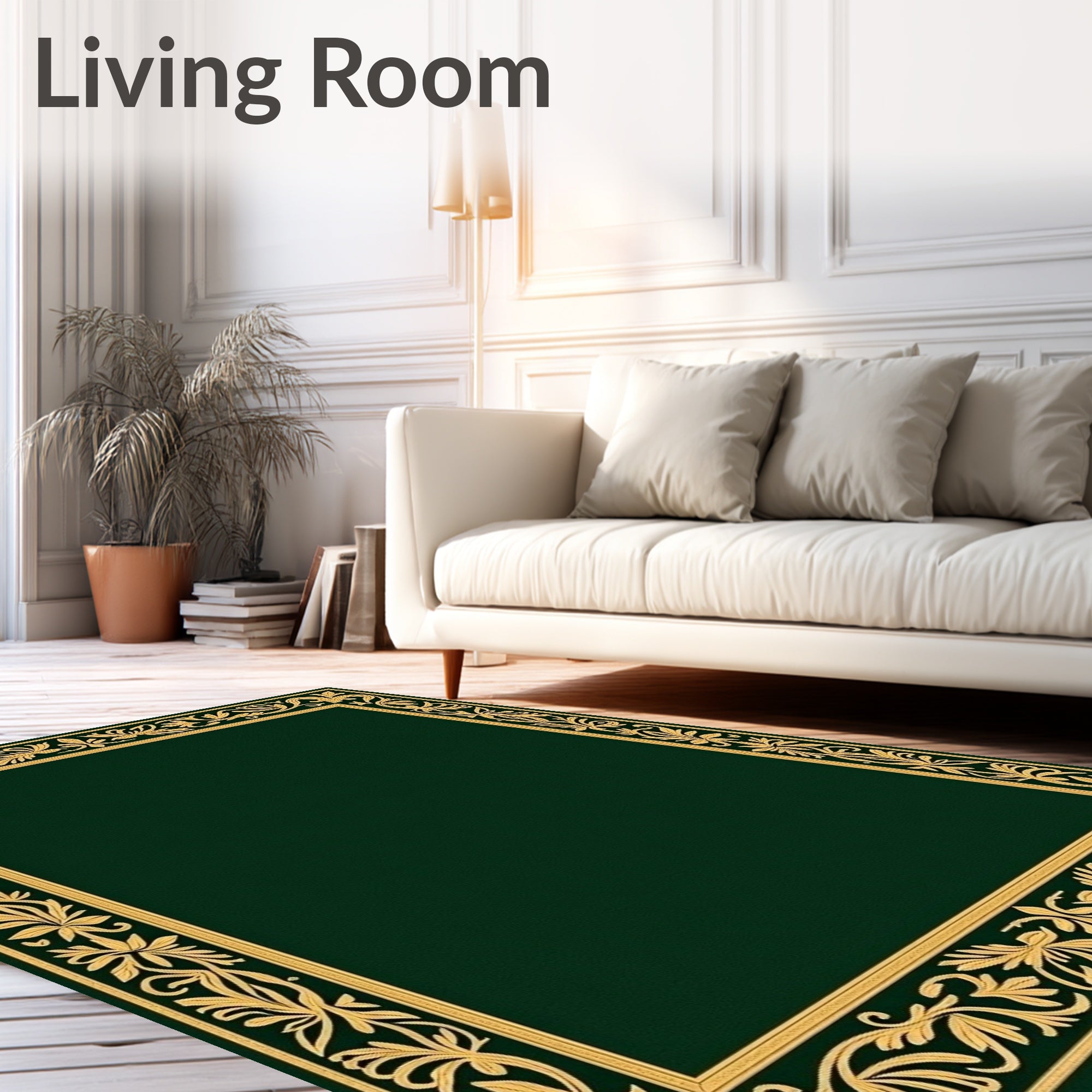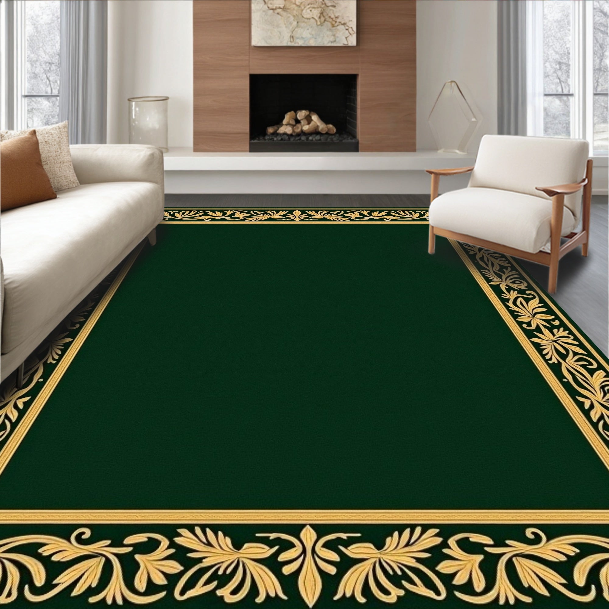 Ultra Soft Area Rug, Non Slip, Stain Resistant, Washable Area Rugs for Living Room, Bedroom, Gothic Revival Garden with Intricate Fleur de and Laurel Borders(Green) Overview: