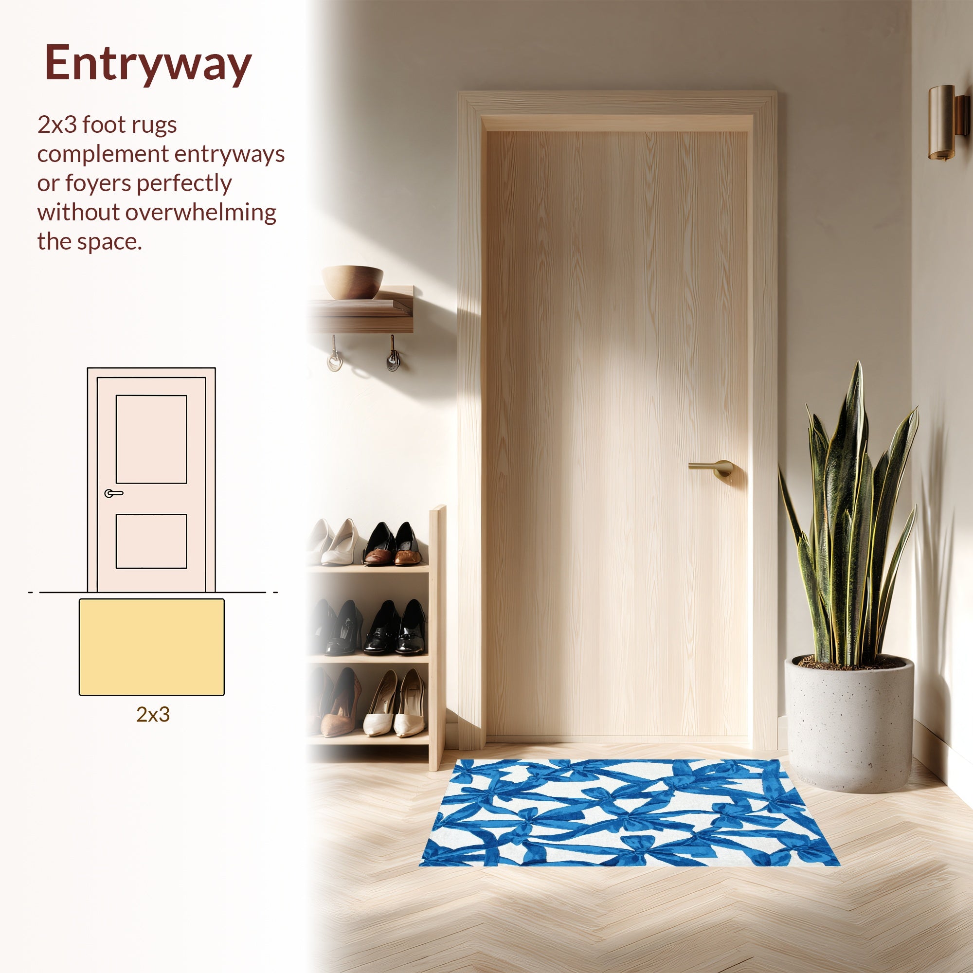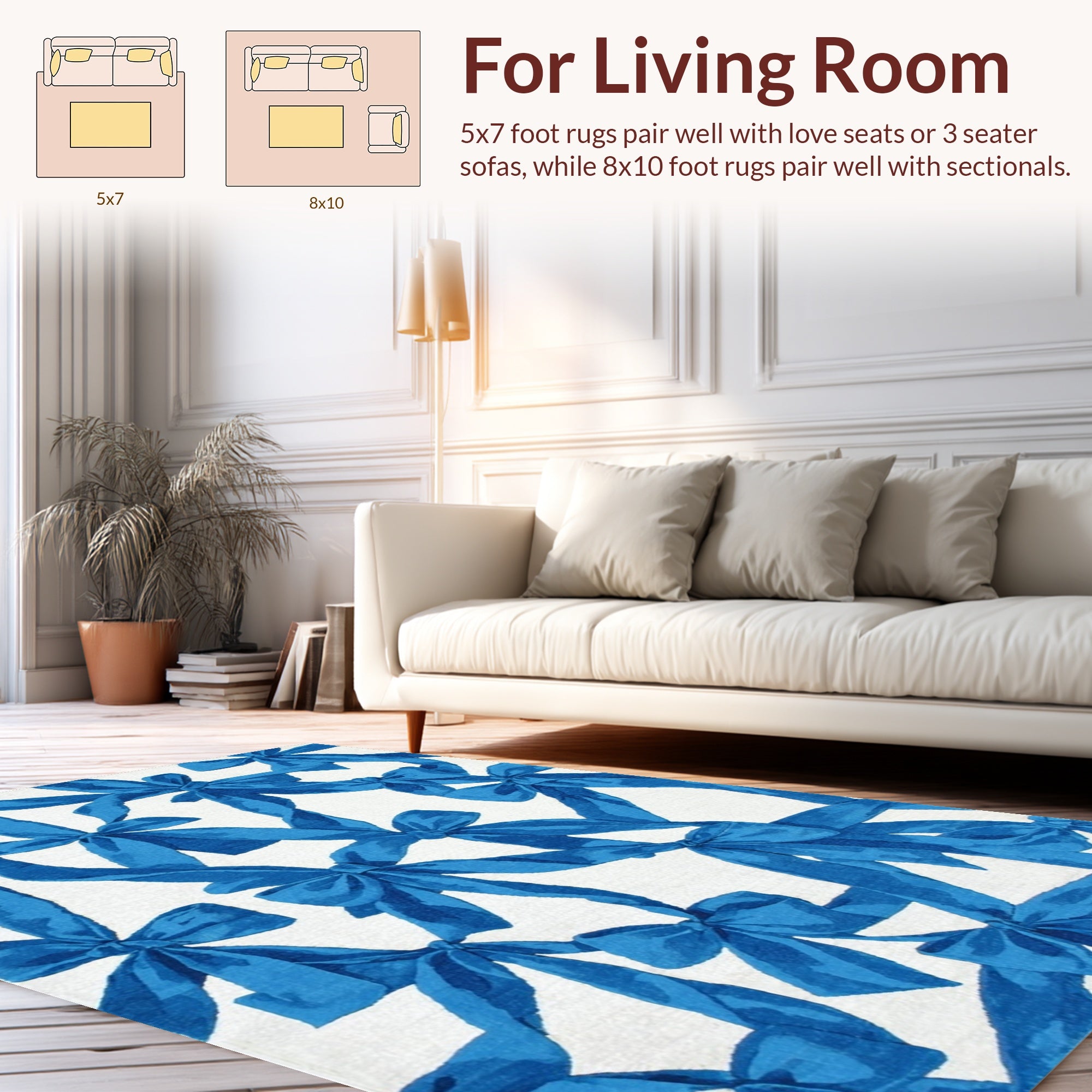 Ultra Soft Area Rug, Non Slip, Stain Resistant, Washable Area Rugs for Living Room, Bedroom, Graceful Azure Bow Tie Decorative Rug With Girlish Aesthetic For Chic Spaces(Blue) Overview: