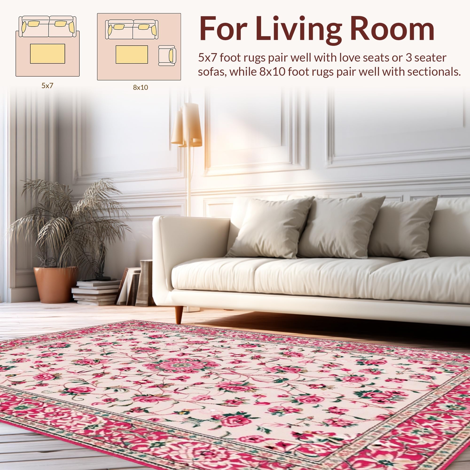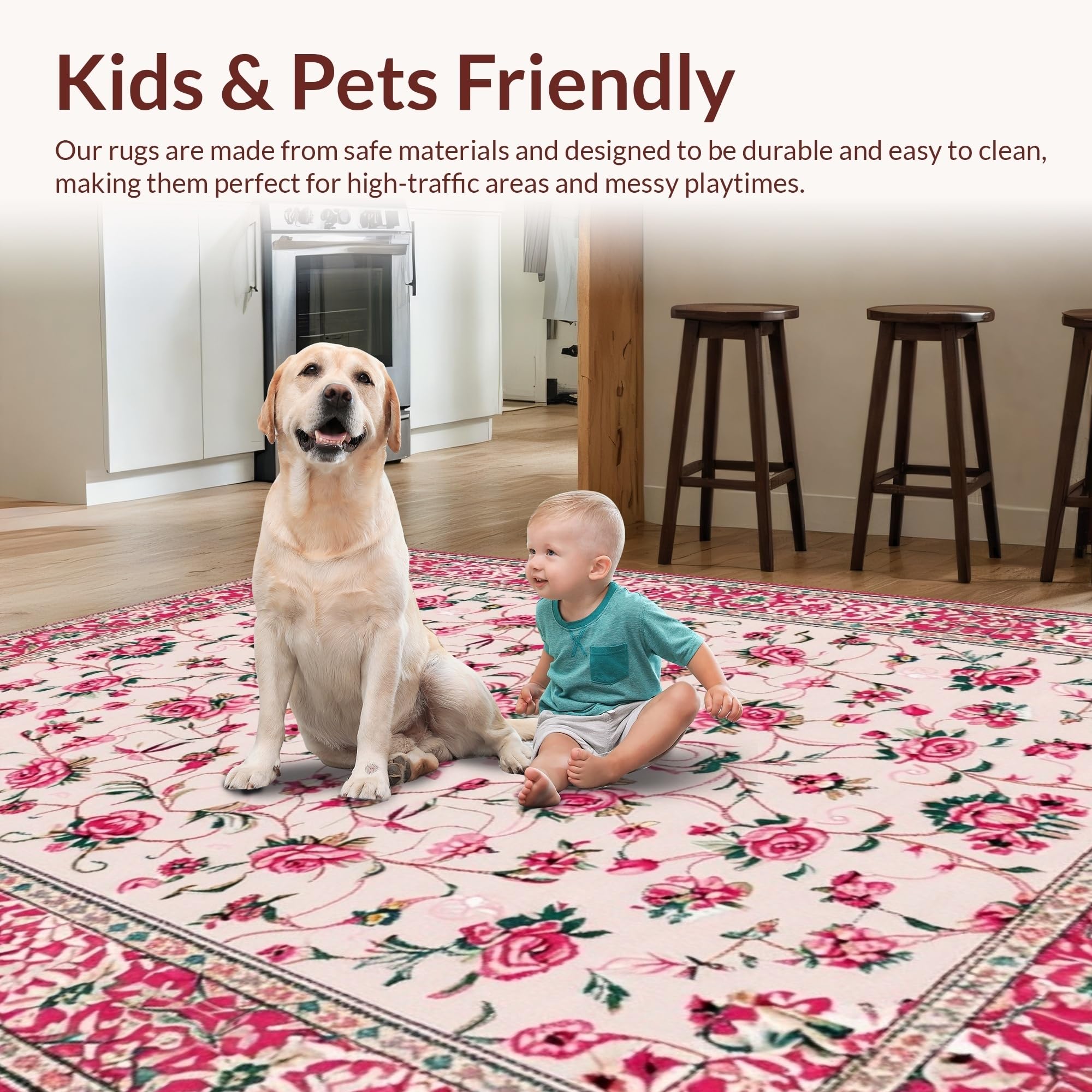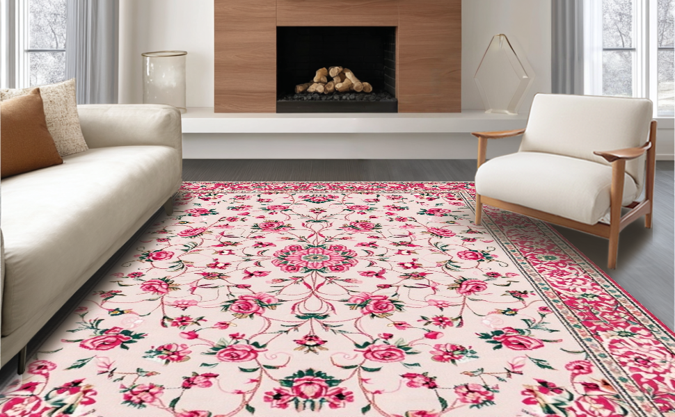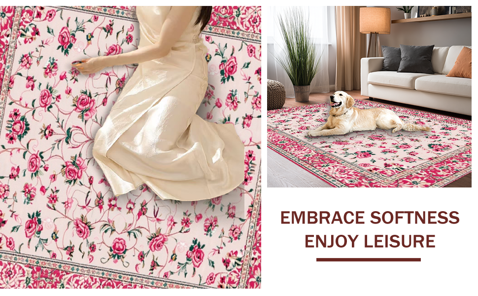 Ultra Soft Area Rug, Non Slip, Stain Resistant, Washable Area Rugs for Living Room, Bedroom, Graceful Contemporary Petal Theme(Ivory) Overview: