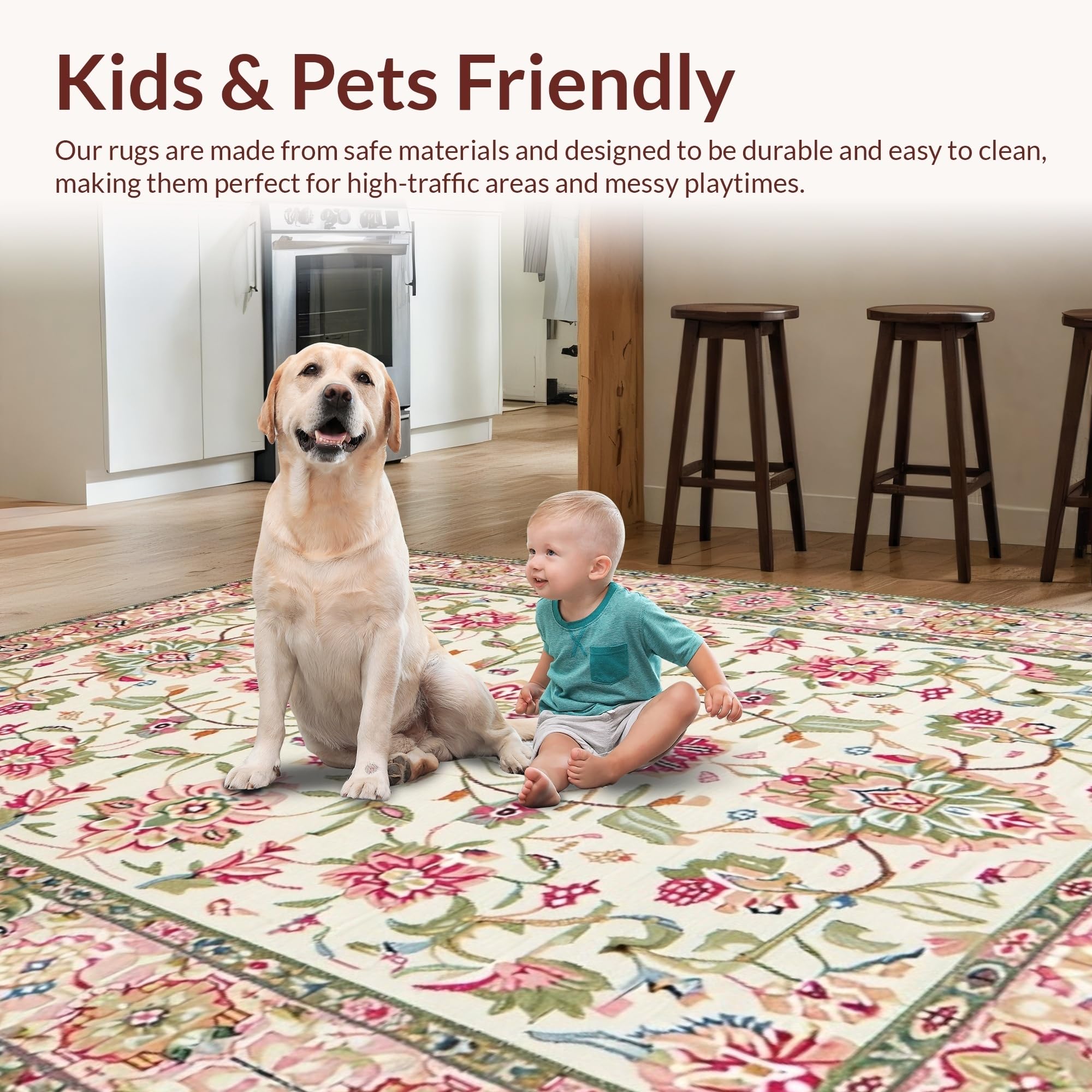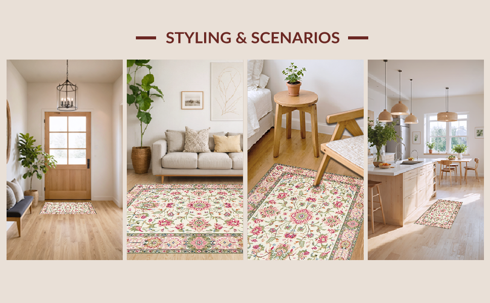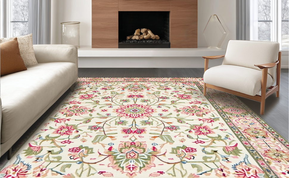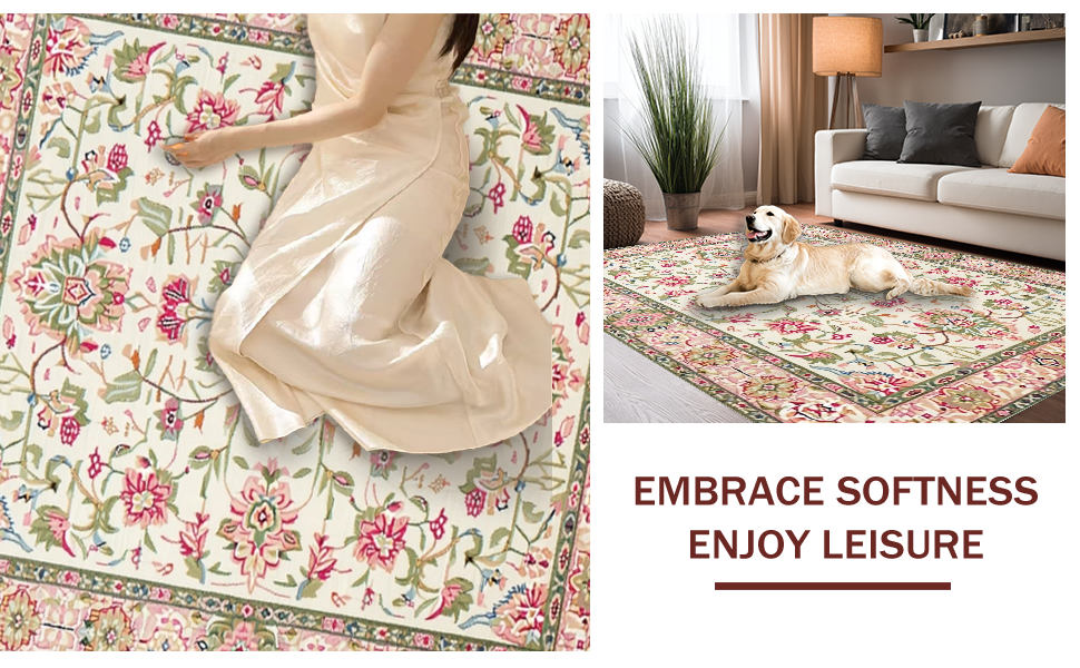 Ultra Soft Area Rug, Non Slip, Stain Resistant, Washable Area Rugs for Living Room, Bedroom, Graceful Floral Twirl Aesthetic(Ivory) Overview: