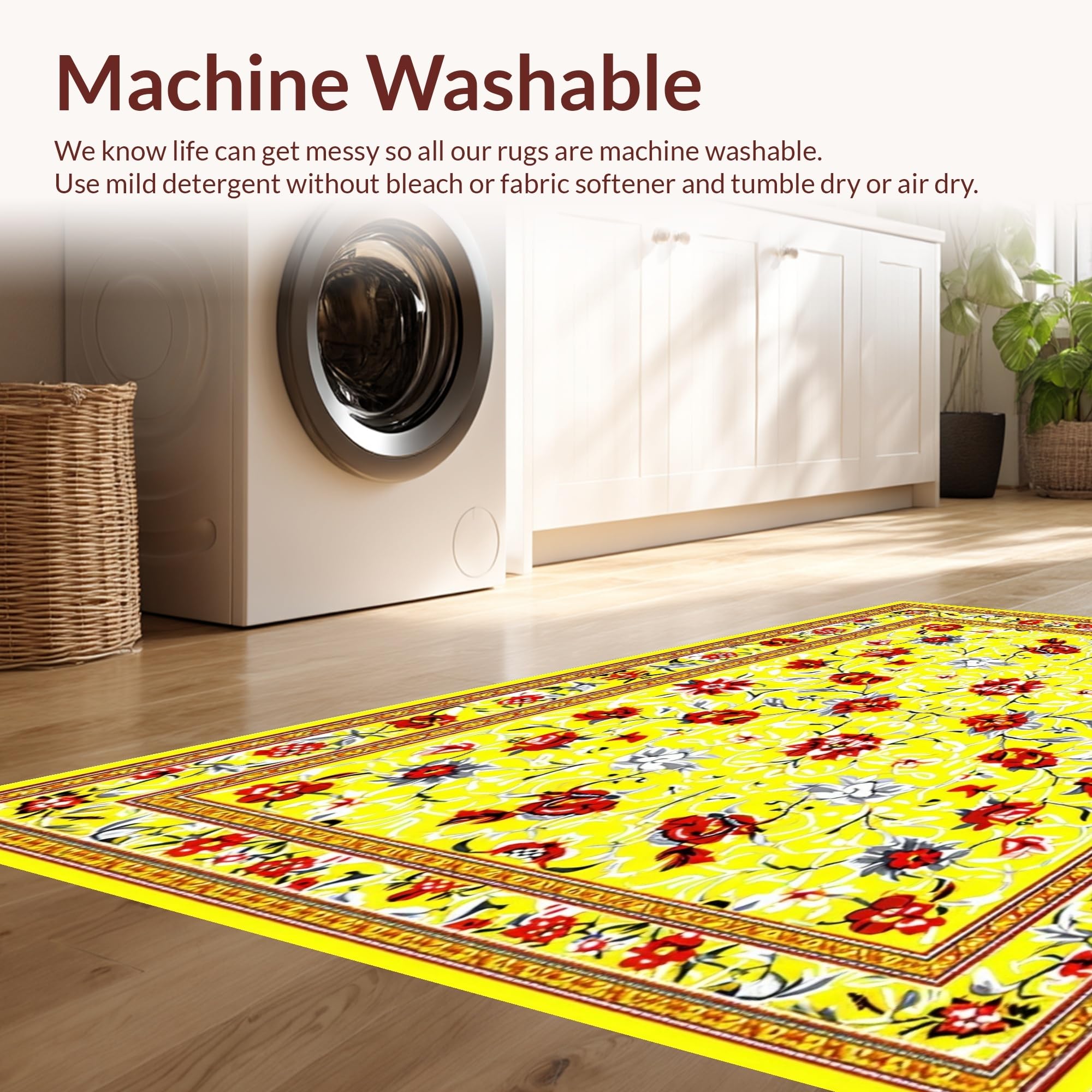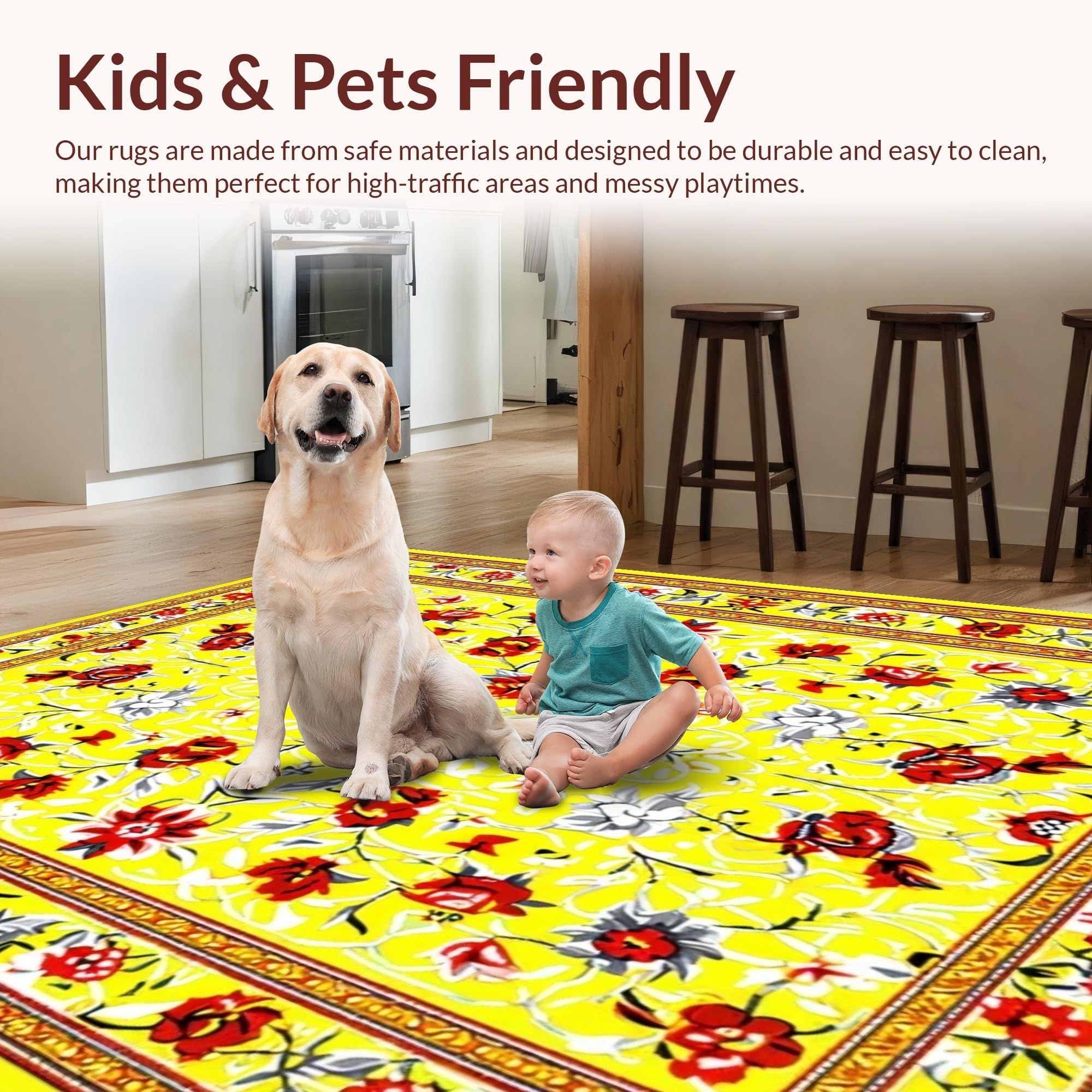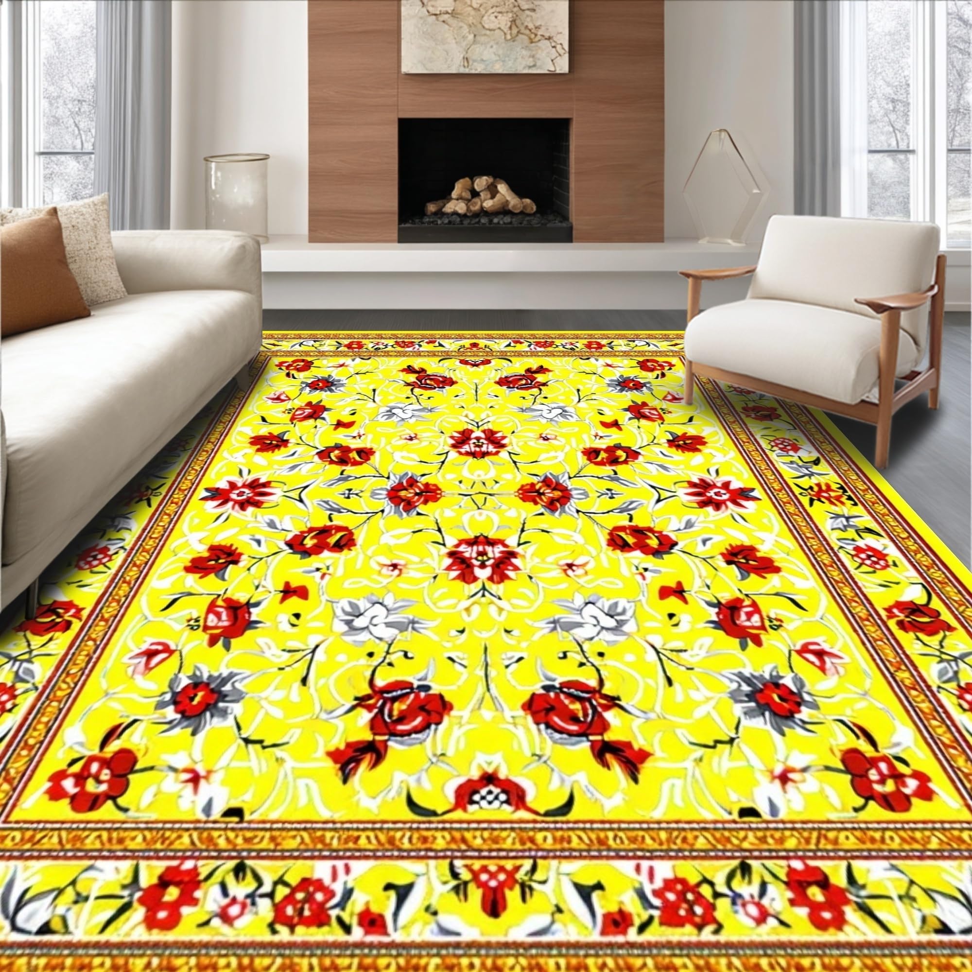 Ultra Soft Area Rug, Non Slip, Stain Resistant, Washable Area Rugs for Living Room, Bedroom, Graceful Soft Floral Accents(Yellow) Overview: