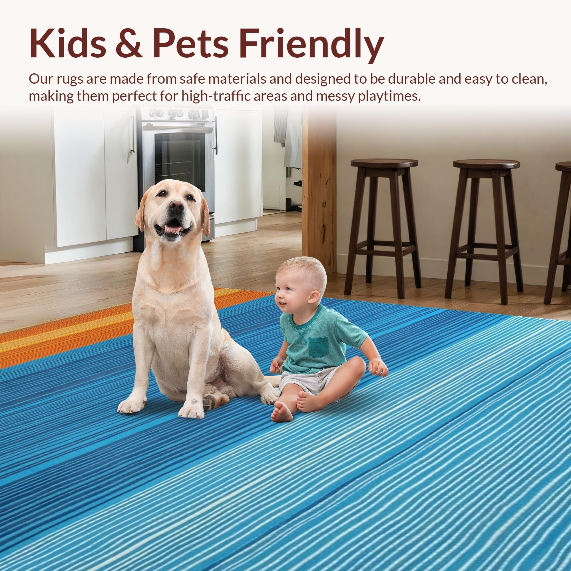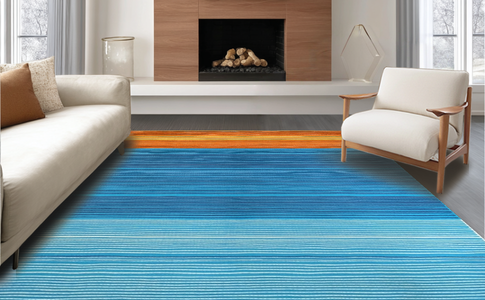 Ultra Soft Area Rug, Non Slip, Stain Resistant, Washable Area Rugs for Living Room, Bedroom, Gradient Ombre Coastal Elegance(Blue) Overview: