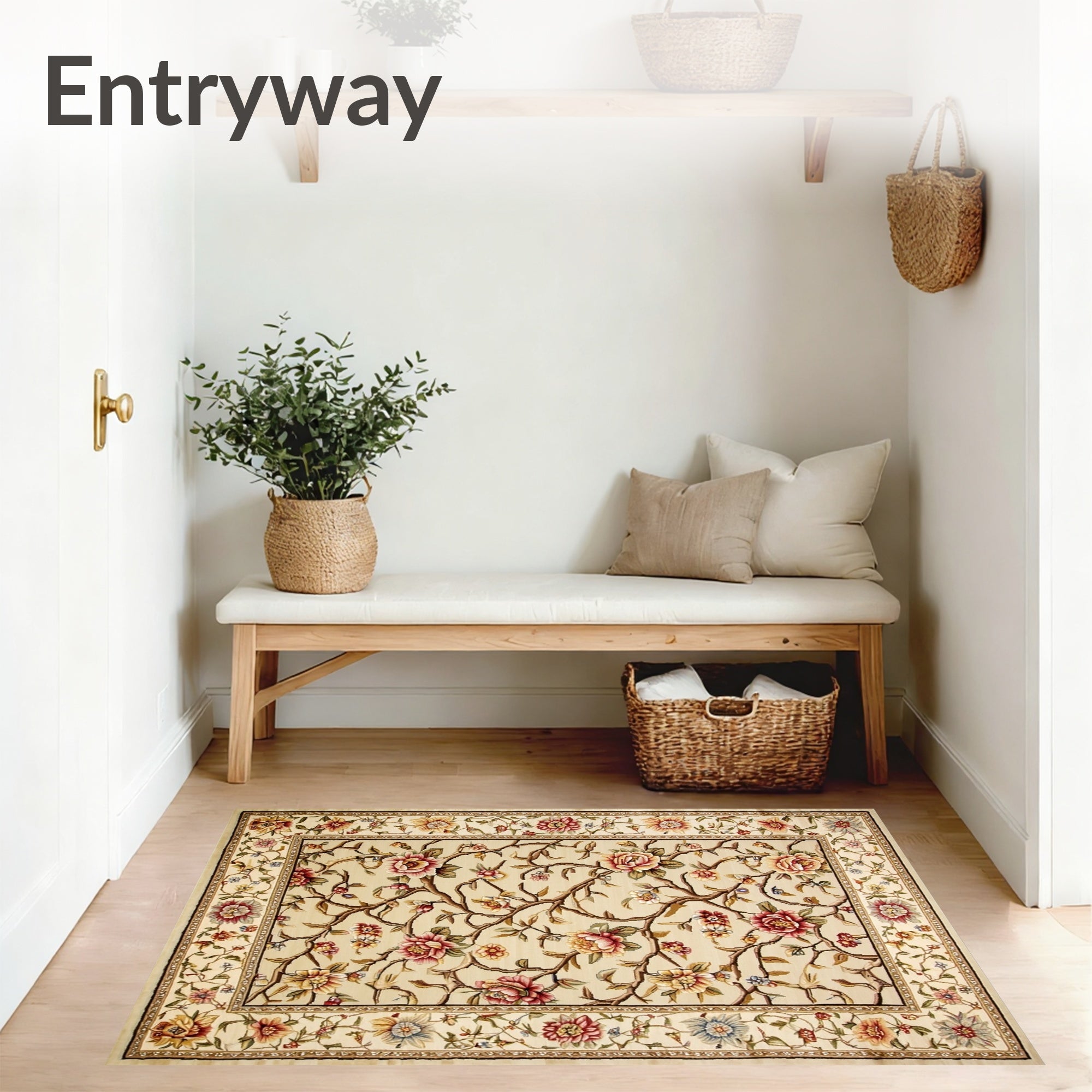 Ultra Soft Area Rug, Non Slip, Stain Resistant, Washable Area Rugs for Living Room, Bedroom, Grand Floral Tapestry Area for Refined Interior Design(Beige) Overview:
