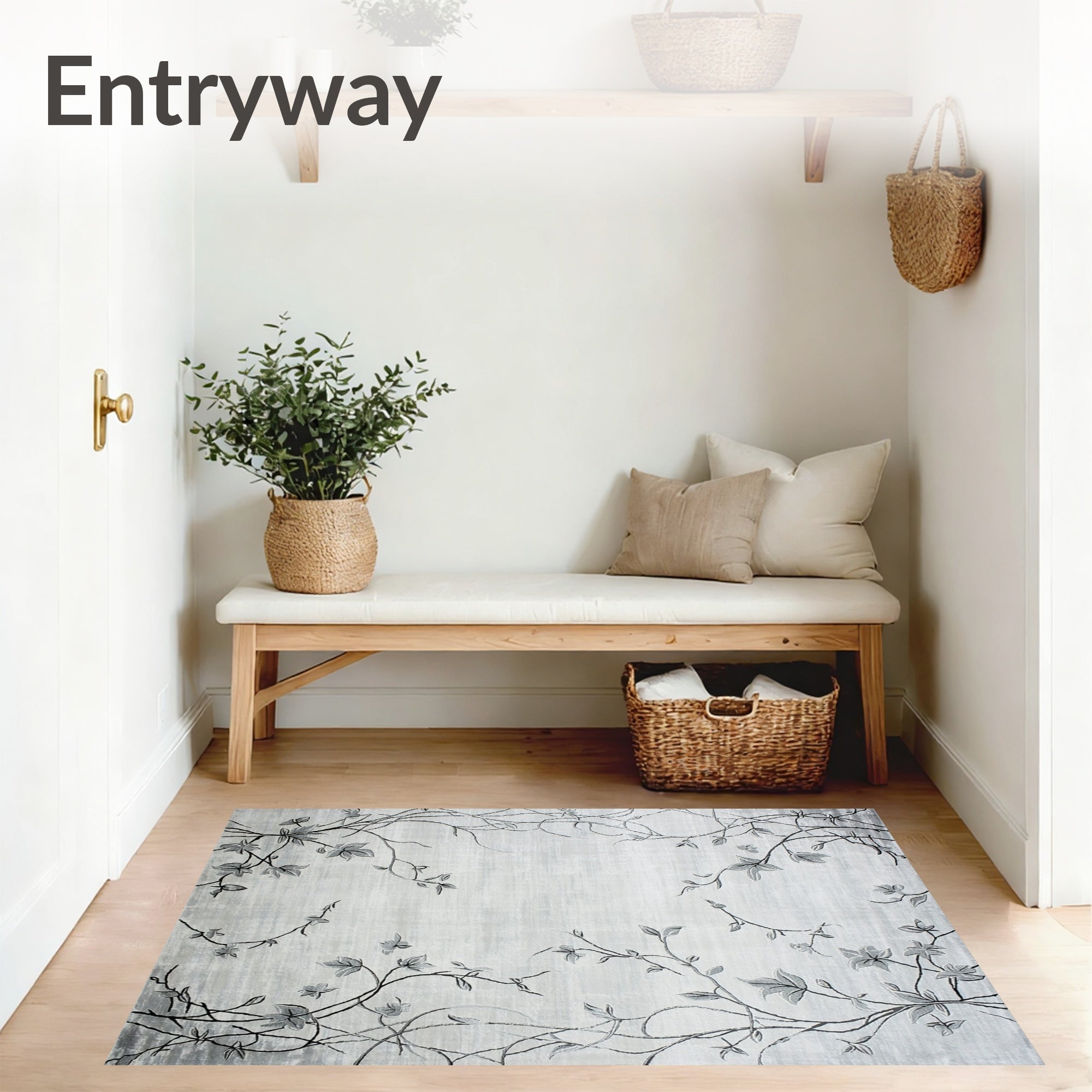 Flatwoven High Traffic Area Rug, Gray Square Intertwined Botanical Design, Non Slip, Stain Resistant, Washable Area Rugs for Living Room, Bedroom (Gray) Overview: