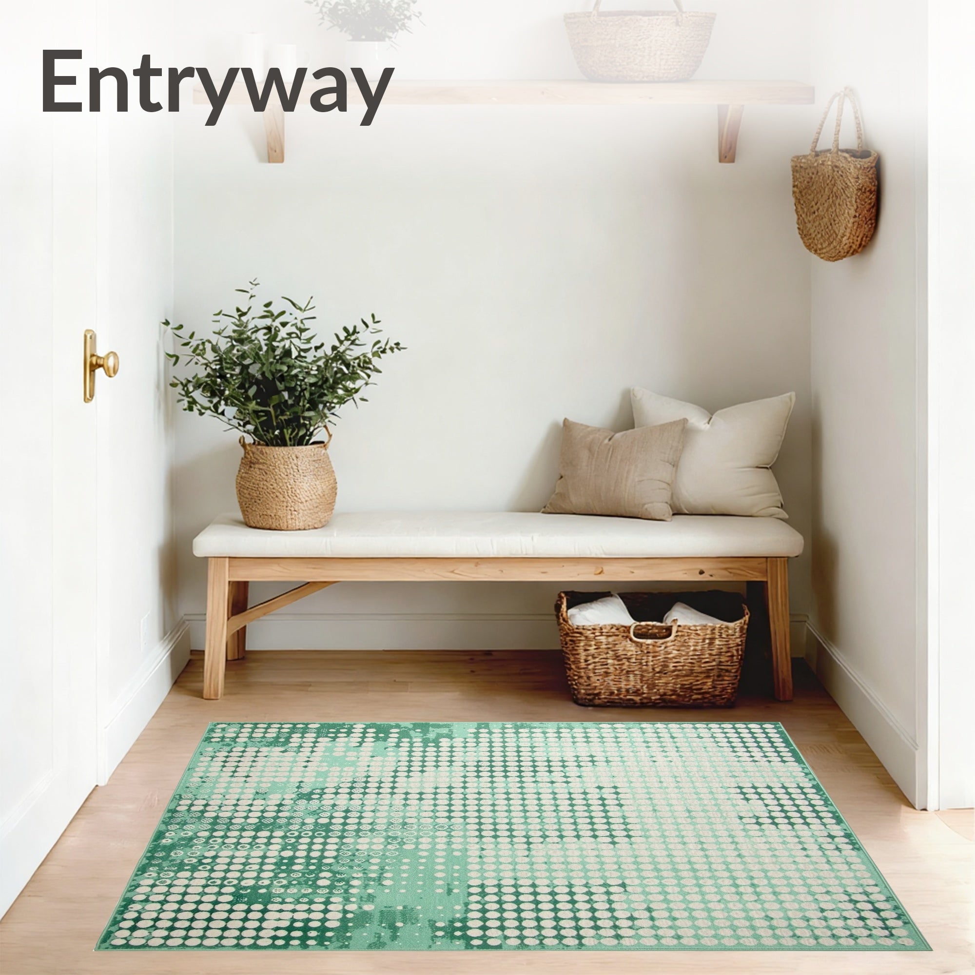 Flatwoven High Traffic Area Rug, Green and Quick Dry Absorbent Non Slip, Non Slip, Stain Resistant, Washable Area Rugs for Living Room, Bedroom (Green) Overview: