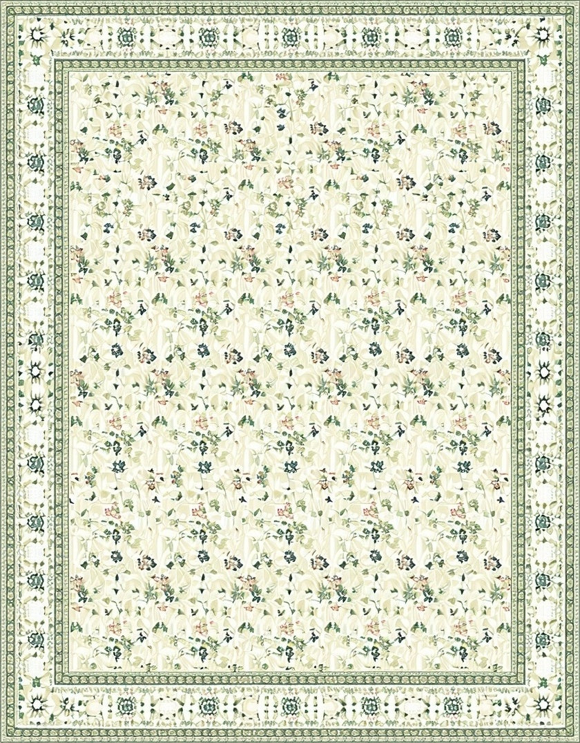 Green & Beige Area Low Pile with Subtle Floral Motifs(Beige)