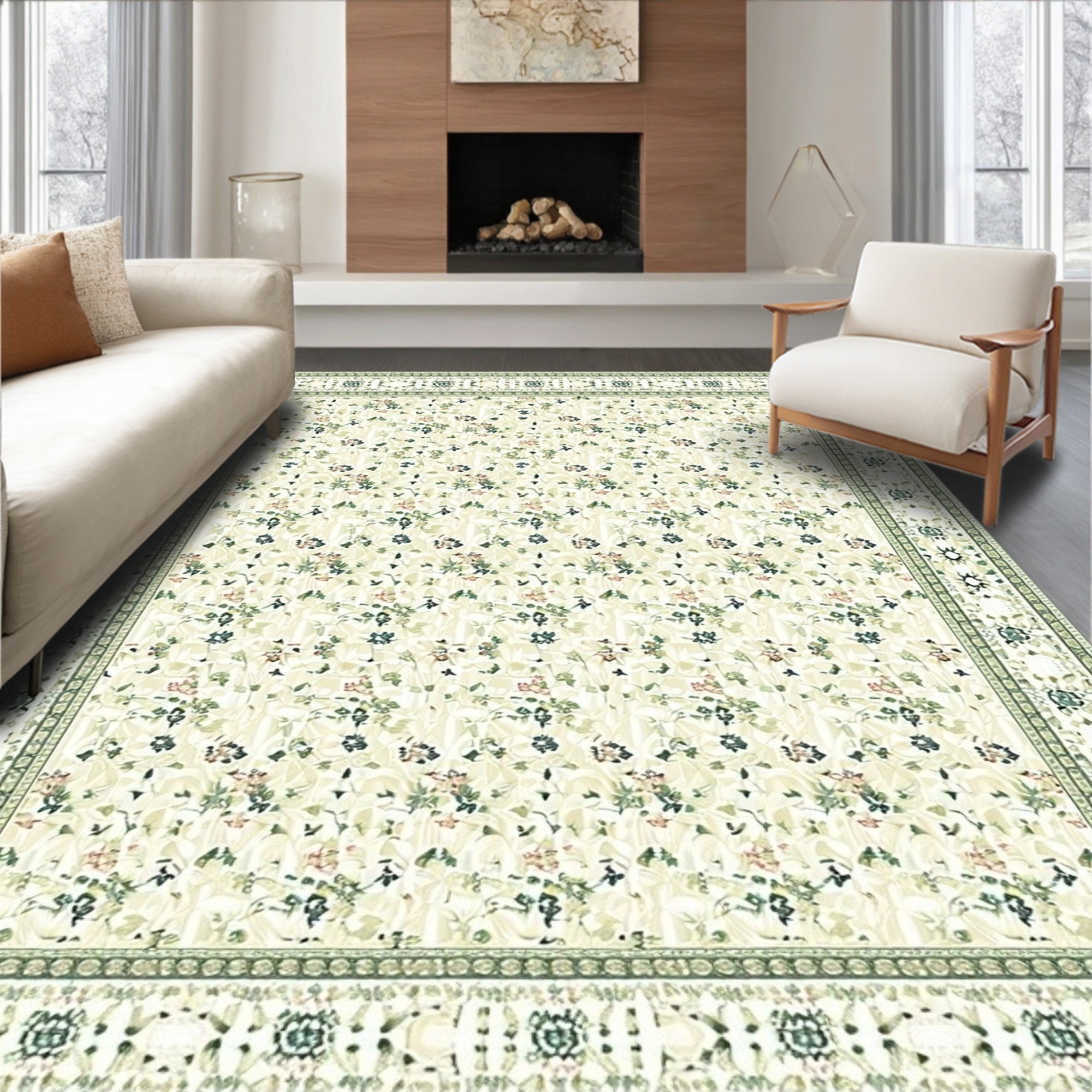 Ultra Soft Area Rug, Non Slip, Stain Resistant, Washable Area Rugs for Living Room, Bedroom, Green & Beige Area Low Pile with Subtle Floral Motifs(Beige) Overview: