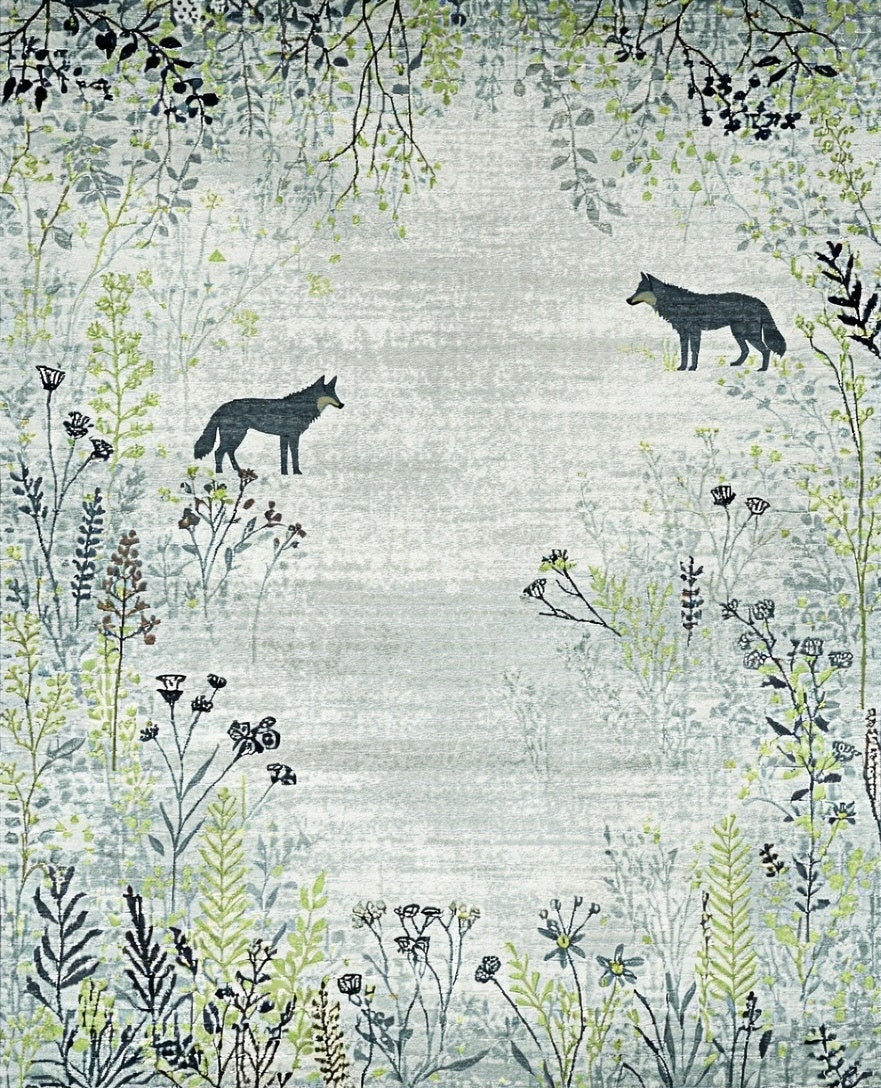 Grey Wolf Rug Wildflowers Weeds Pattern Floor Mat Contemporary Carpet(Gray)