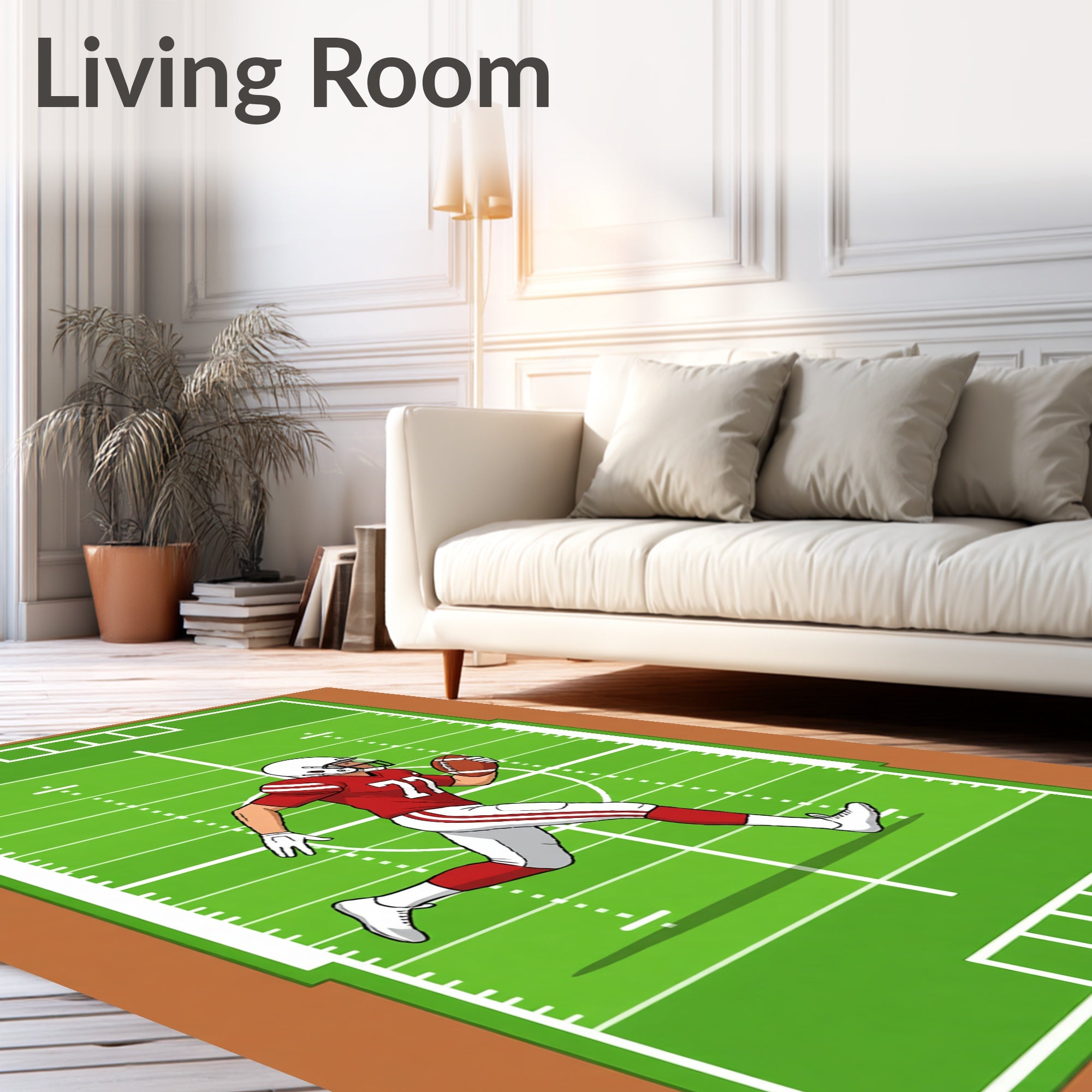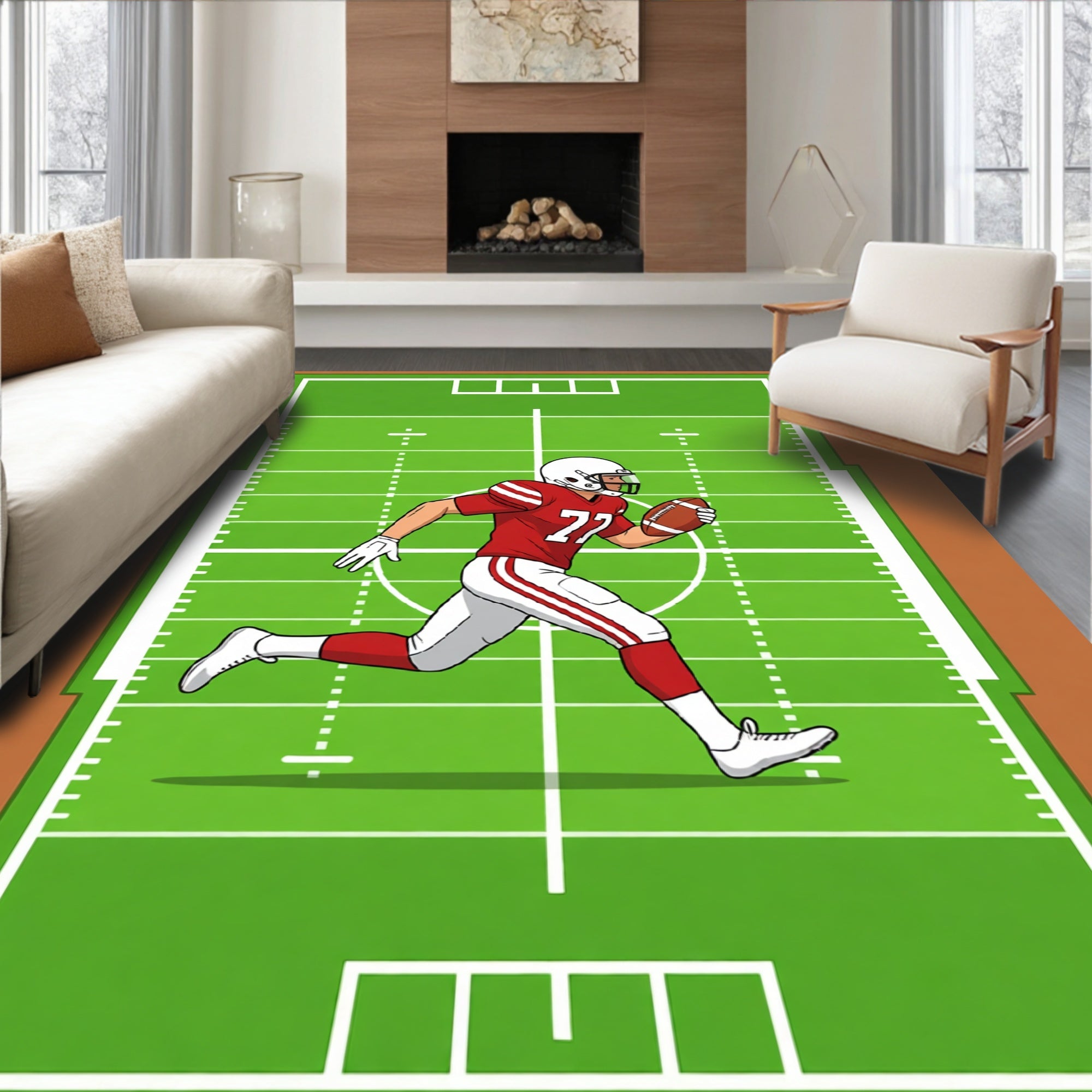 Ultra Soft Area Rug, Non Slip, Stain Resistant, Washable Area Rugs for Living Room, Bedroom, Gridiron Football Player Sprinting Field Design(green) Overview: