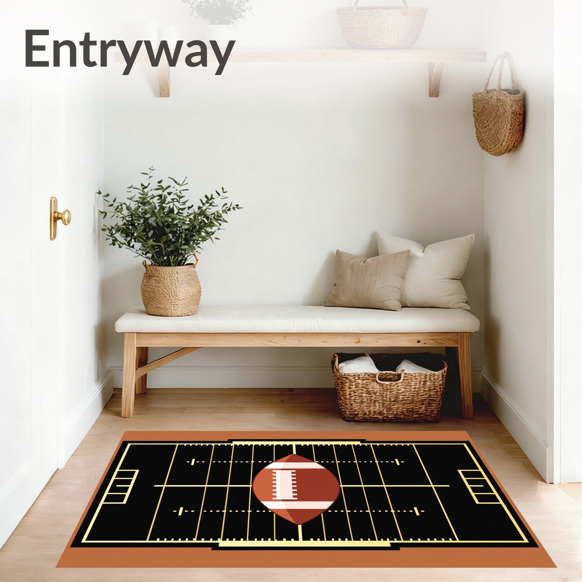 Ultra Soft Area Rug, Non Slip, Stain Resistant, Washable Area Rugs for Living Room, Bedroom, Gridiron Yard Lines Football Pigskin Motif(green) Overview: