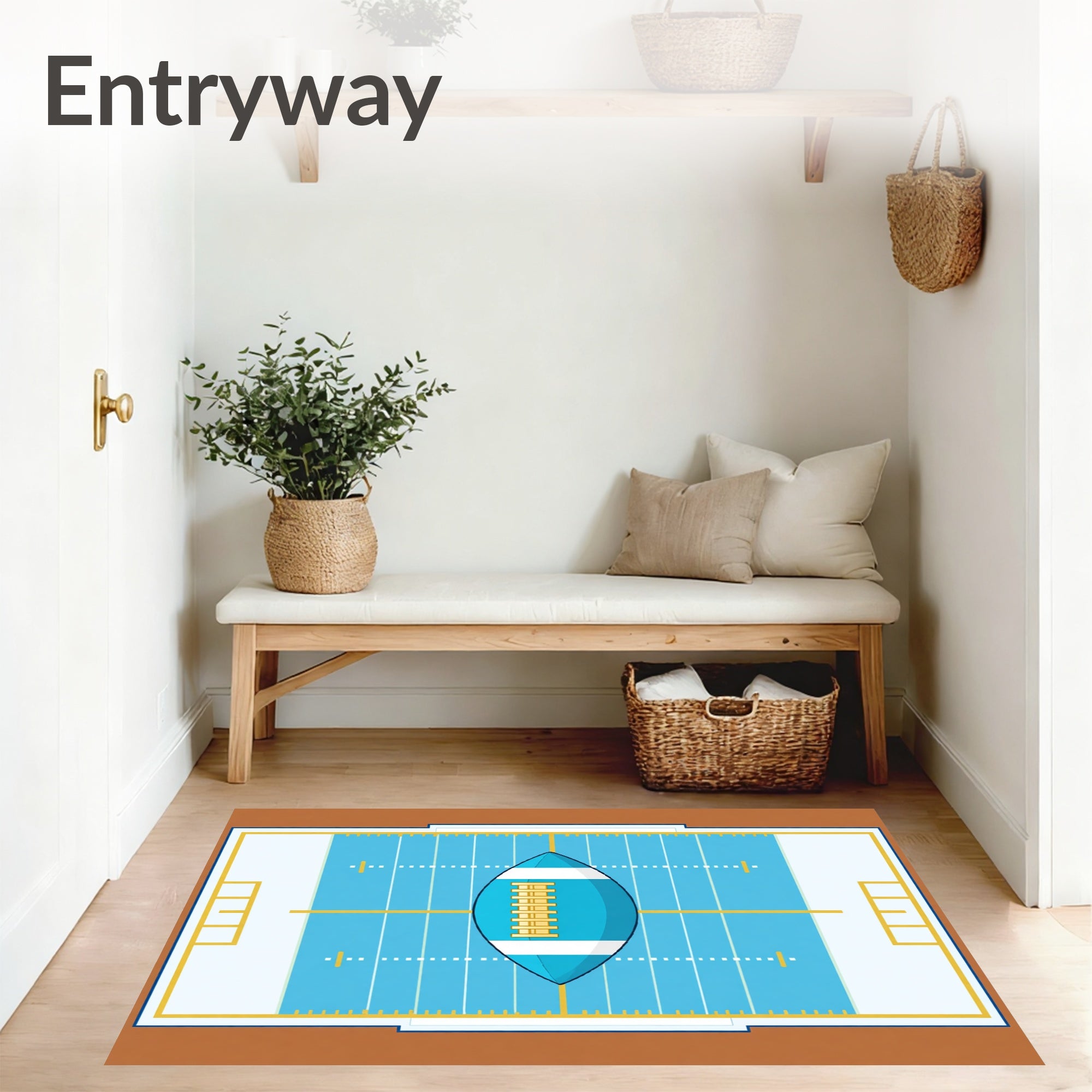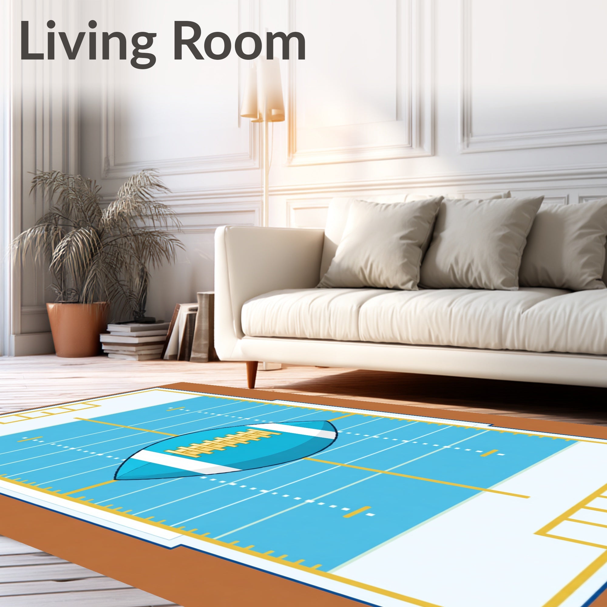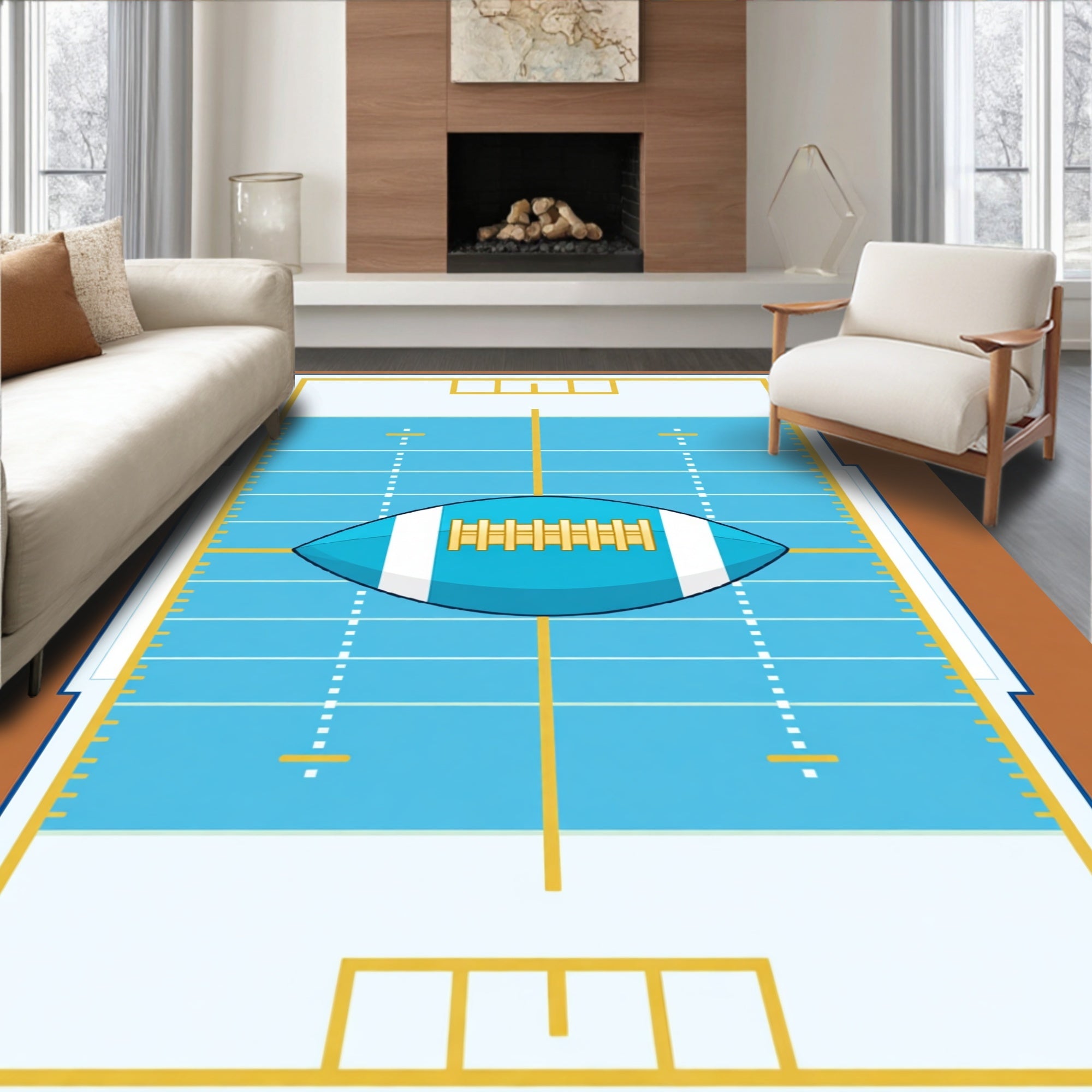 Ultra Soft Area Rug, Non Slip, Stain Resistant, Washable Area Rugs for Living Room, Bedroom, Gridiron Yard Lines Goalposts Football Design(blue) Overview: