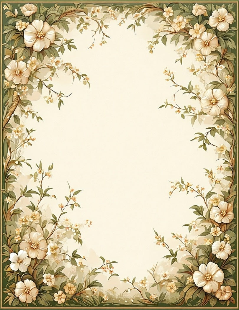 Hallway with Beige and Green Floral Design(Beige)