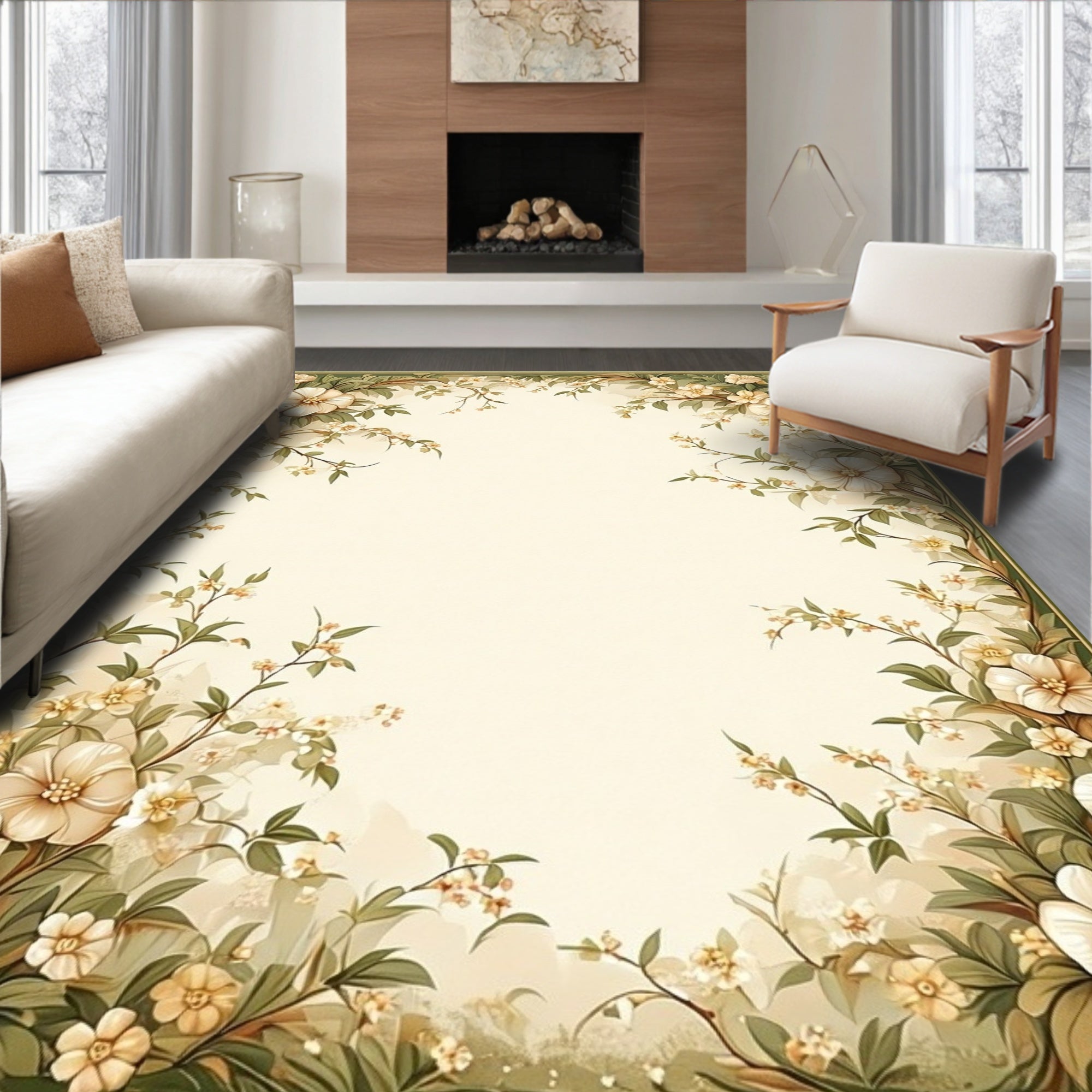 Flatwoven High Traffic Area Rug, Hallway with Beige and Green Floral Design, Non Slip, Stain Resistant, Washable Area Rugs for Living Room, Bedroom (Beige) Overview: