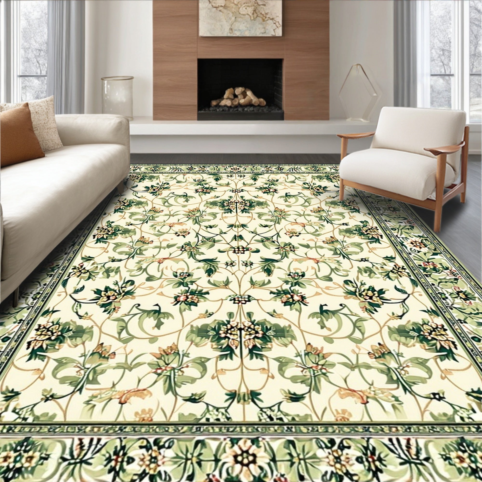 Ultra Soft Area Rug, Non Slip, Stain Resistant, Washable Area Rugs for Living Room, Bedroom, Hallway Runner with Beige/Green Floral(Ivory) Overview: