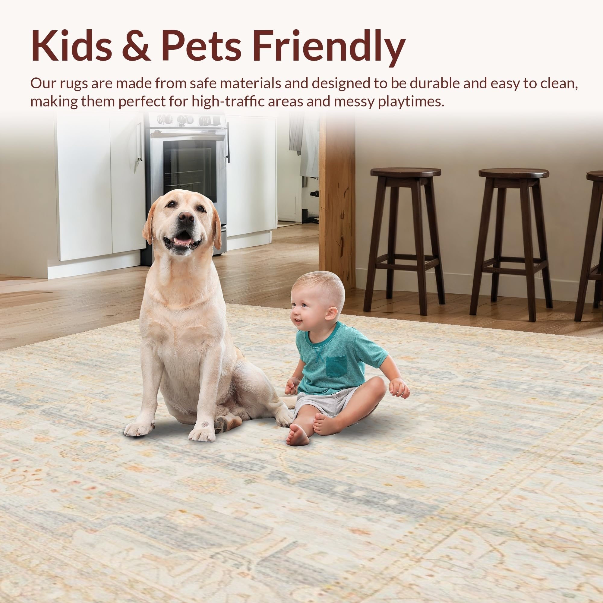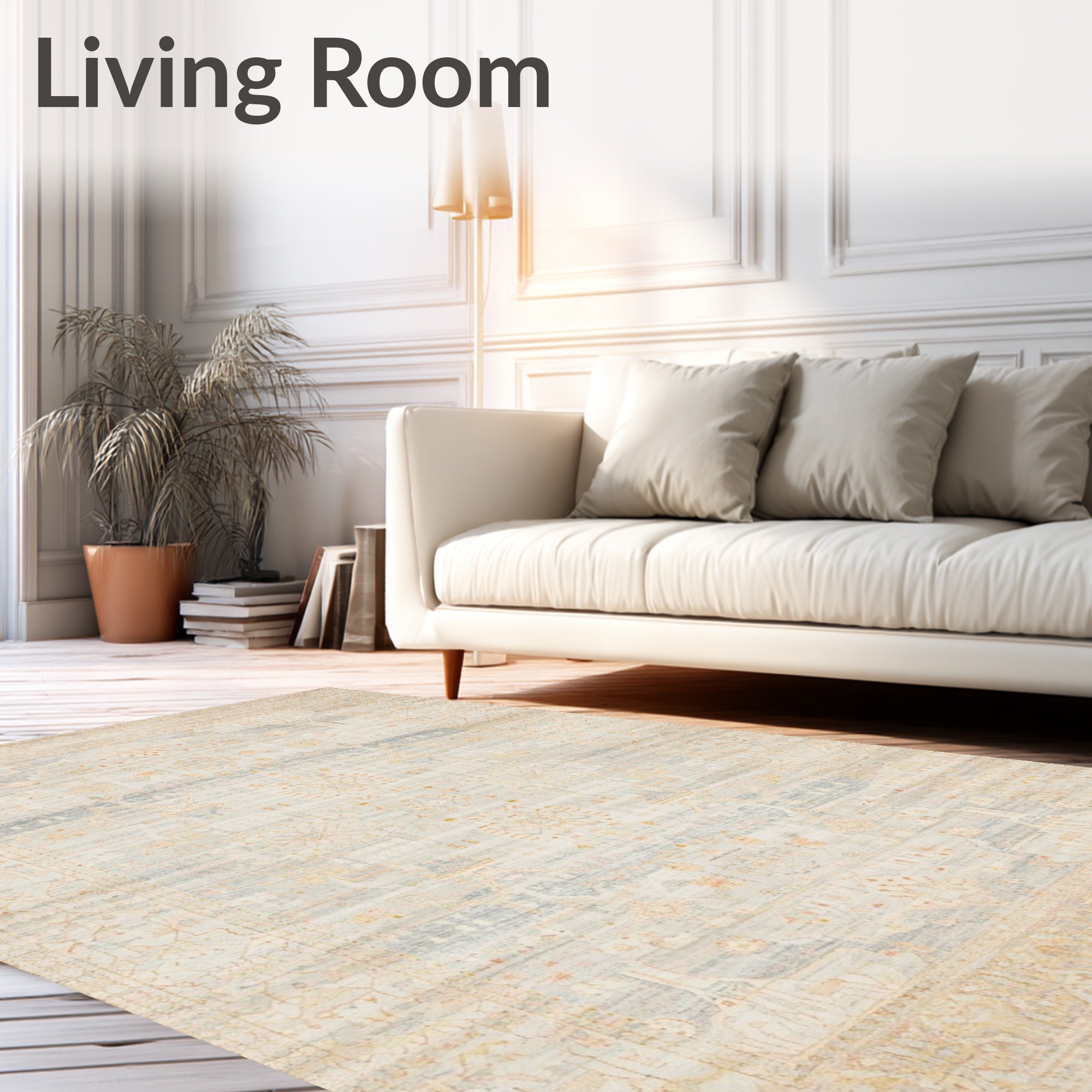 Ultra Soft Area Rug, Non Slip, Stain Resistant, Washable Area Rugs for Living Room, Bedroom, Handcrafted Beige with Delicate Boho Accents(Beige) Overview: