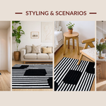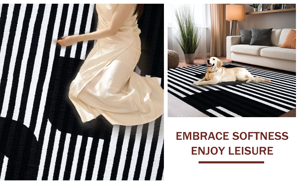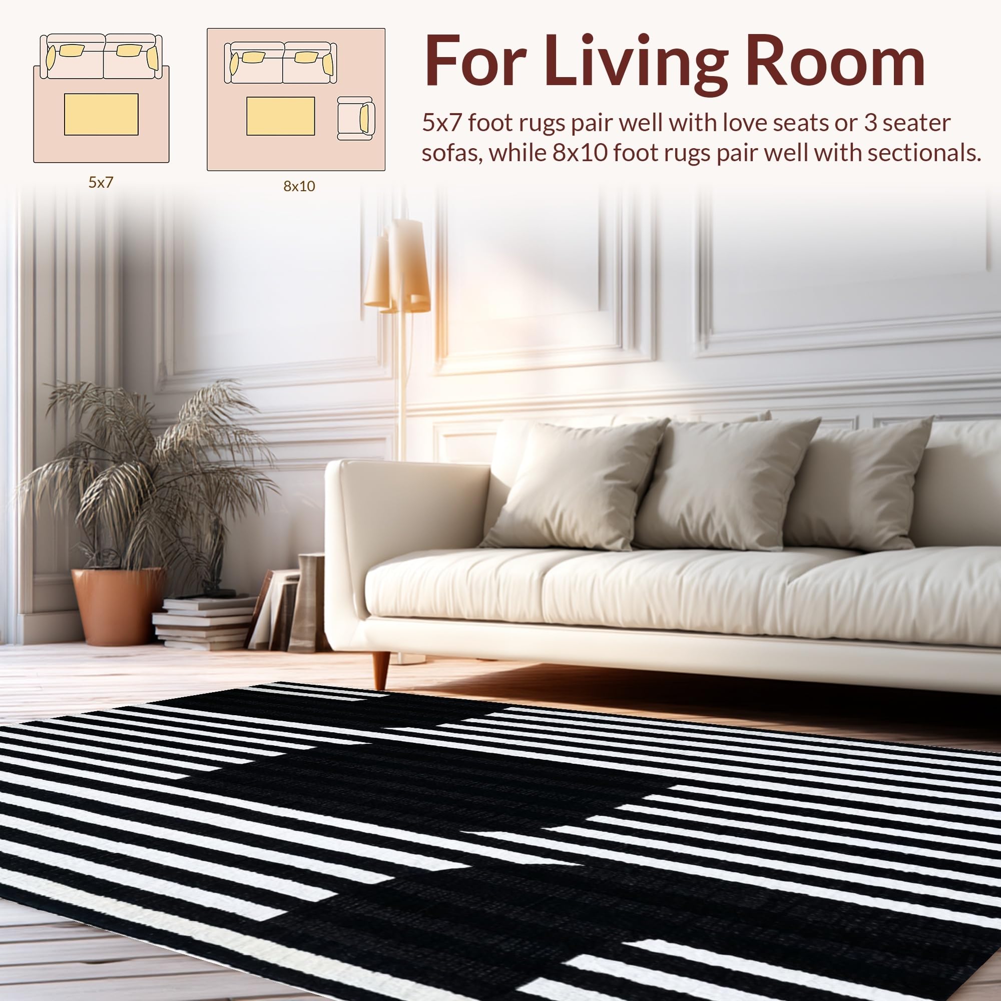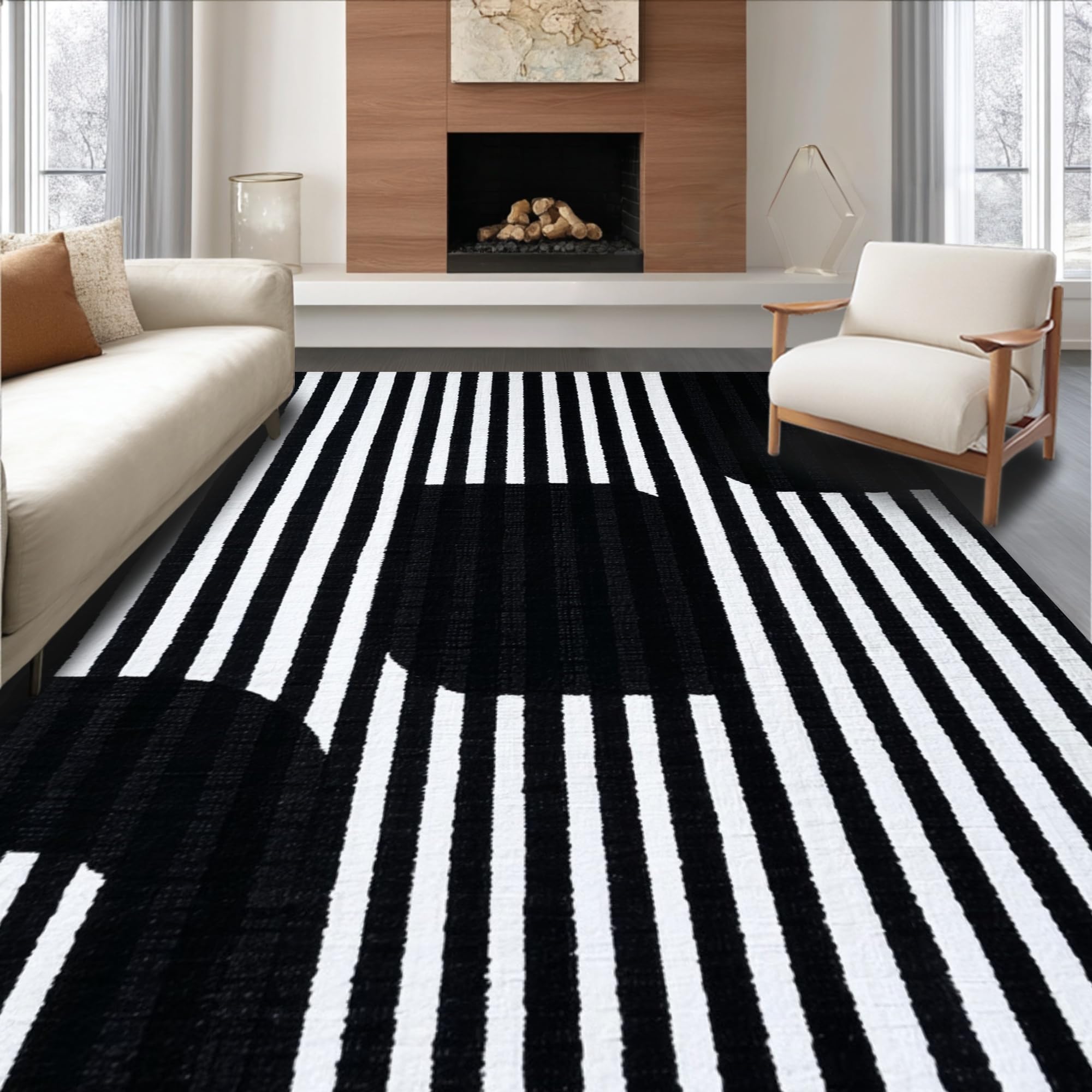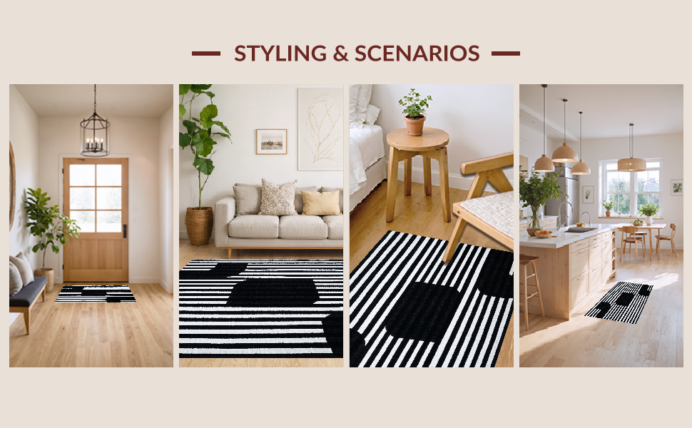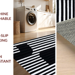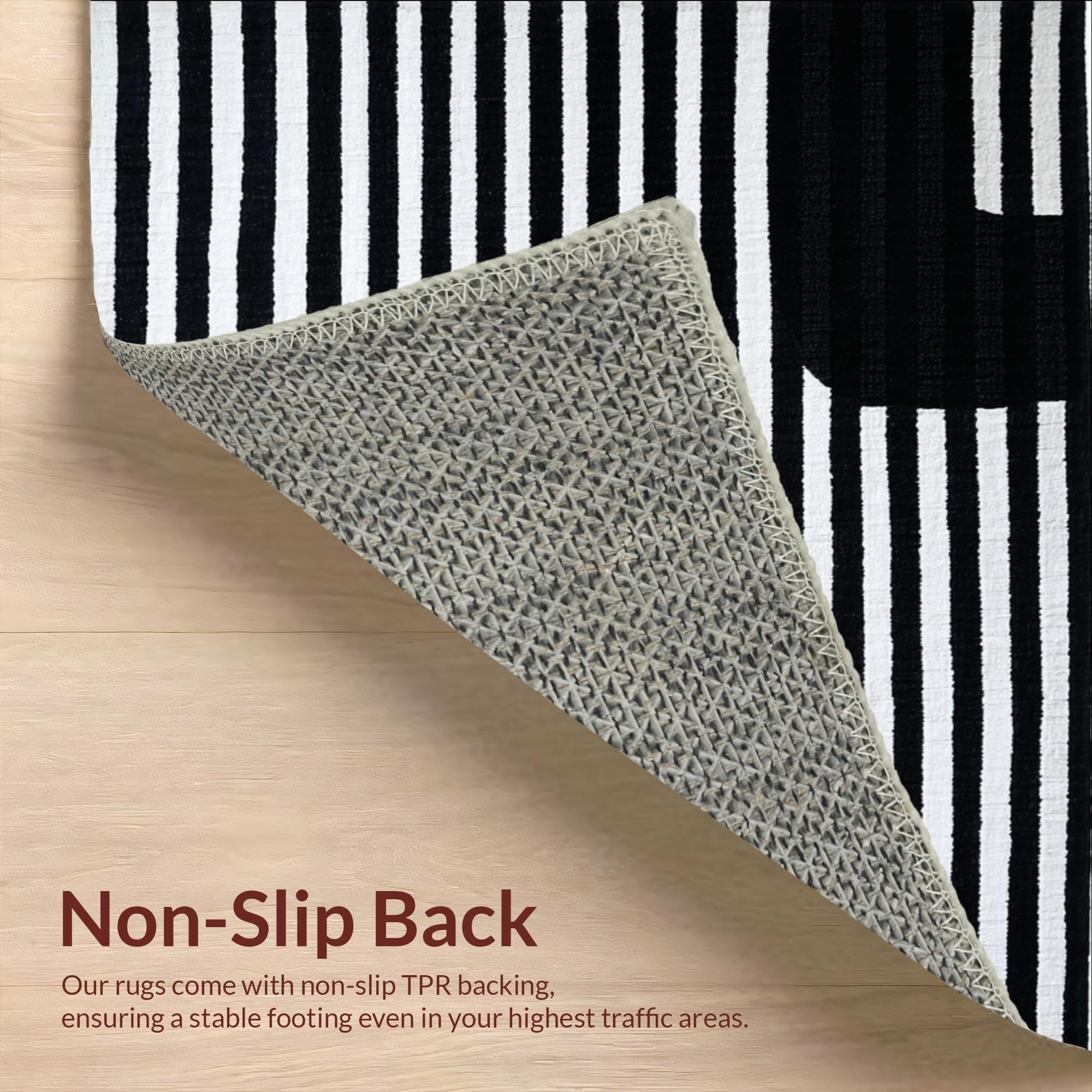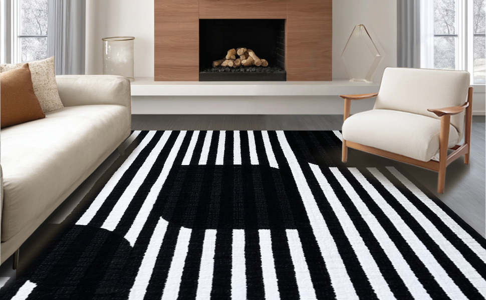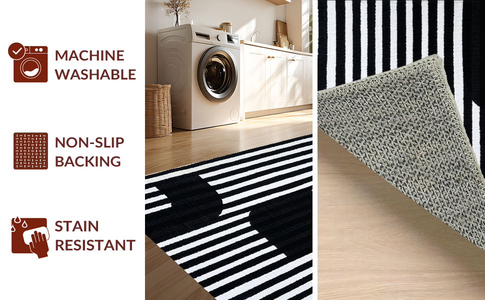 Ultra Soft Area Rug, Non Slip, Stain Resistant, Washable Area Rugs for Living Room, Bedroom, Handcrafted Boho Striped Floor Mat Washable Woven Entryway Decor(Black) Overview: