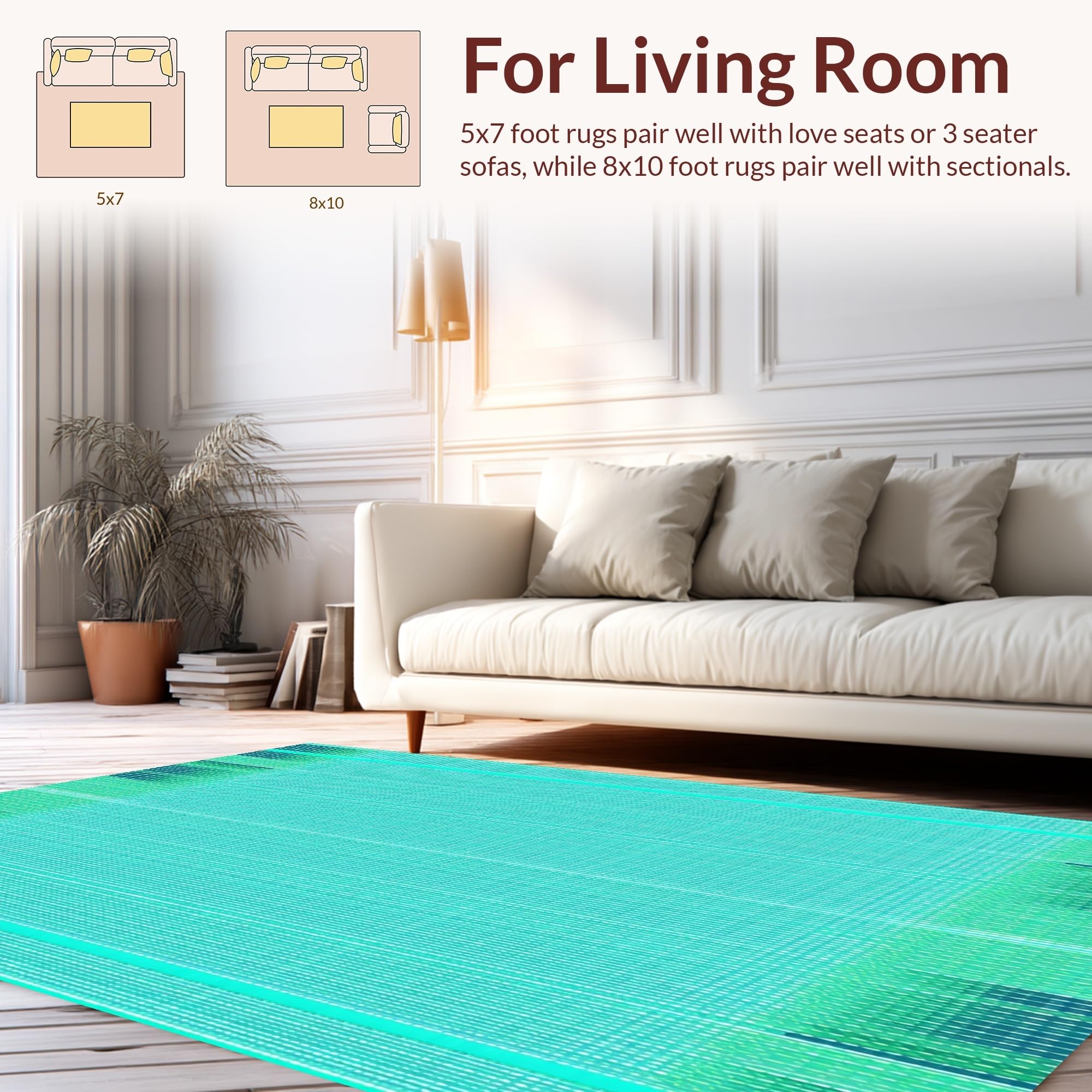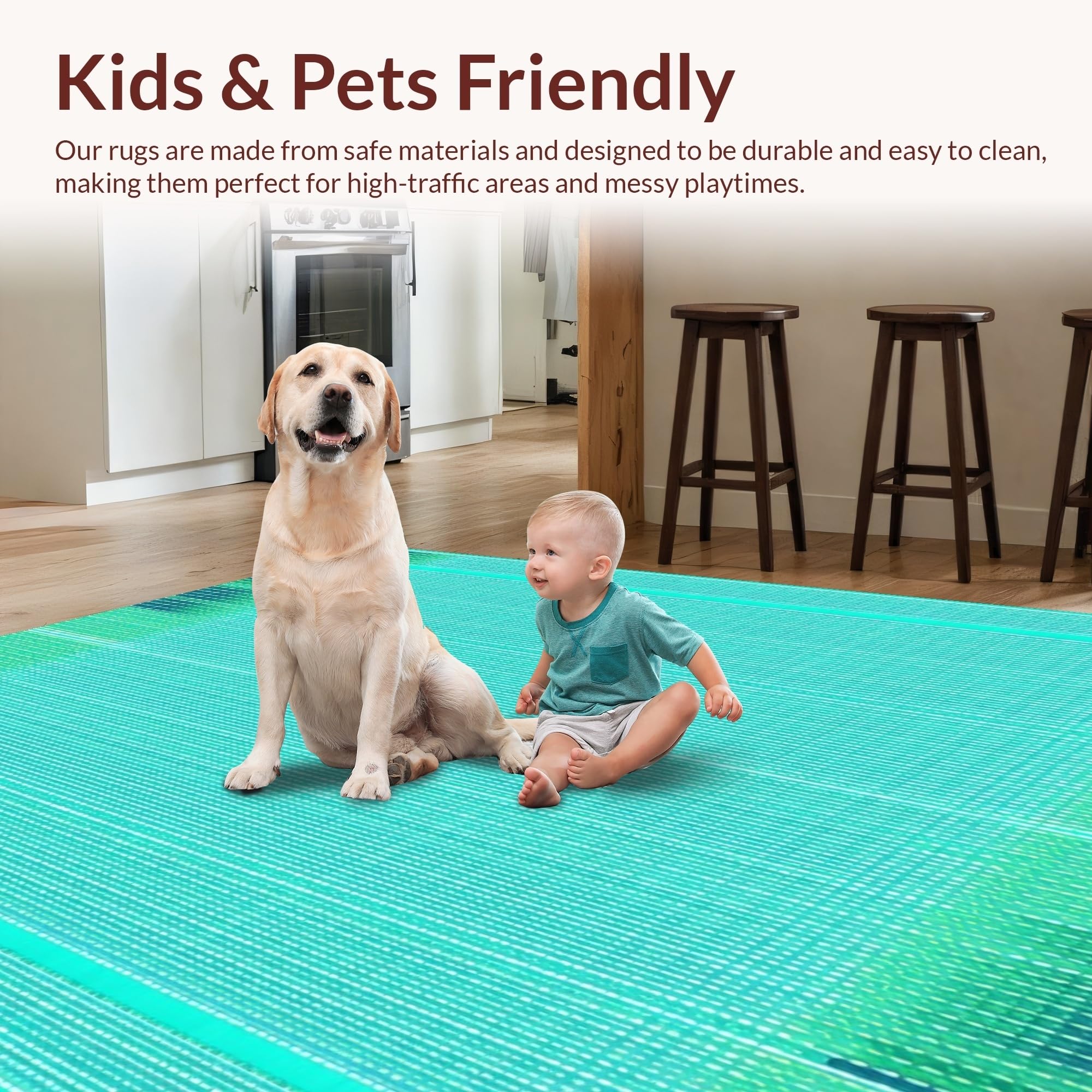Ultra Soft Area Rug, Non Slip, Stain Resistant, Washable Area Rugs for Living Room, Bedroom, Handcrafted Tropical Wave Design(Blue) Overview: