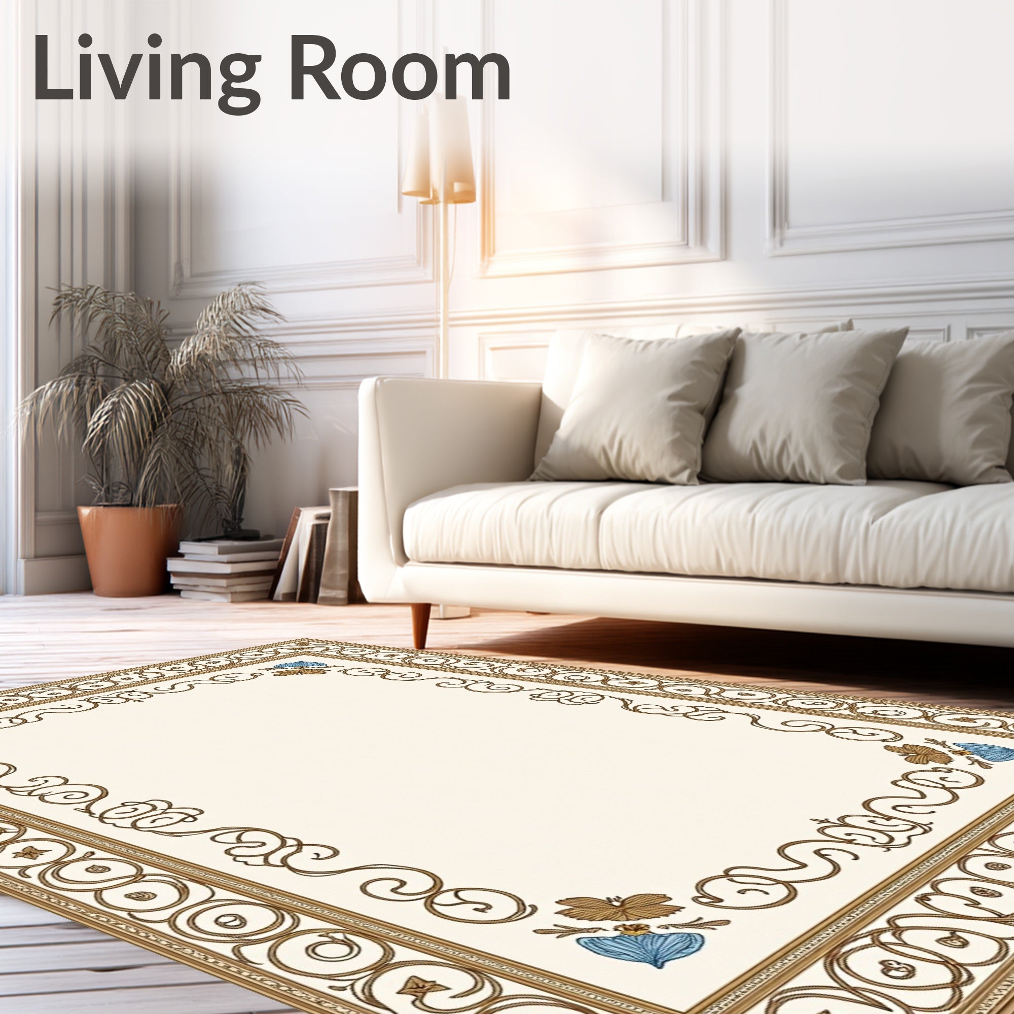 Ultra Soft Area Rug, Non Slip, Stain Resistant, Washable Area Rugs for Living Room, Bedroom, Handwoven Pastoral Jewel Exquisite Aristocratic Embellishment(Beige) Overview: