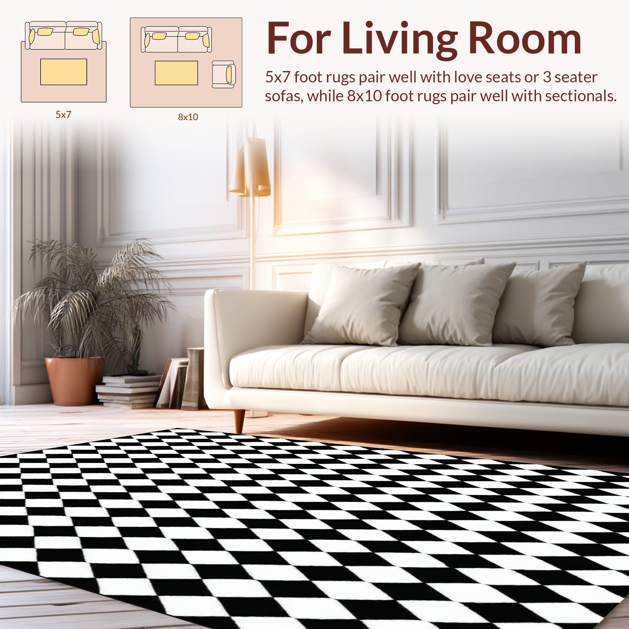 Flatwoven High Traffic Area Rug, Harlequin Black & White Diamond Weave, Non Slip, Stain Resistant, Washable Area Rugs for Living Room, Bedroom (Black) Overview: