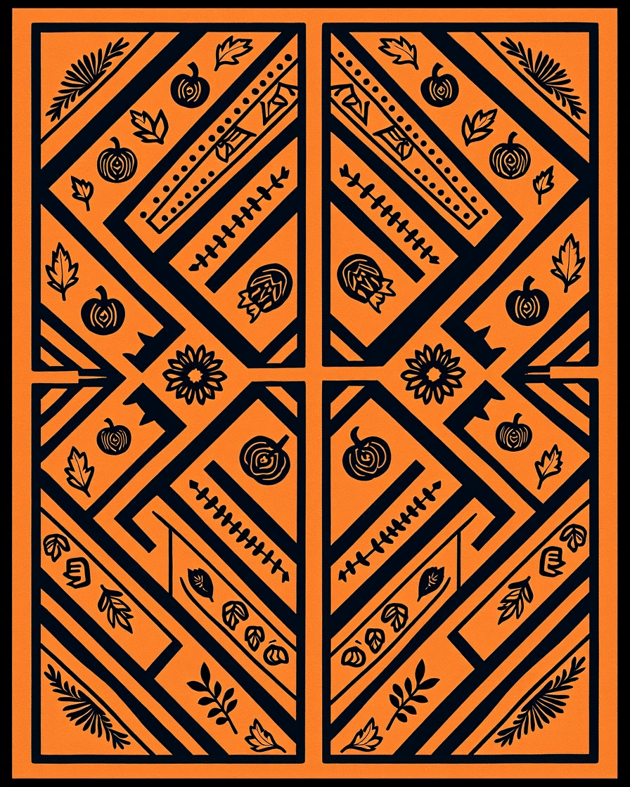 Harvest Argyle Patchwork Striped Pumpkin Festival Motifs(Orange)
