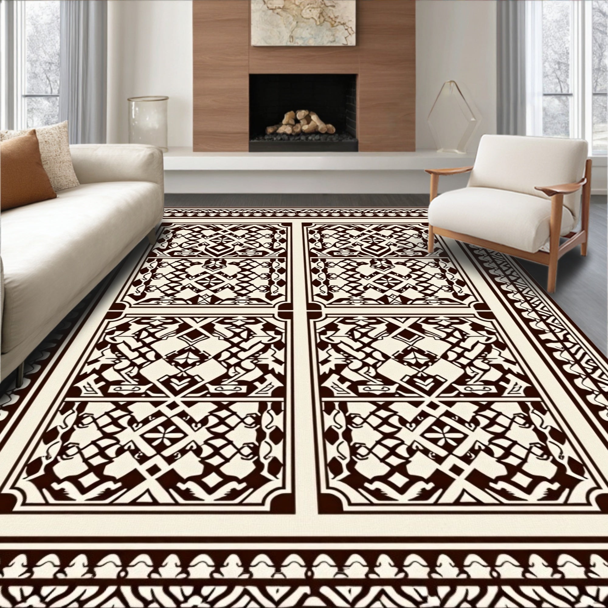 Ultra Soft Area Rug, Non Slip, Stain Resistant, Washable Area Rugs for Living Room, Bedroom, Harvest Cabin Grid Crosshatch Welcome Doorway(Brown) Overview: