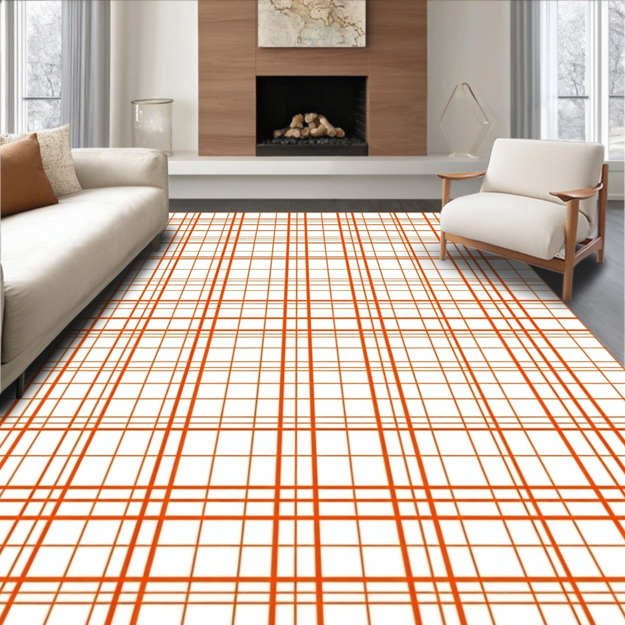 Ultra Soft Area Rug, Non Slip, Stain Resistant, Washable Area Rugs for Living Room, Bedroom, Harvest Check Plaid with Bold Contrasting Grid and Classic Autumn(Orange) Overview: